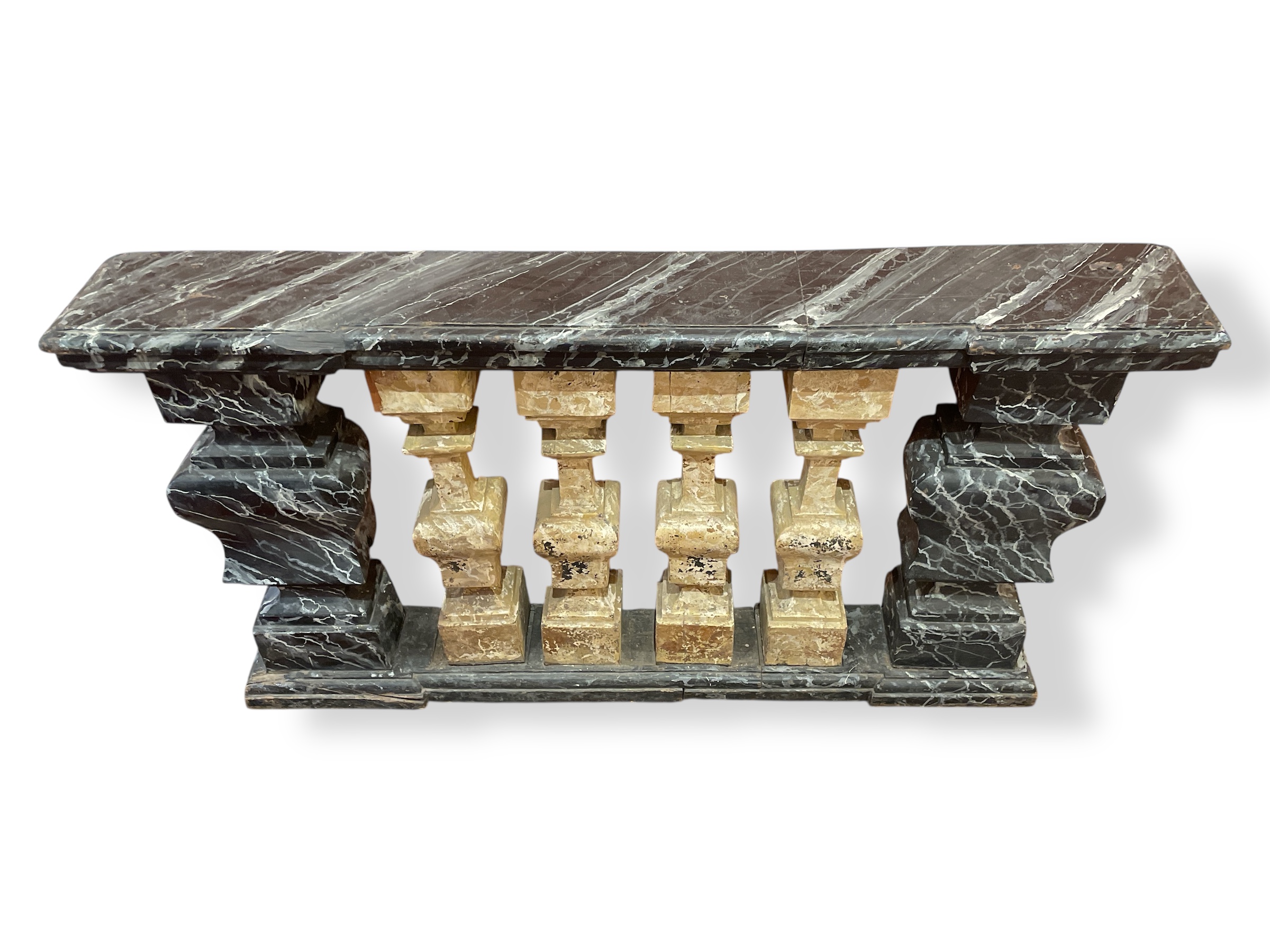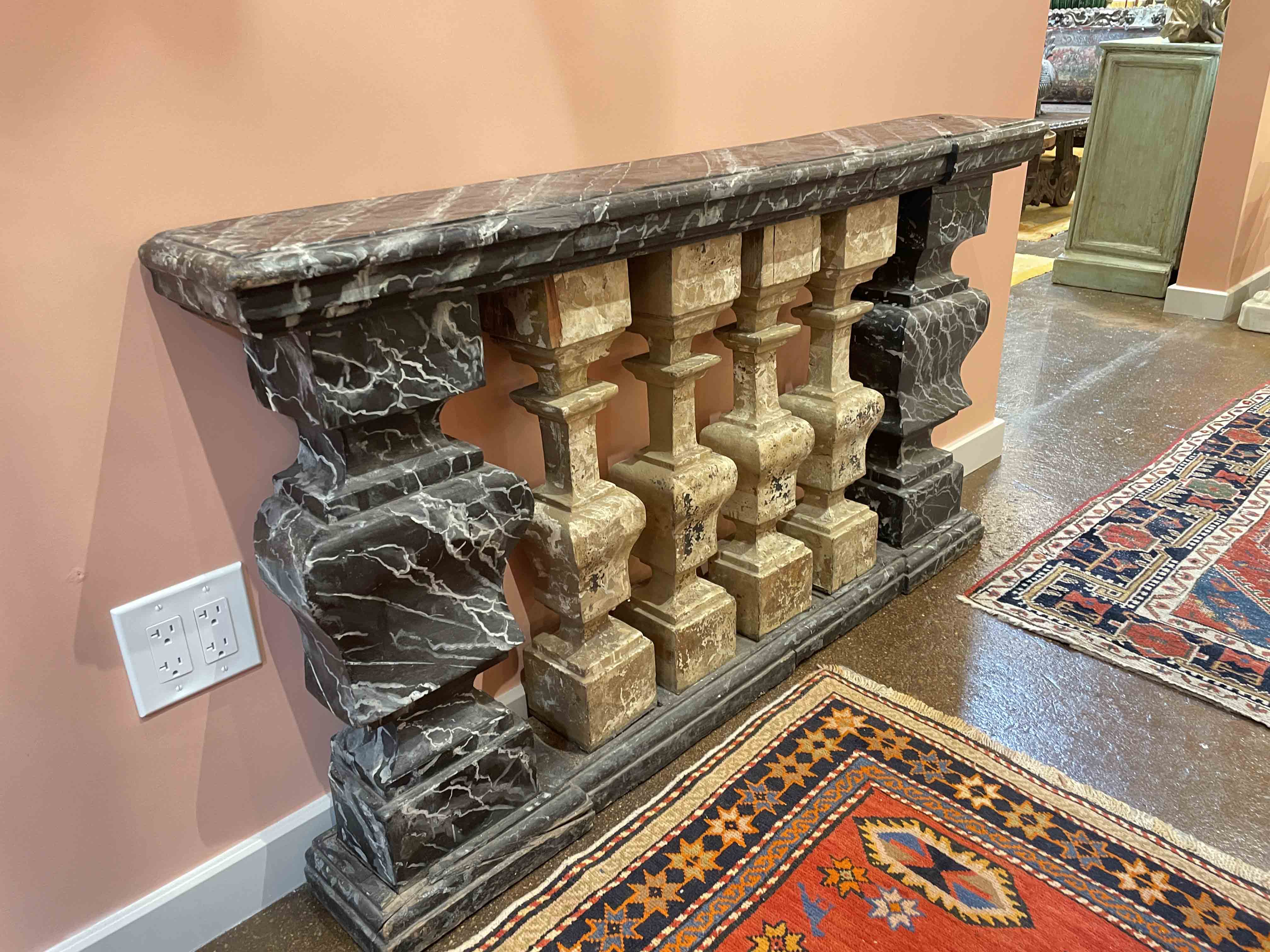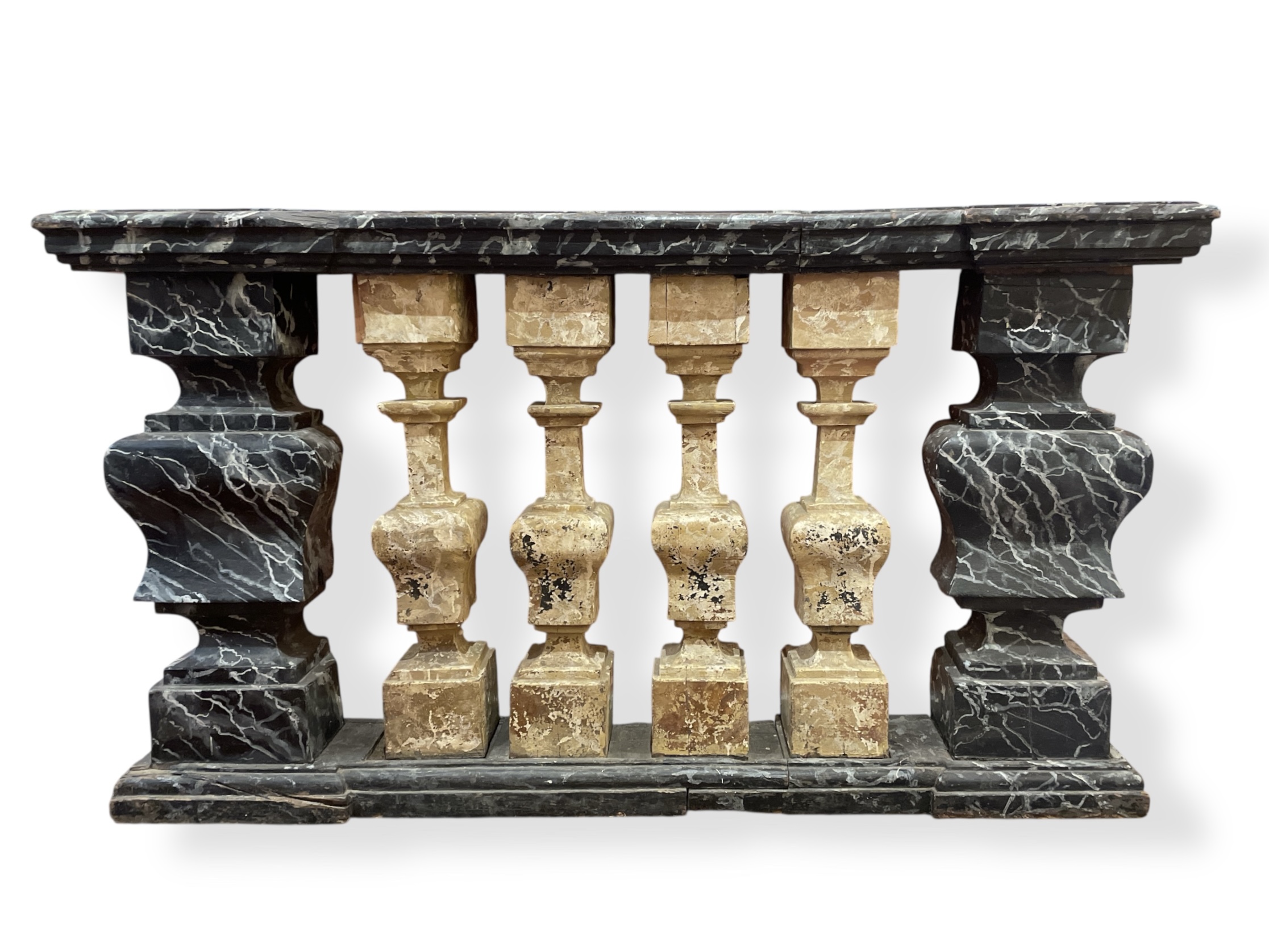 Pair of carved wooden railings from a church in Switzerland-faux marble