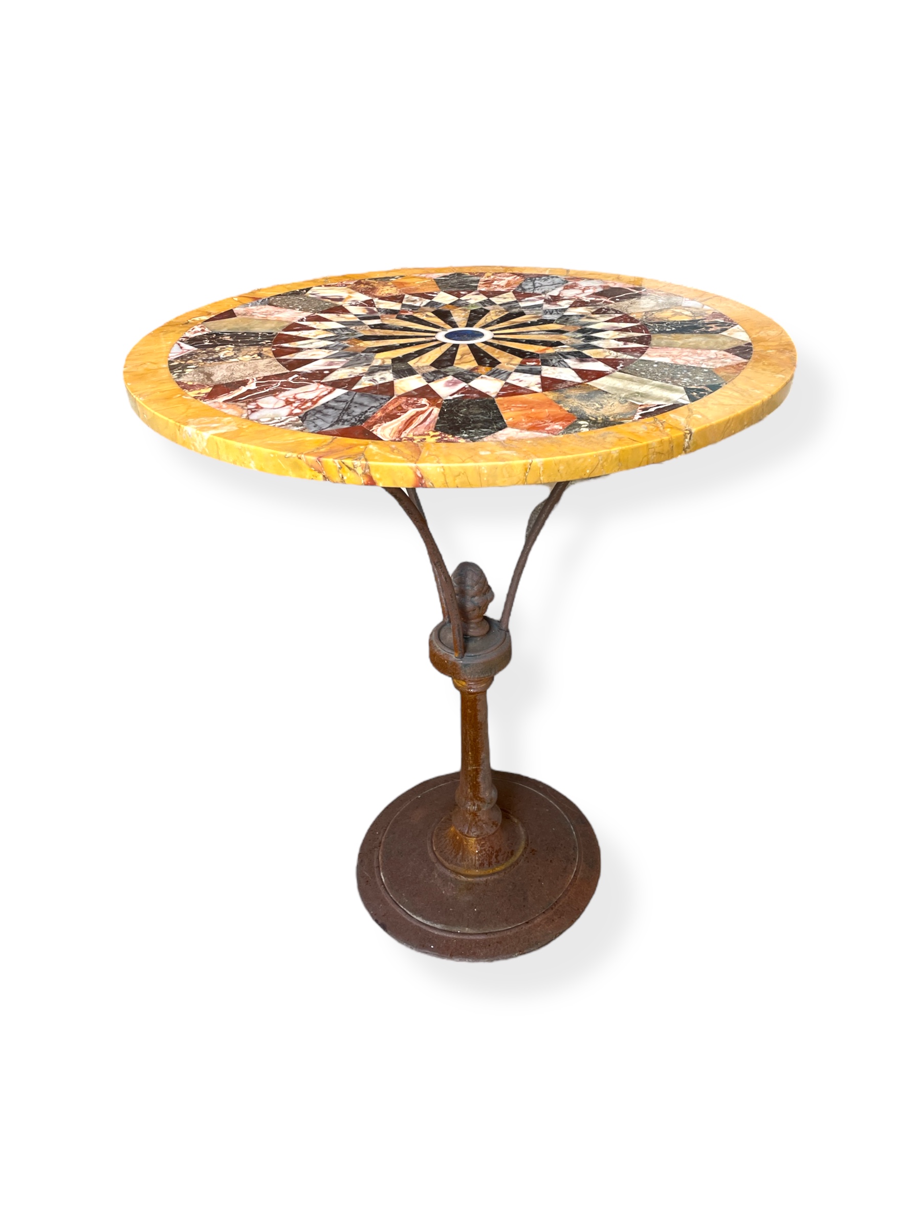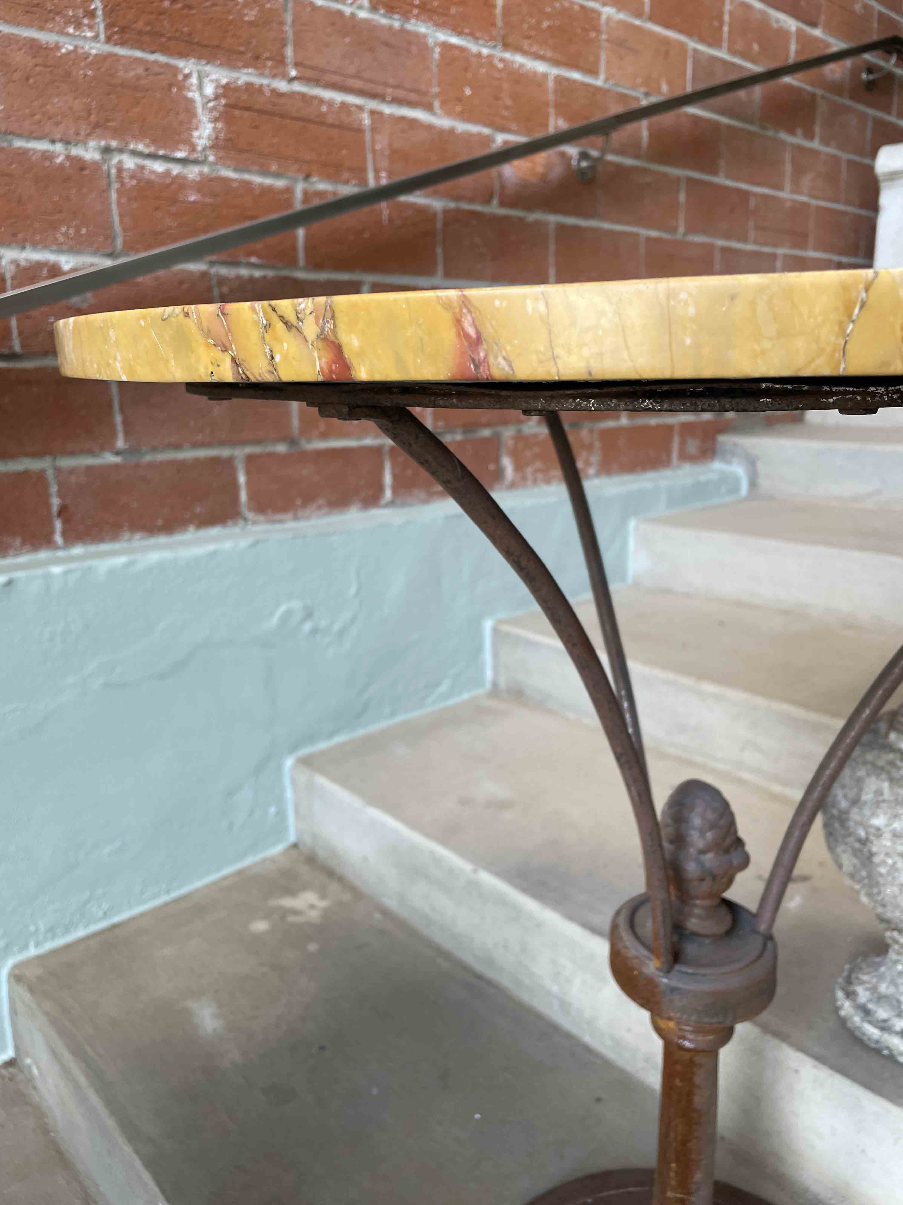 Early 20th C French iron occasional table. (Was used in a wine cellar.) Combined with #4485, a vintage round marble table top.