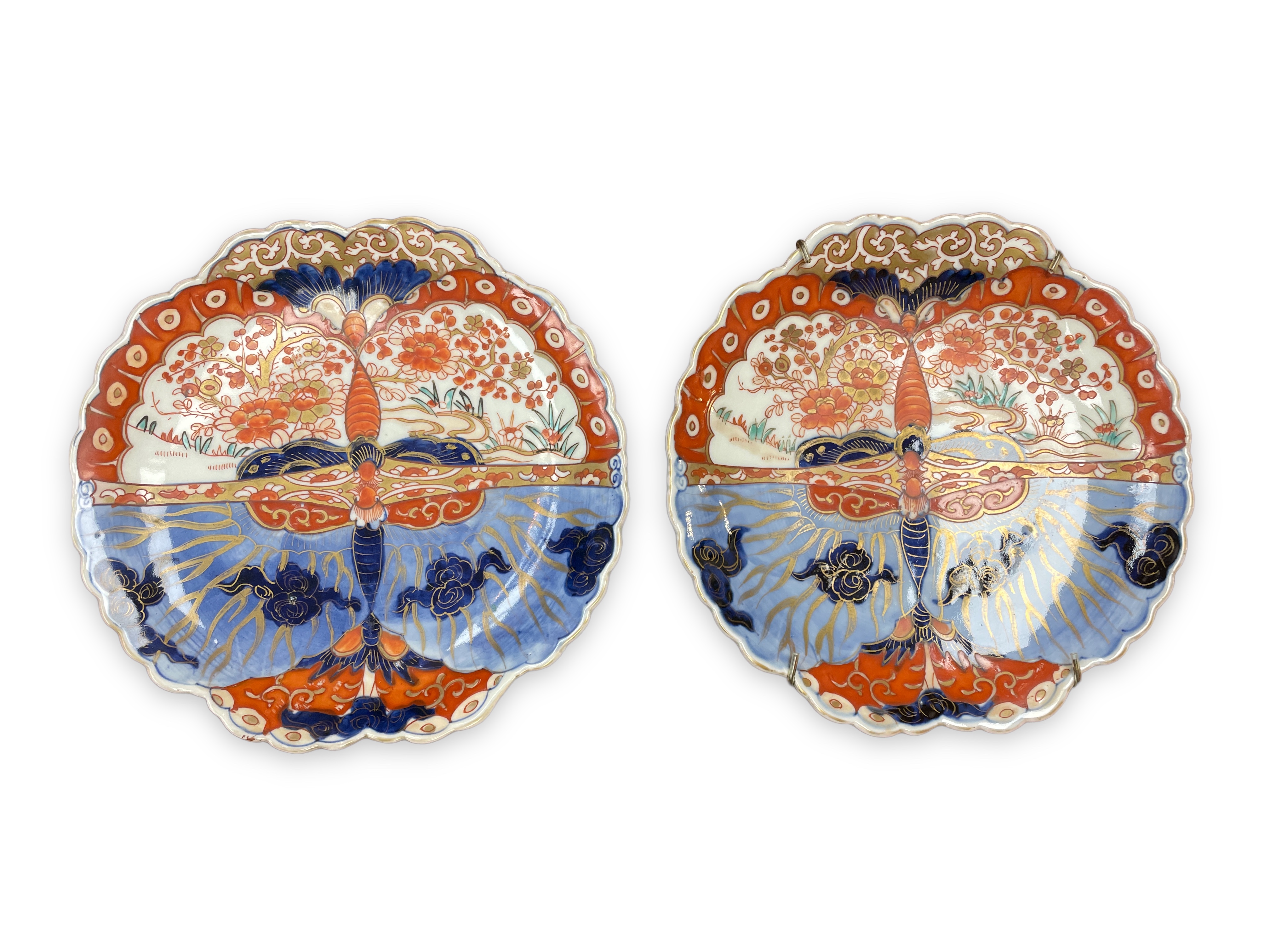 Pair of Japanese Imari 8" plates with dragonfly design.