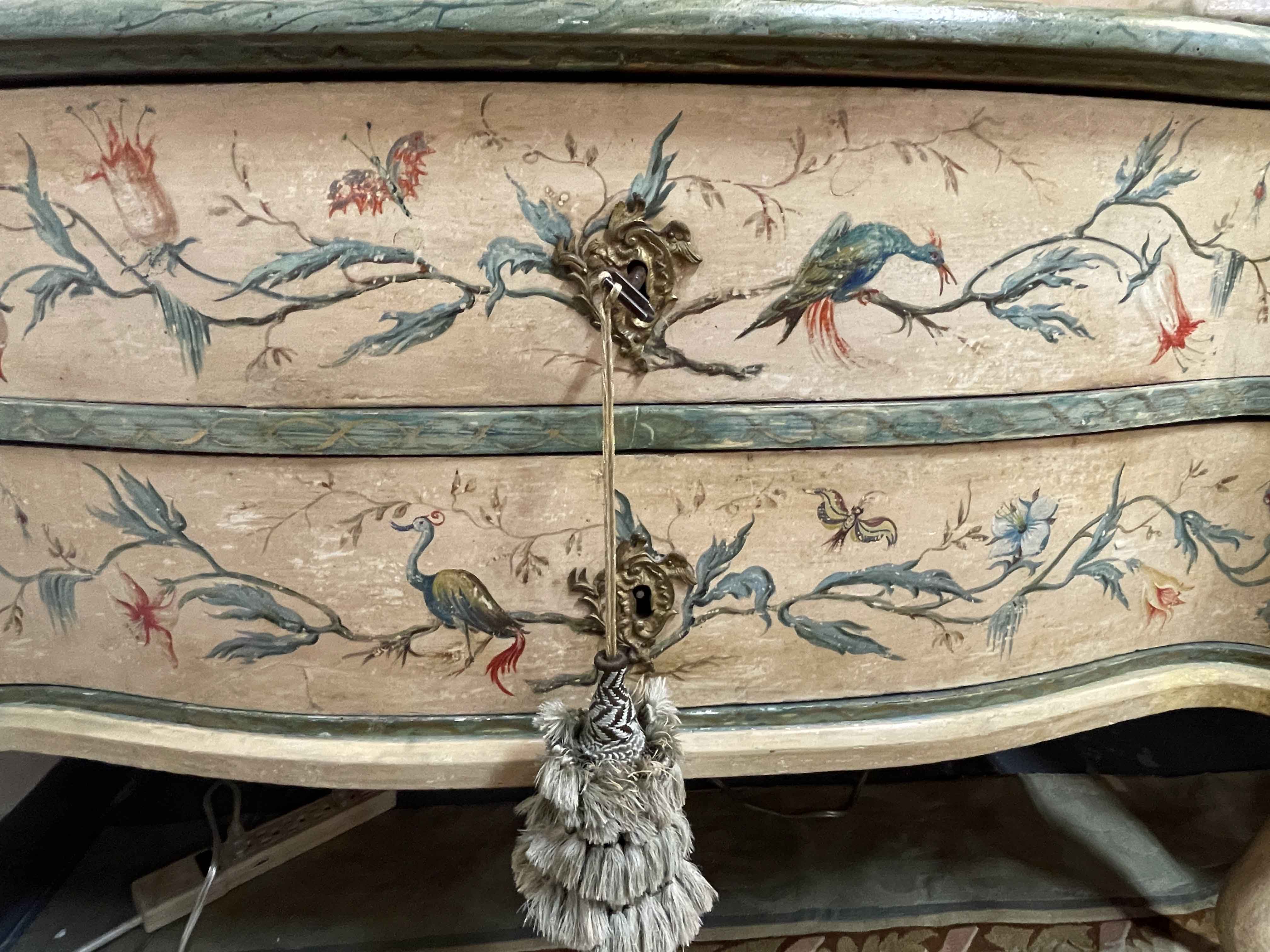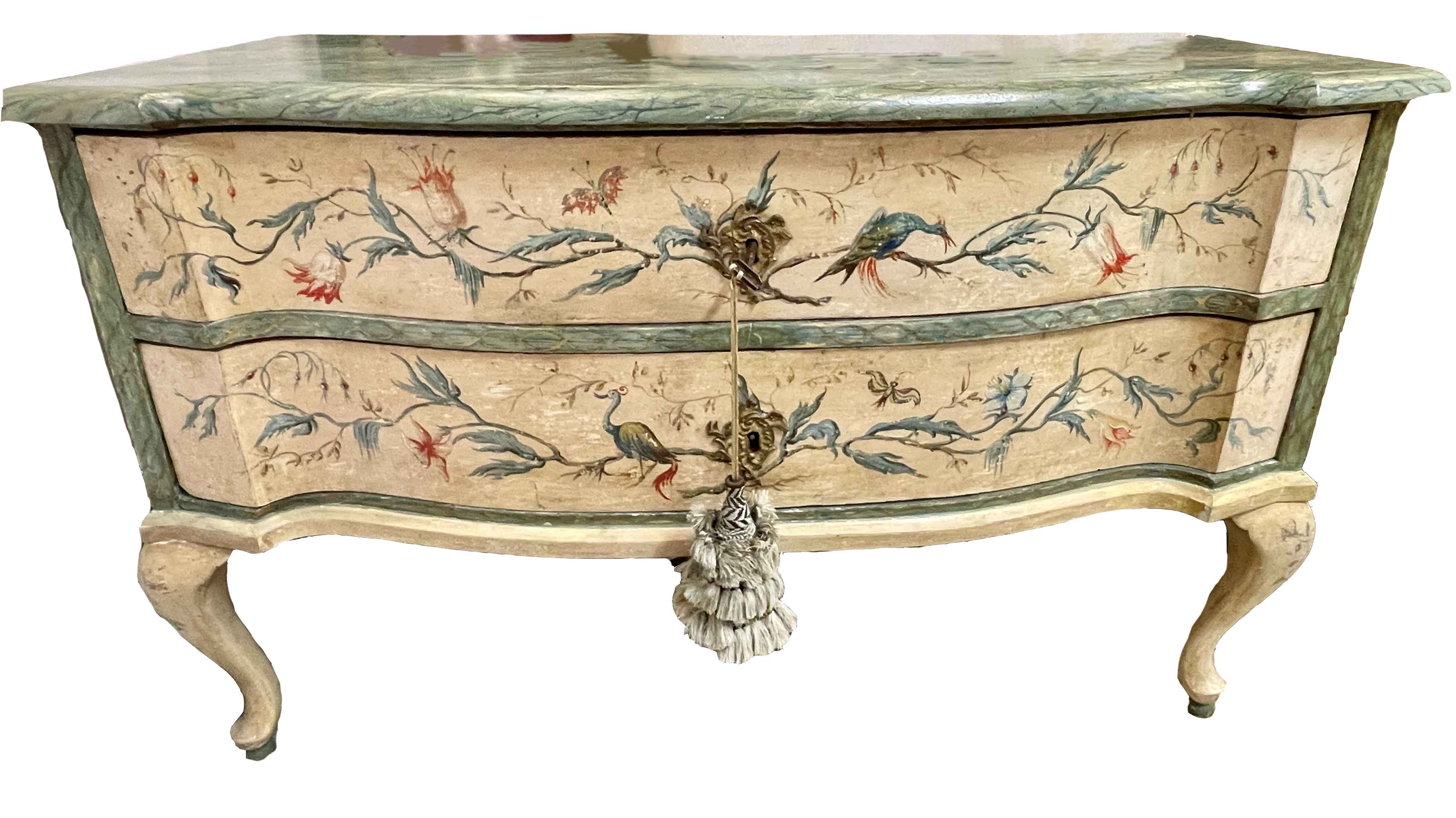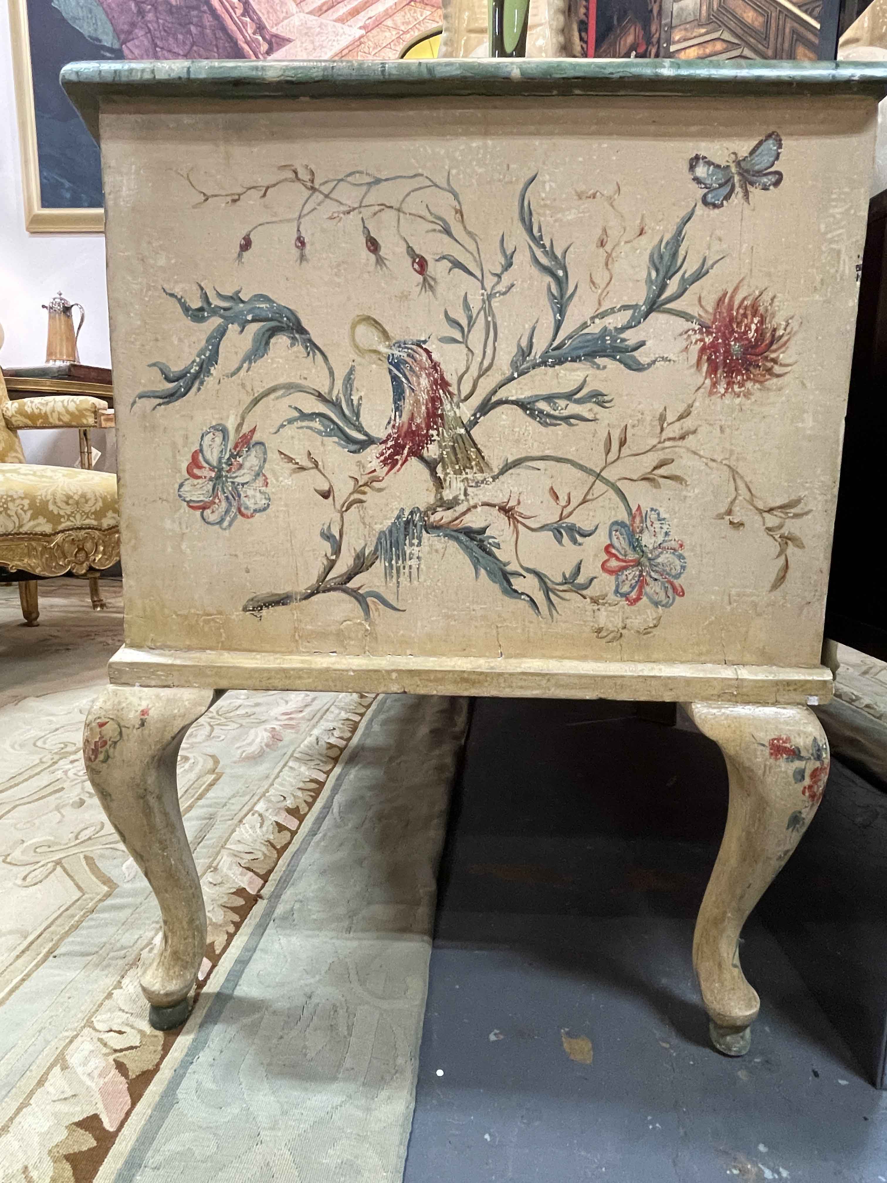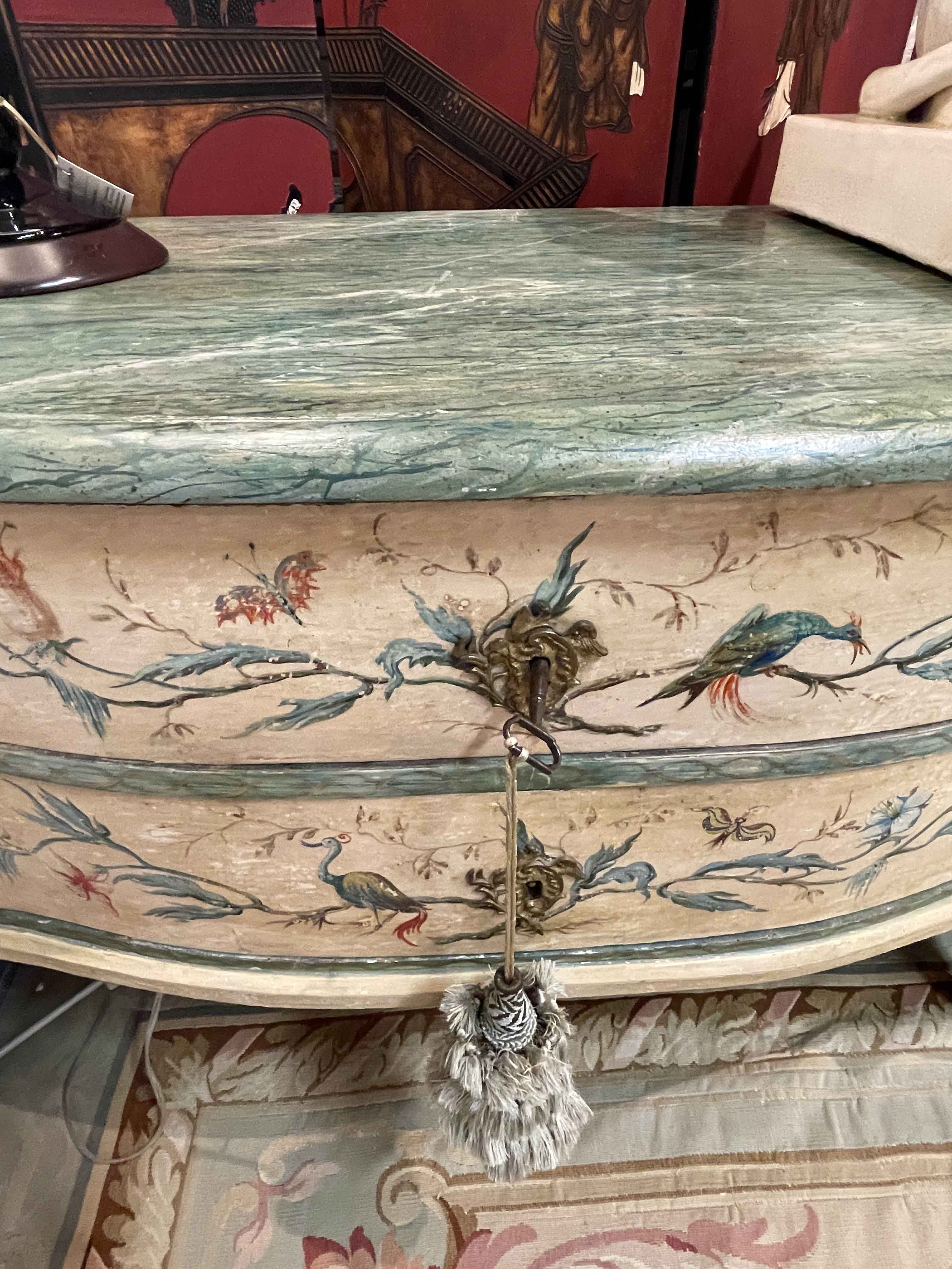 Pair of 18th C polychrome Italian commodes with faux marble tops (paint has been refreshed).