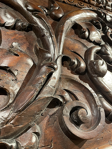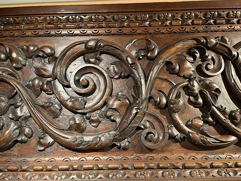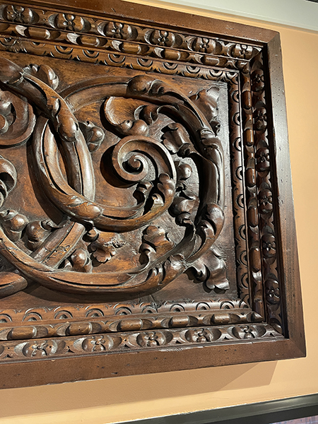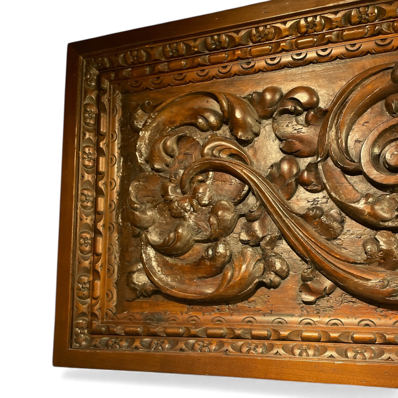 19th C Spanish carved wooded panel, framed, from a stairwell in Barcelona, Spain.