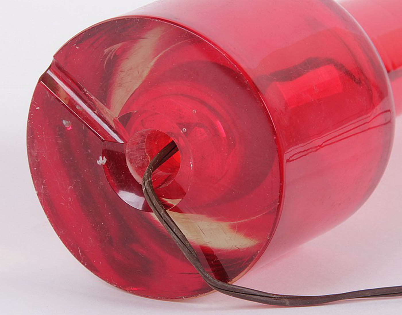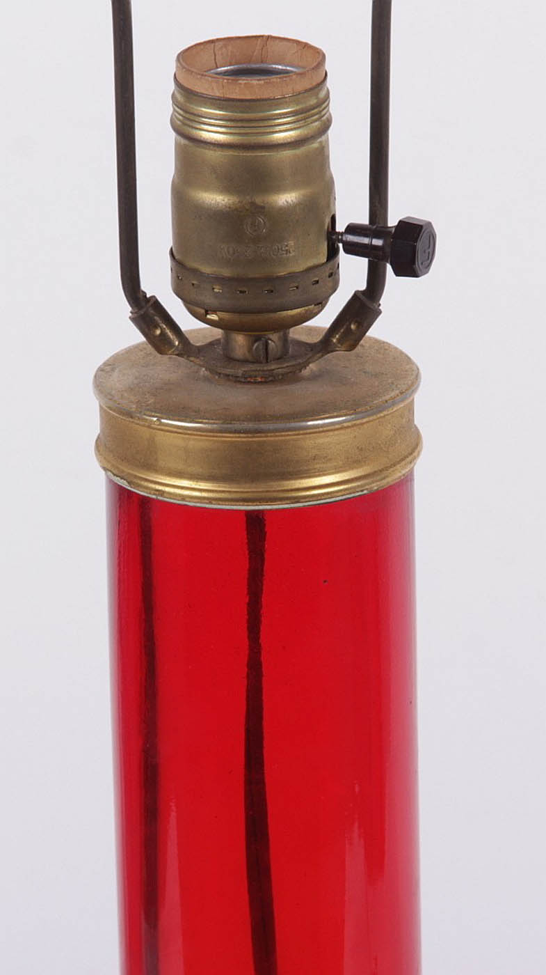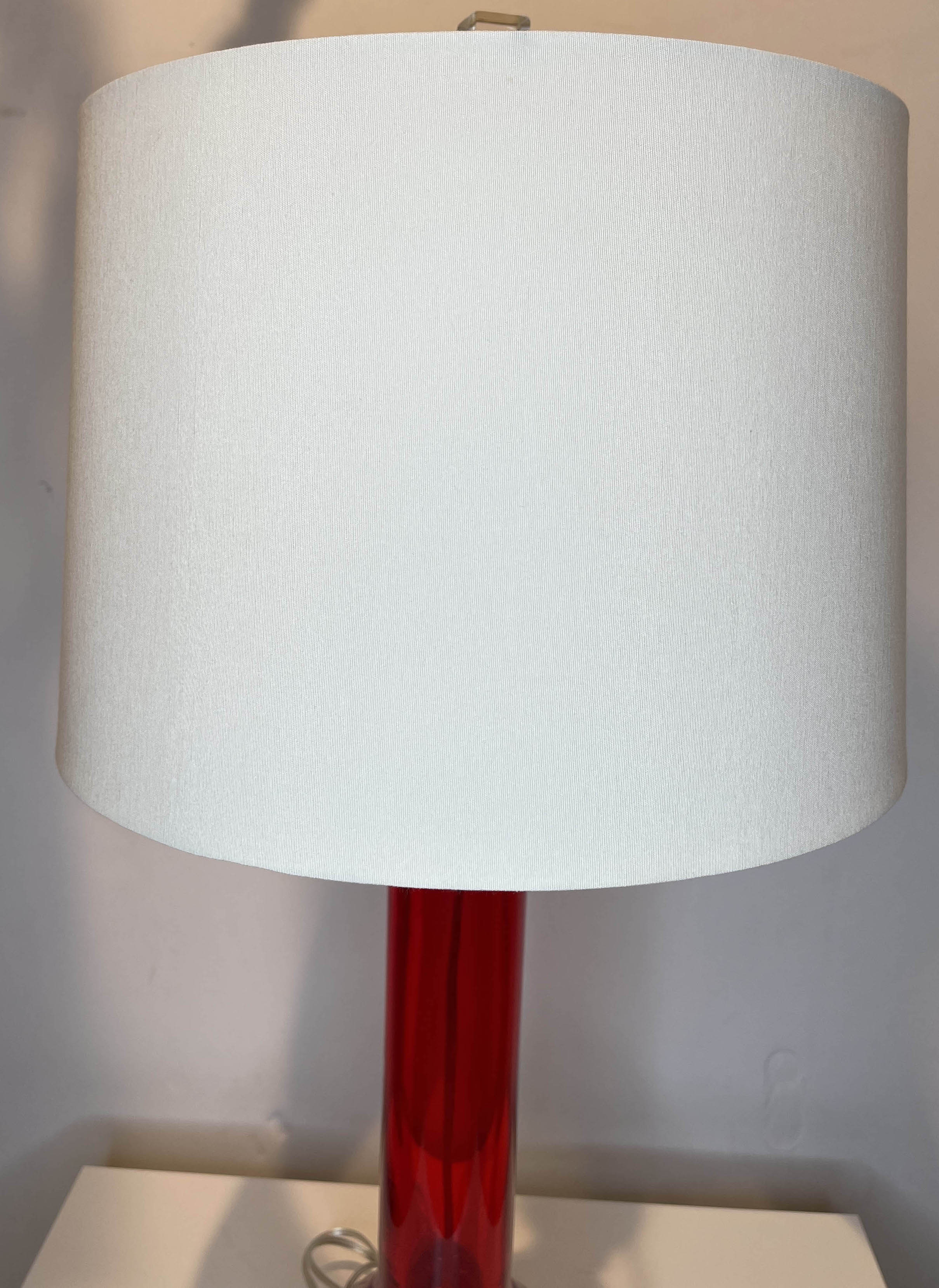 Mid century modern art glass lamp, heavy red and colorless glass, unsigned, made for use as a lamp.