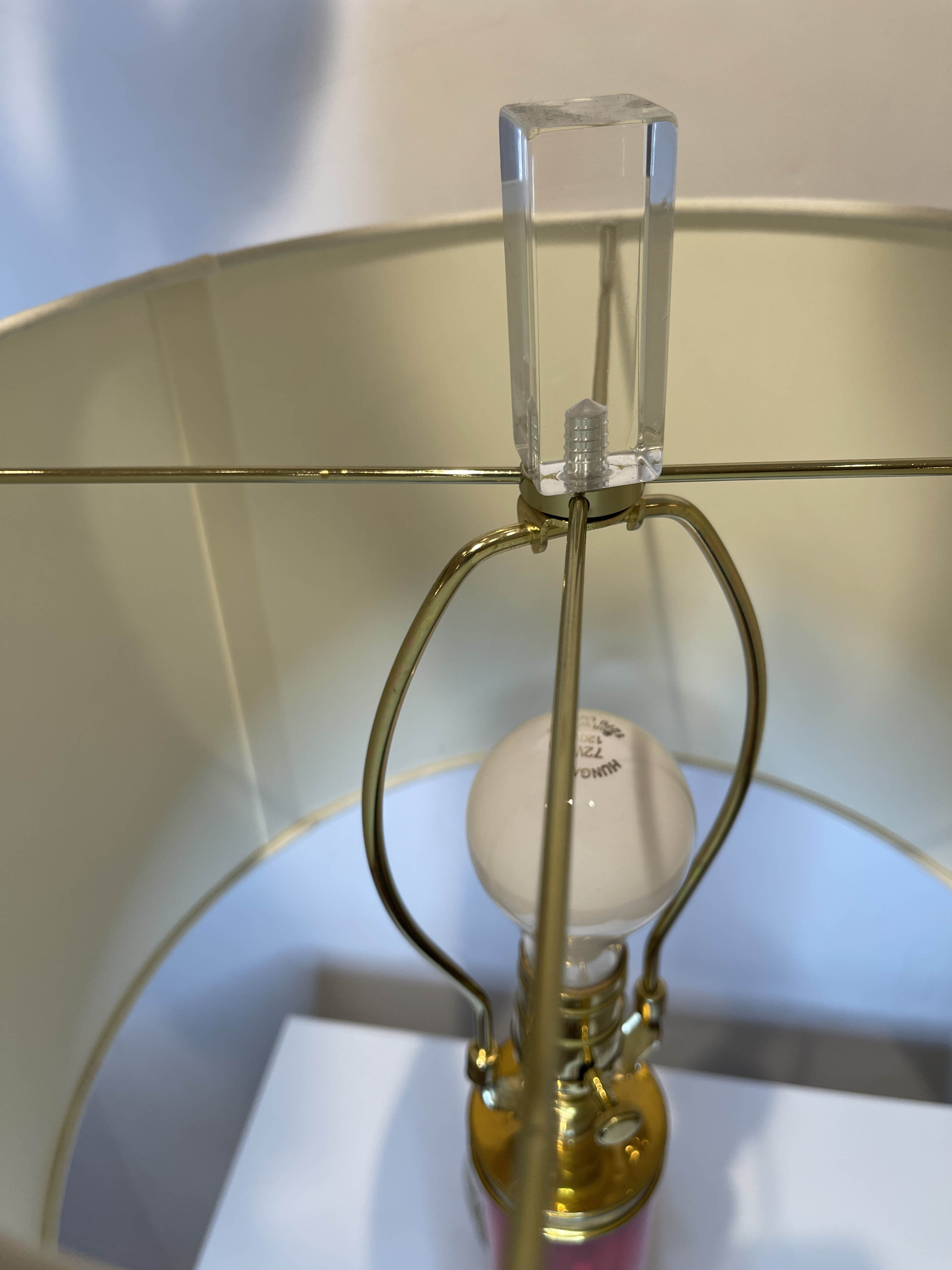 Dimensions: 5" Diameter: Glass body -16 3/4" H; Overall - 31" H; Shade diameter: