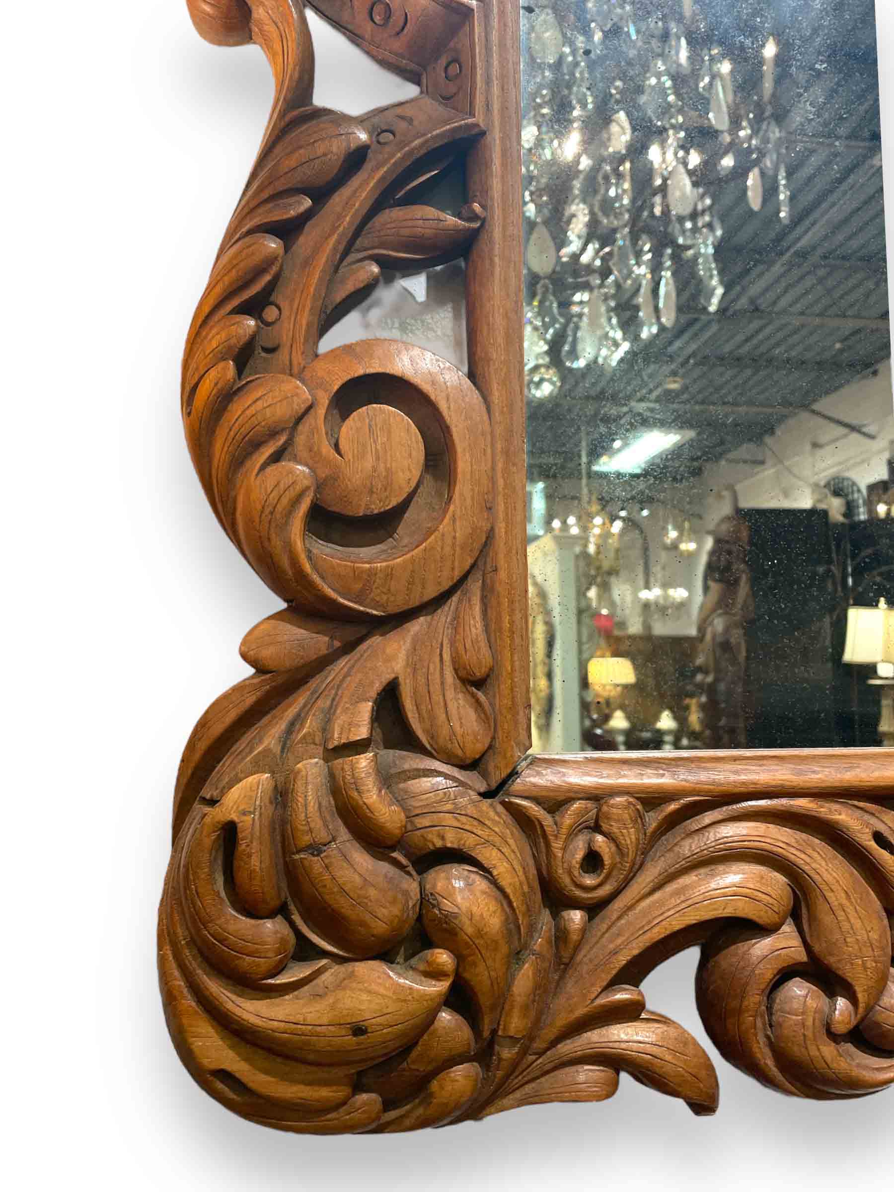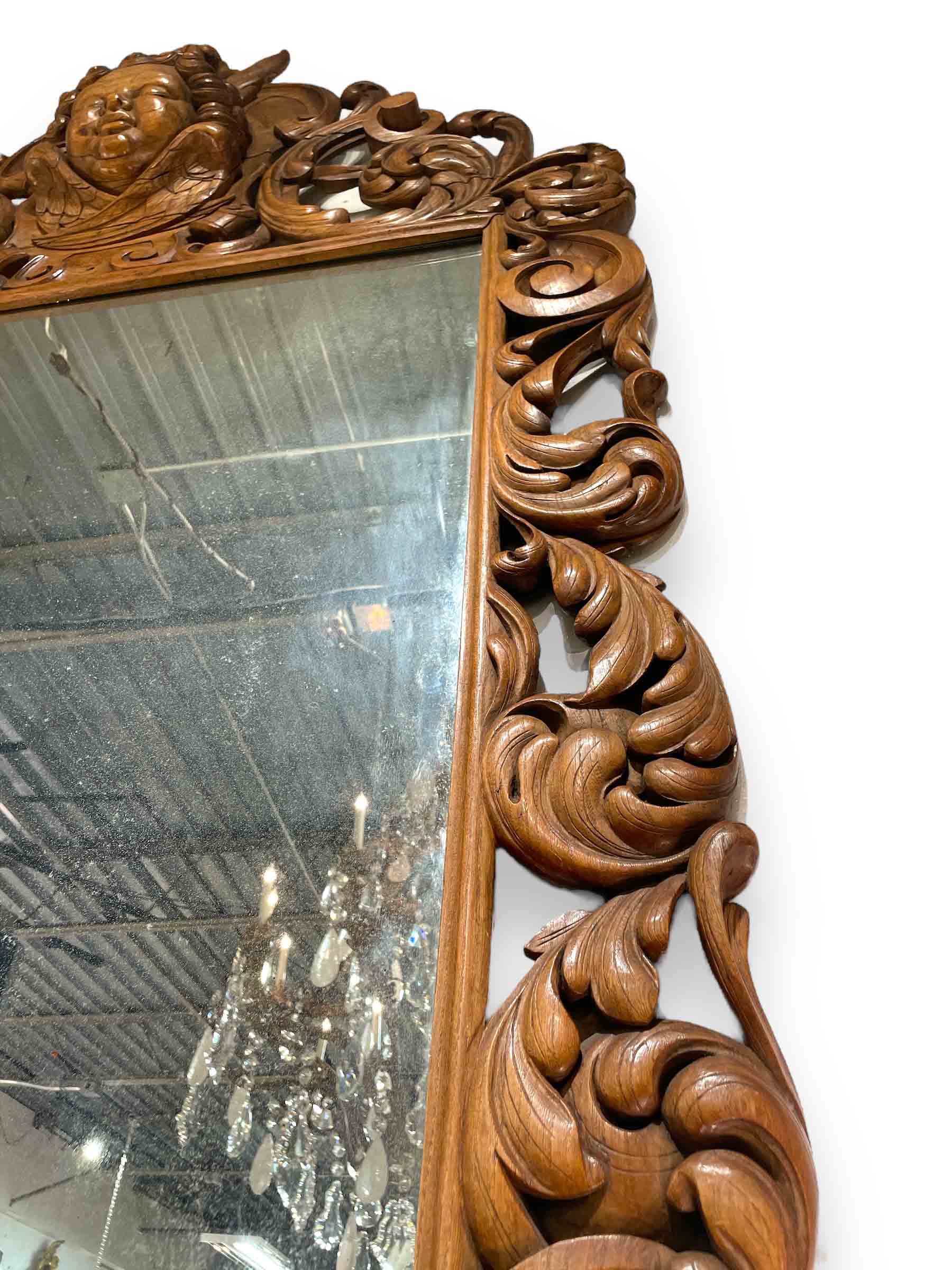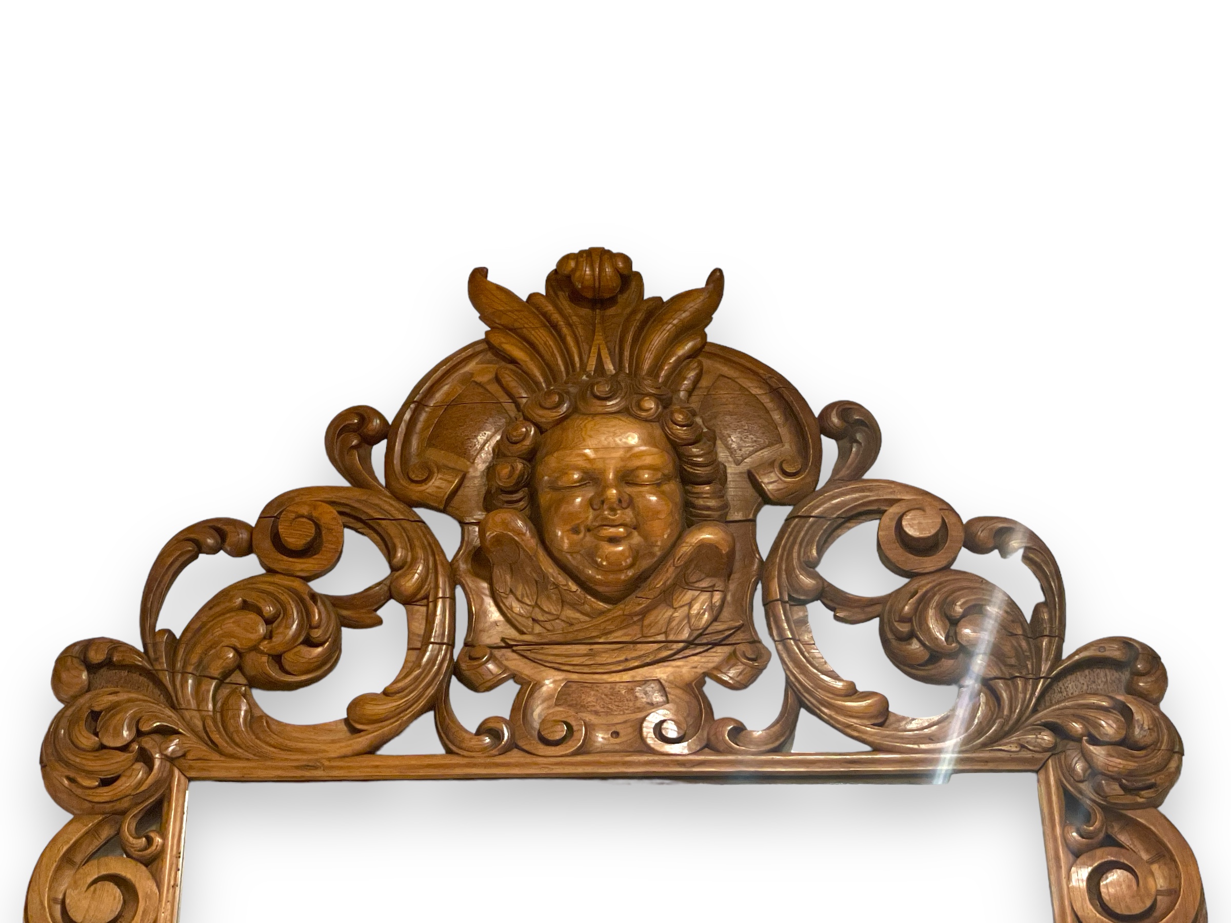 Large carved Spanish Baroque-style walnut frame with angel in center at top c.1820, now a mirror.