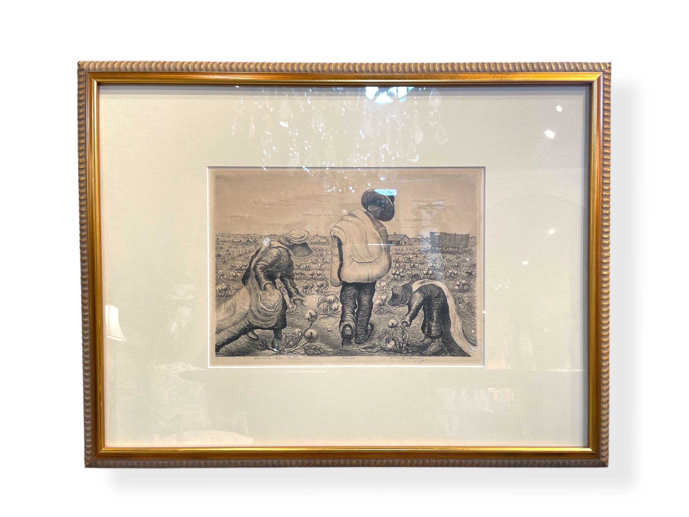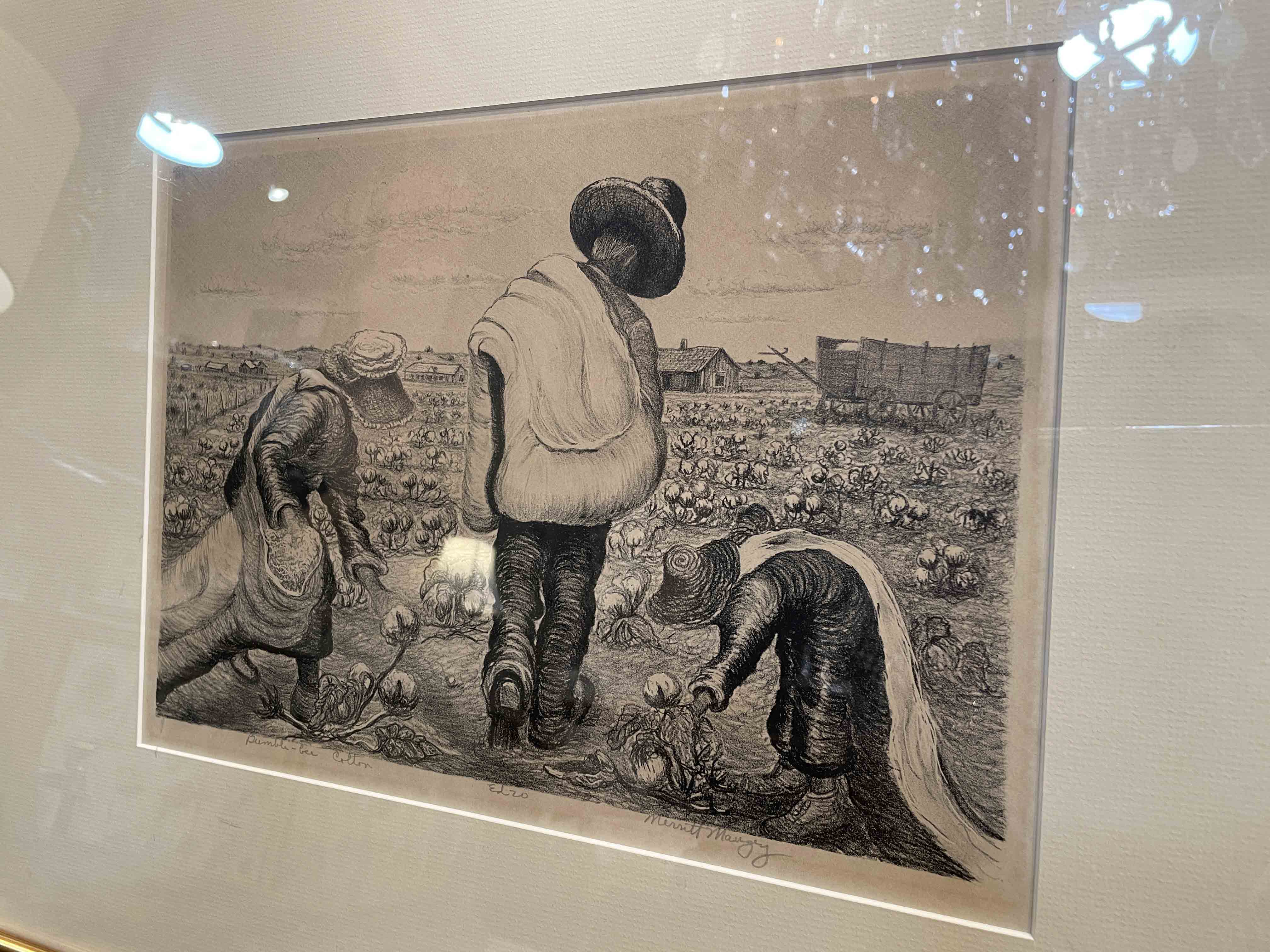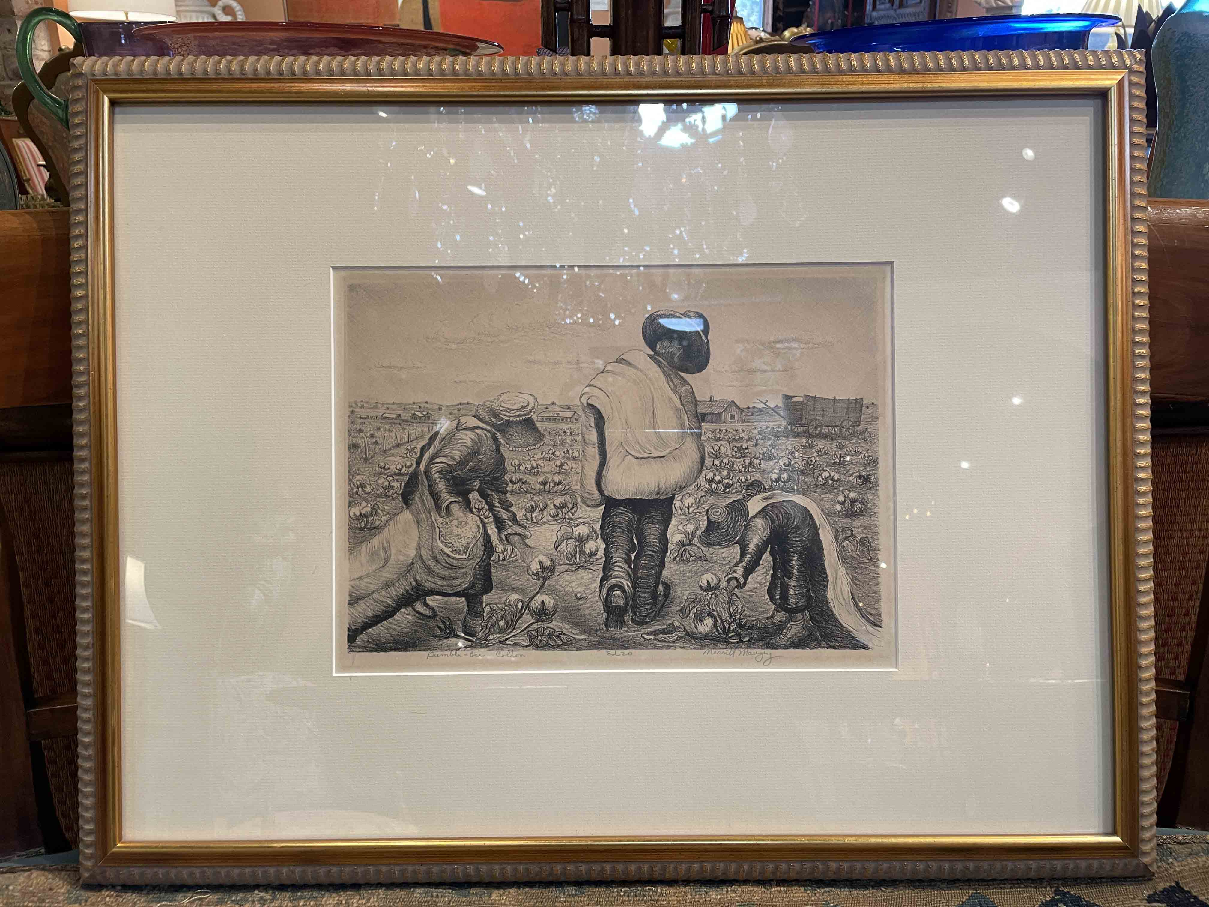 Framed lithograph entitled 'Bumble Bee Cotton", ed. 20, by Texas Regionalist Artist, Merritt Mauzey (American 1897-1973), signed in pencil lower right.