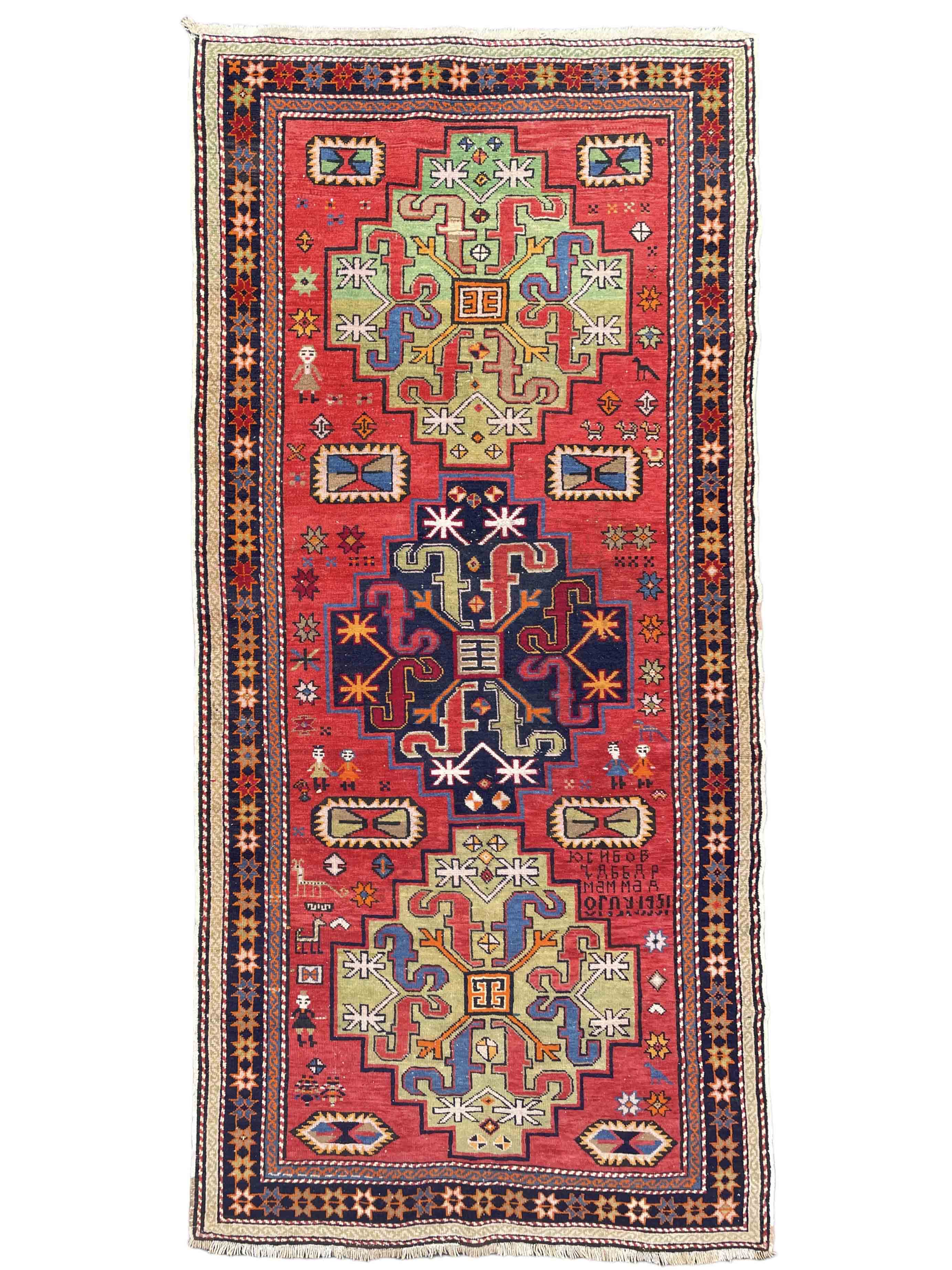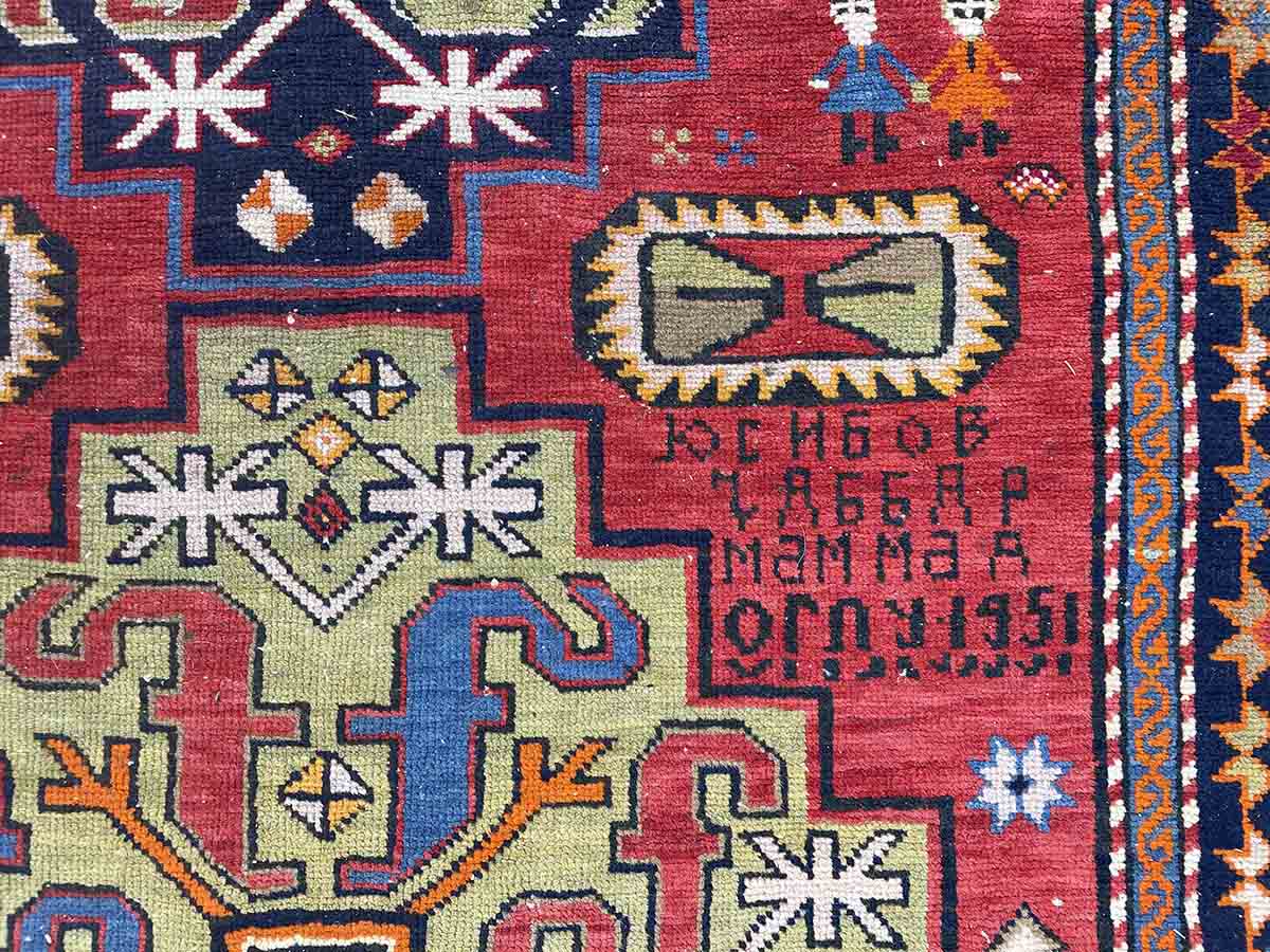 Caucasian runner, very colorful, c. 1950, signed.
