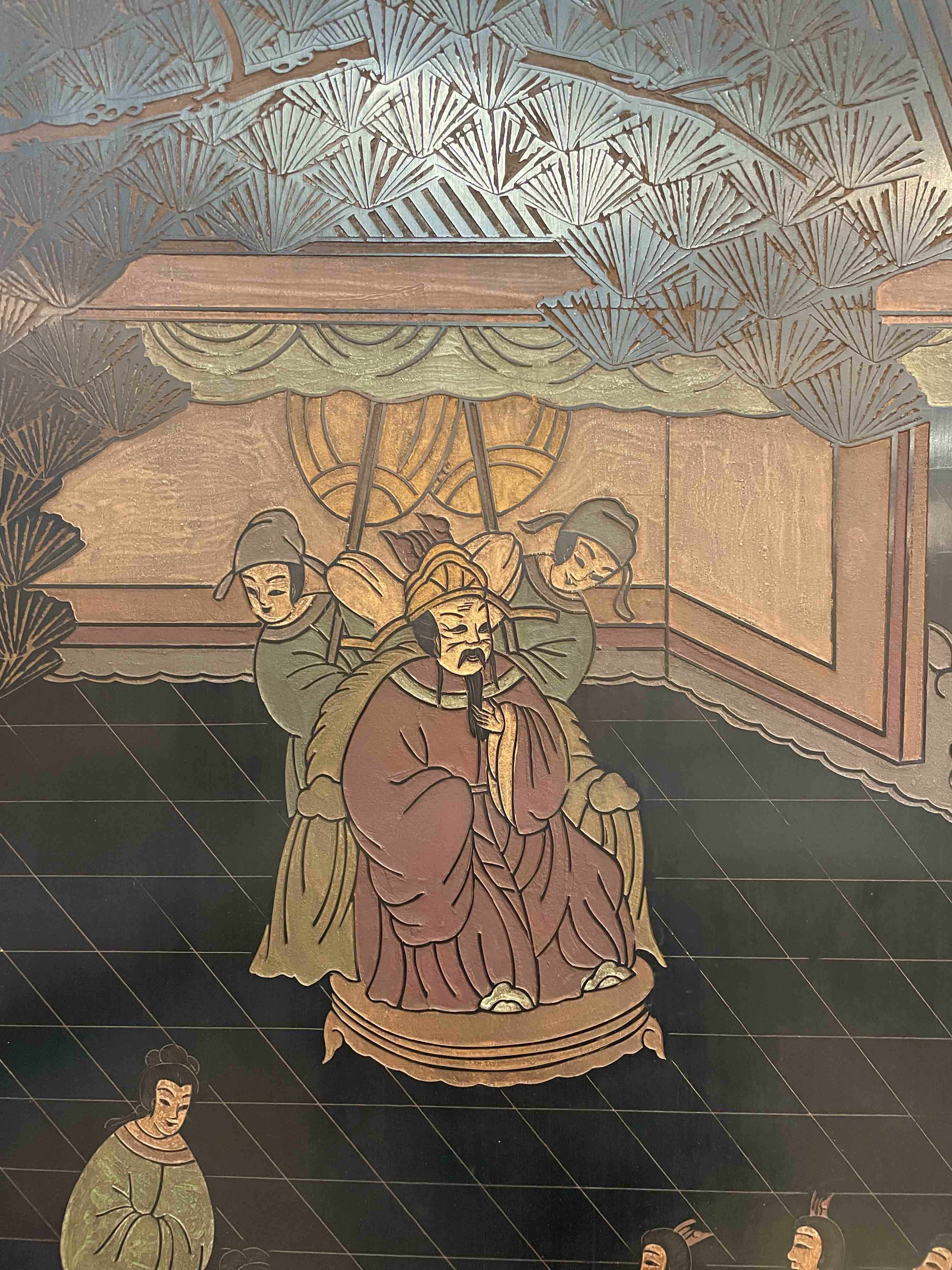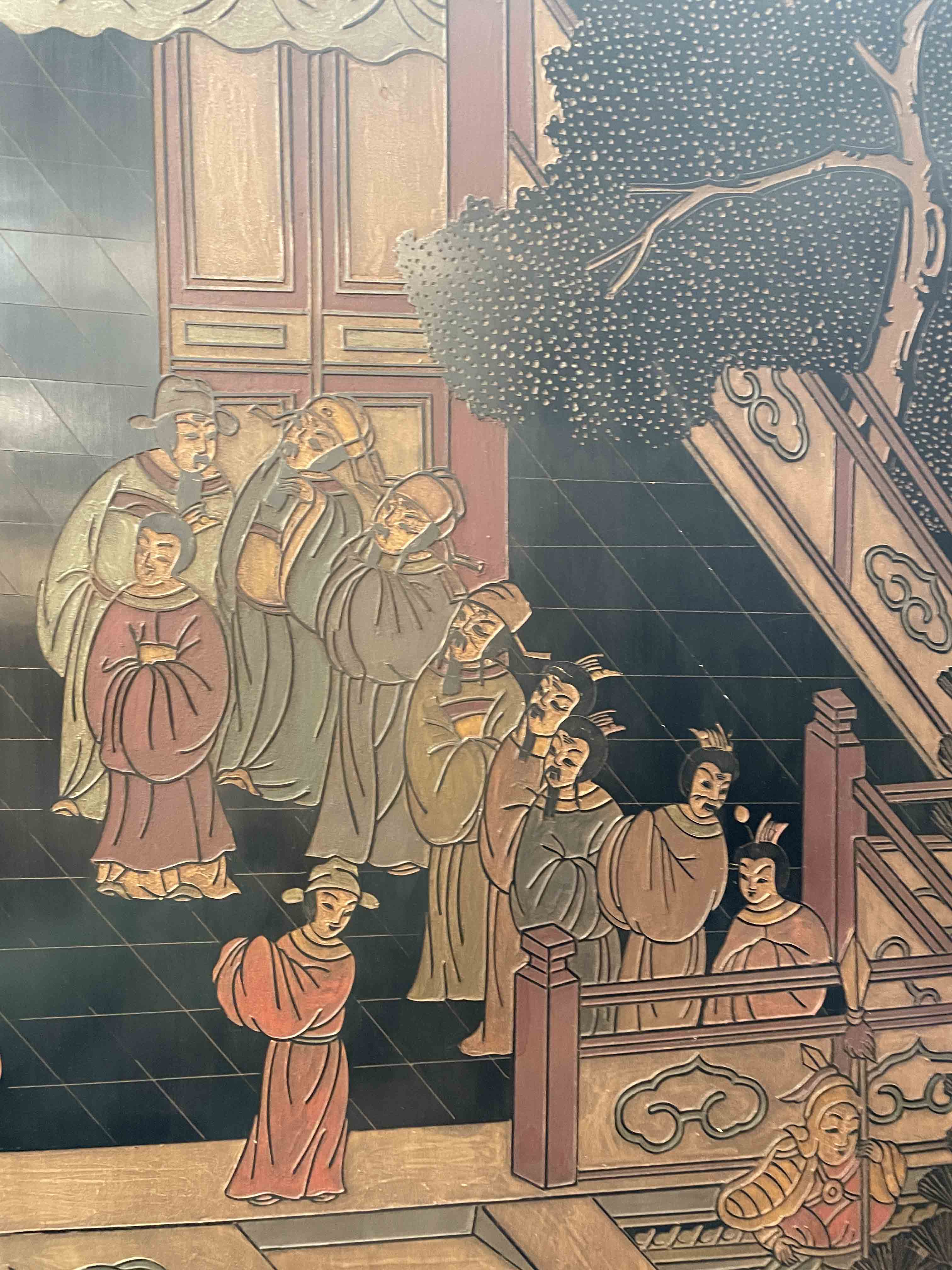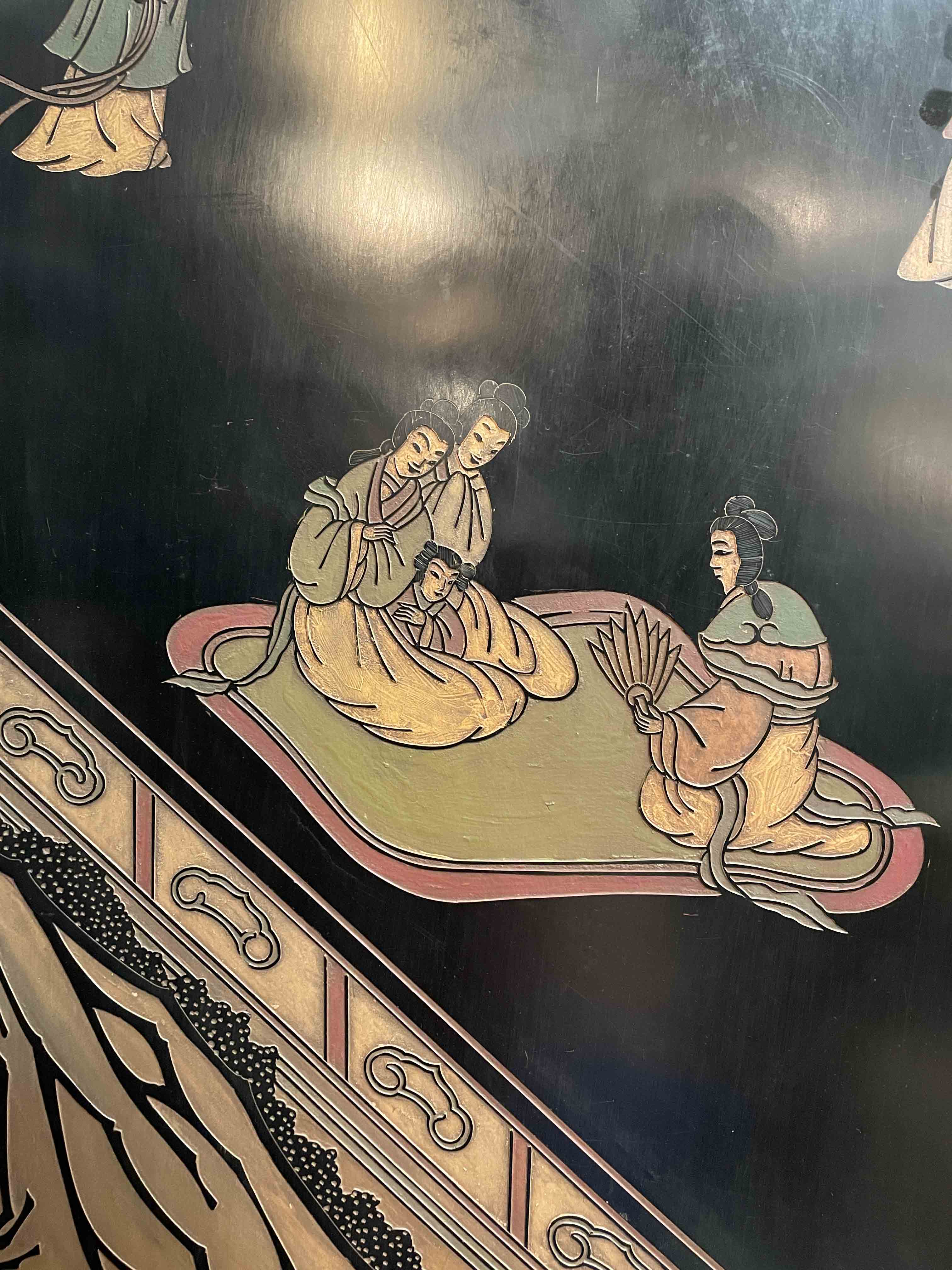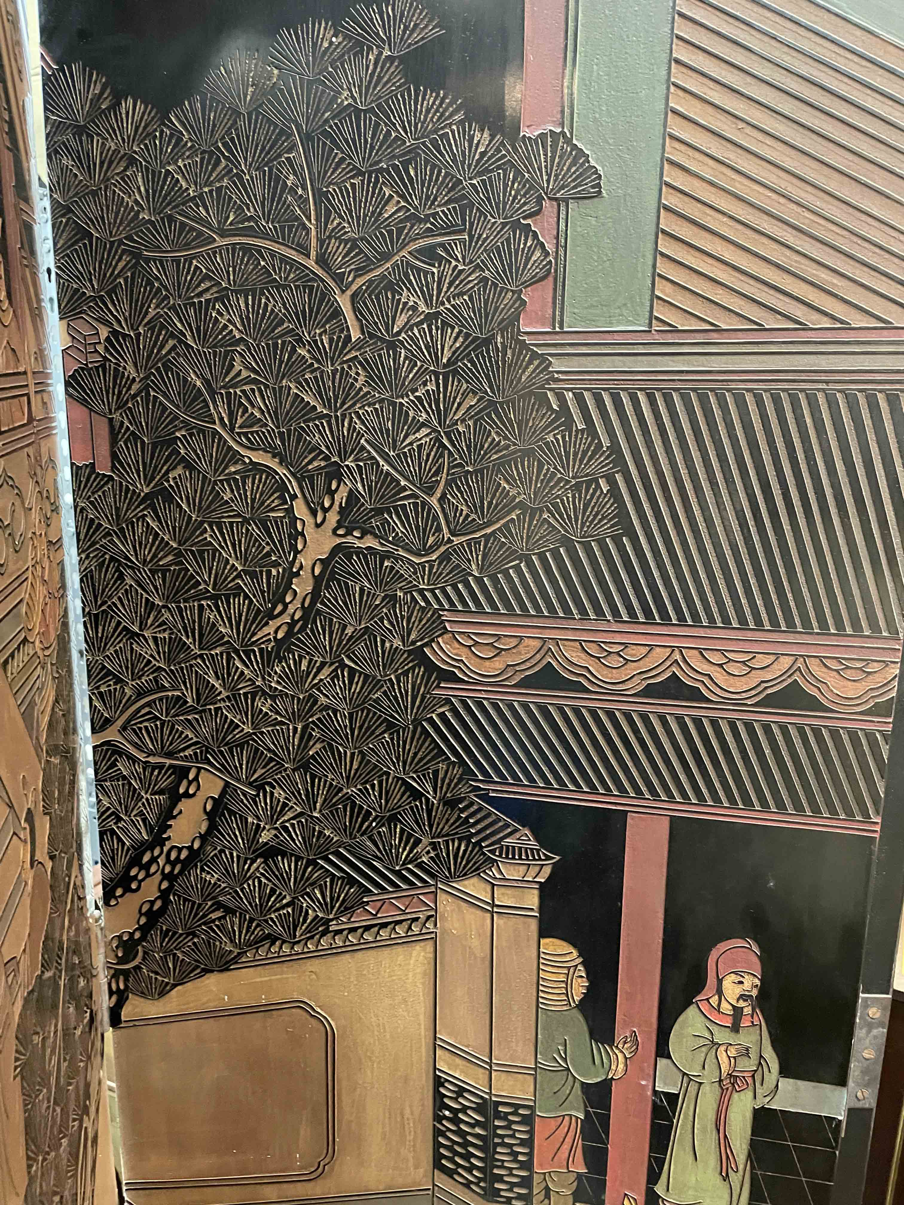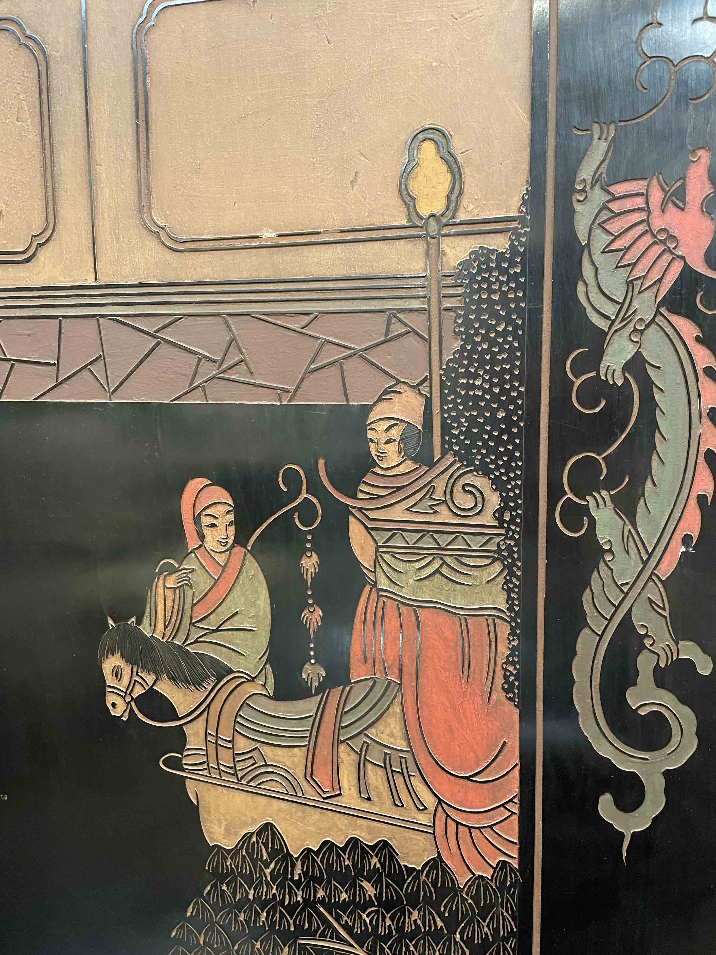 Early 20th C Chinese eight panel polychrome and black lacquered screen.