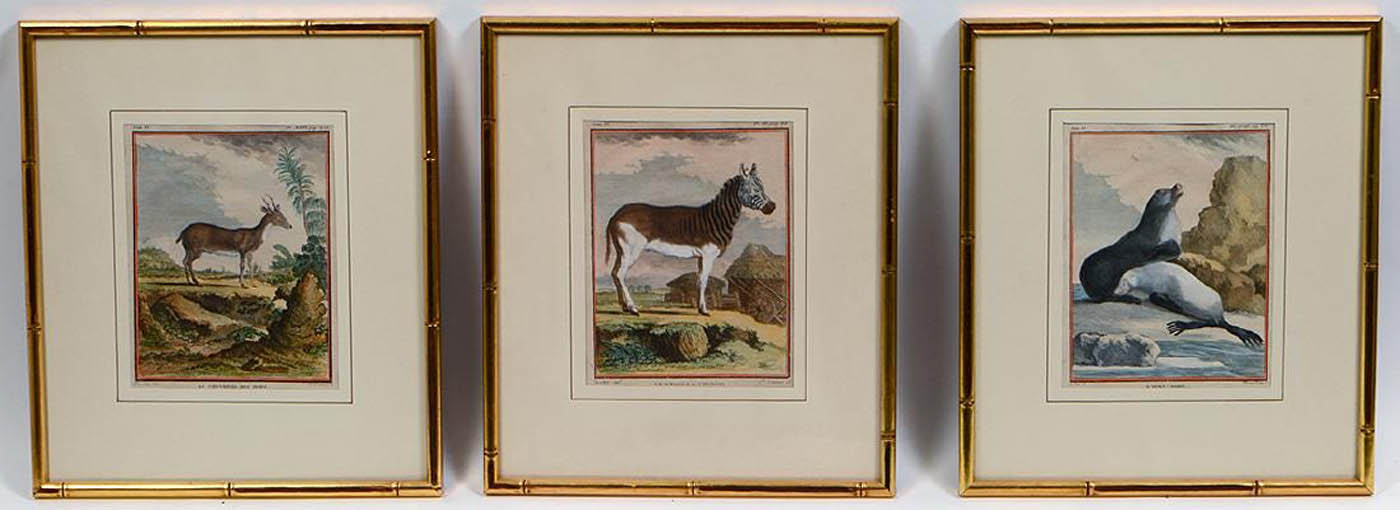 Ten copper engravings of mammals, assorted images. France, 19th C. in thin gold gilt frames