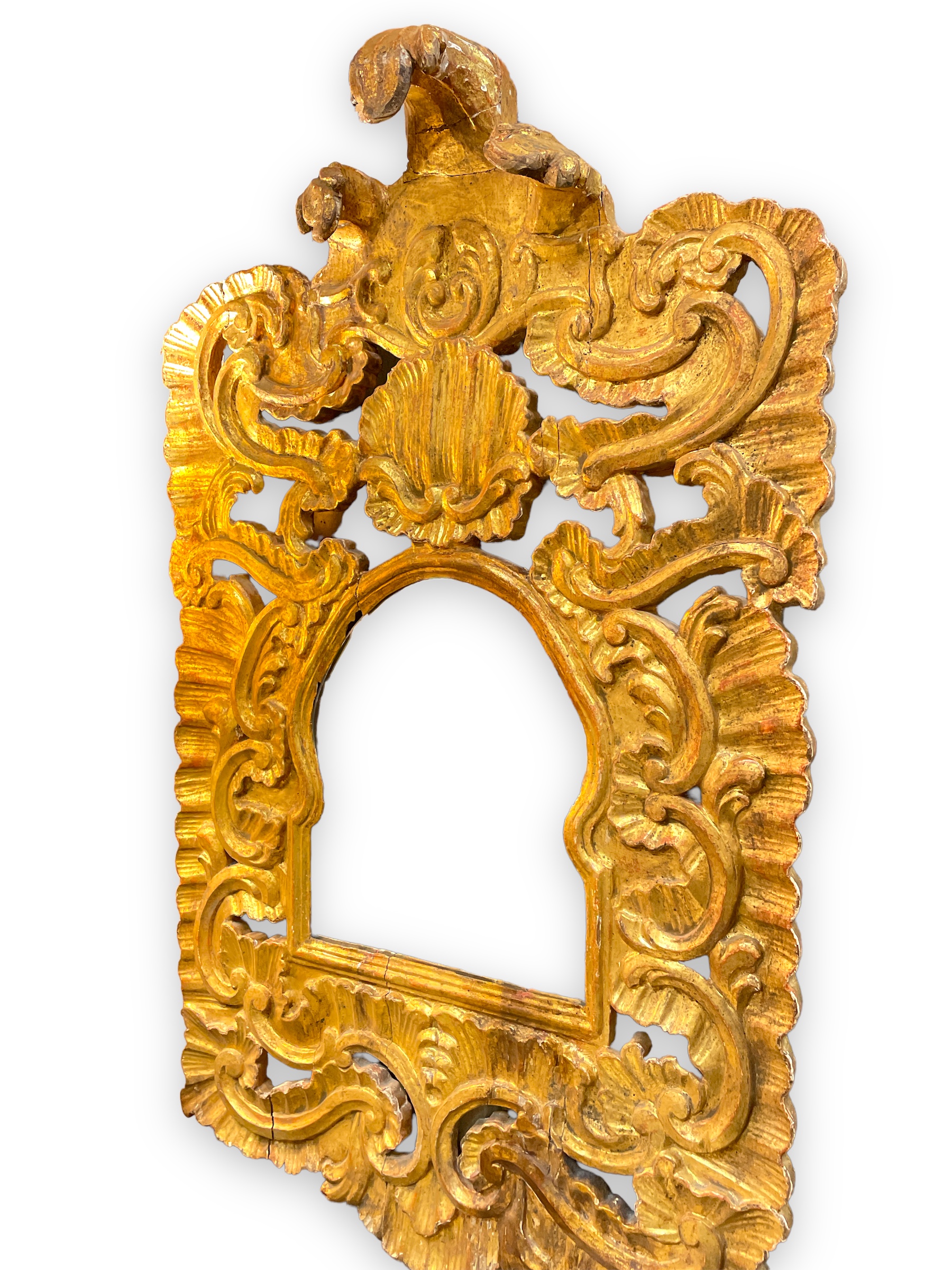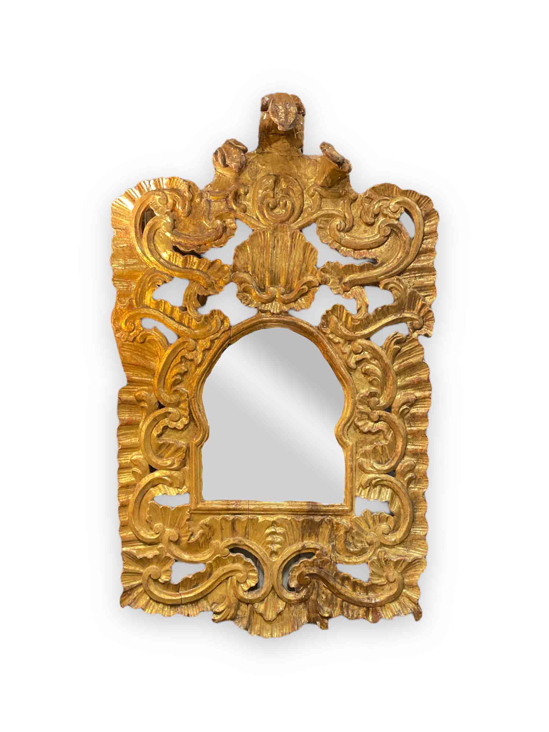 18th C carved Spanish Colonial gold gilt mirror.