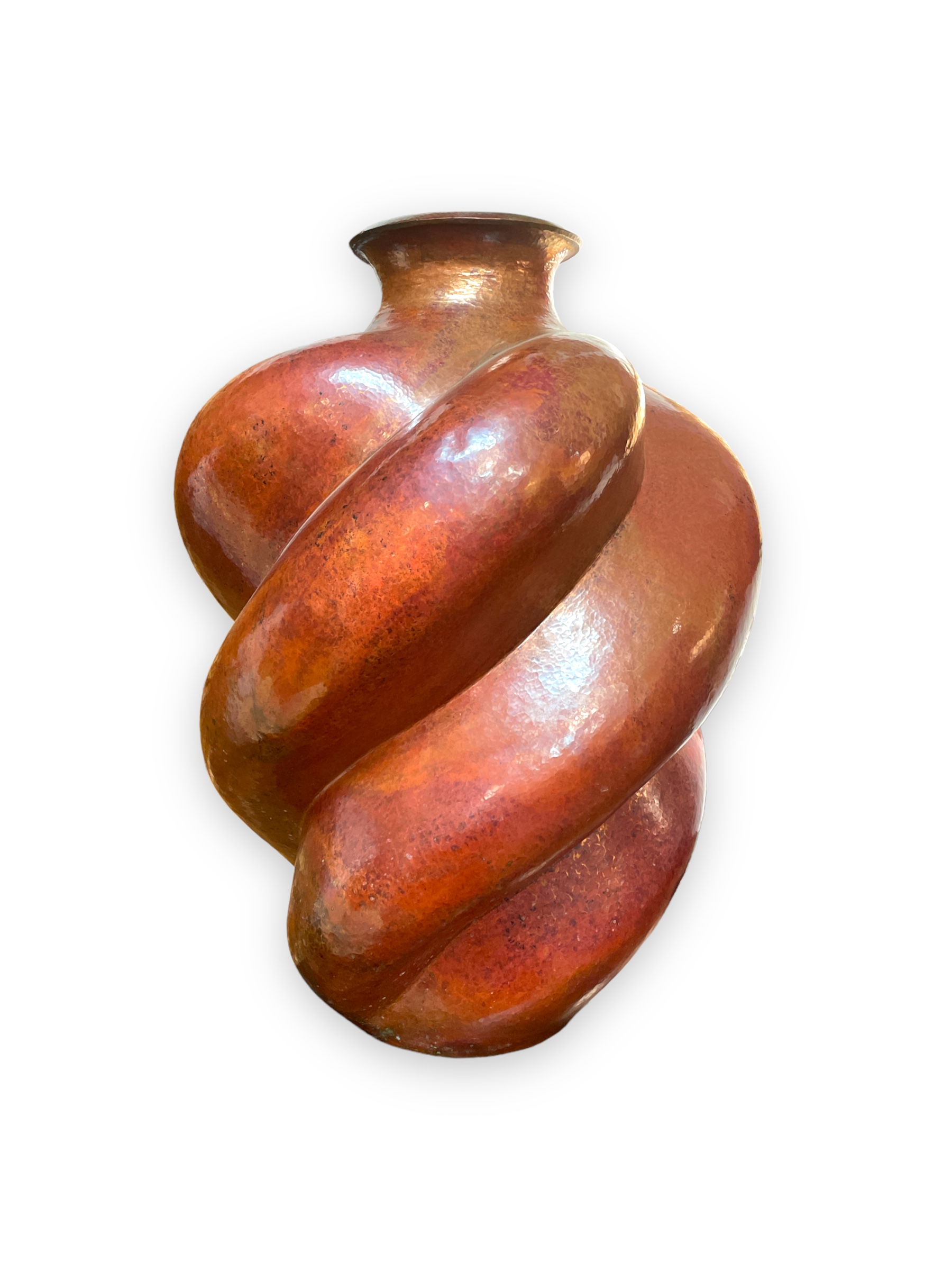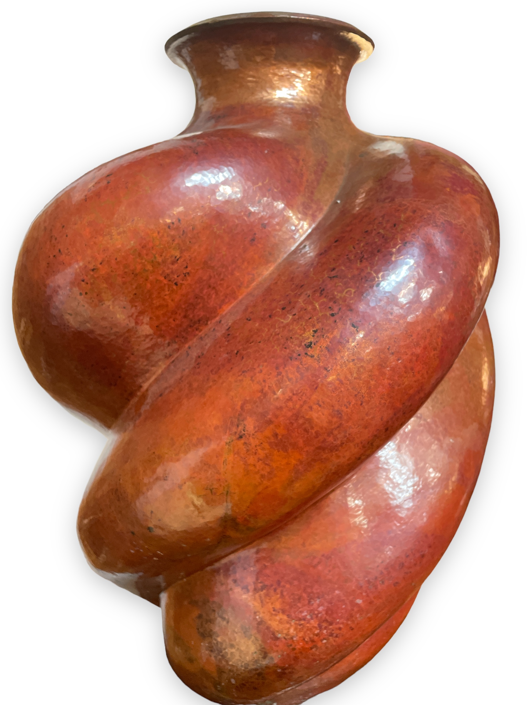 Large hammered copper vase, 20th C, signed on underside, Abdon Punzo A. (Abdon Punzo Angel, Mexican 1955-2021)