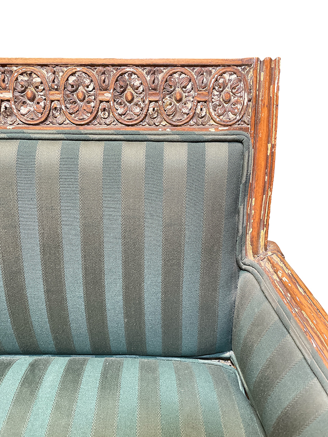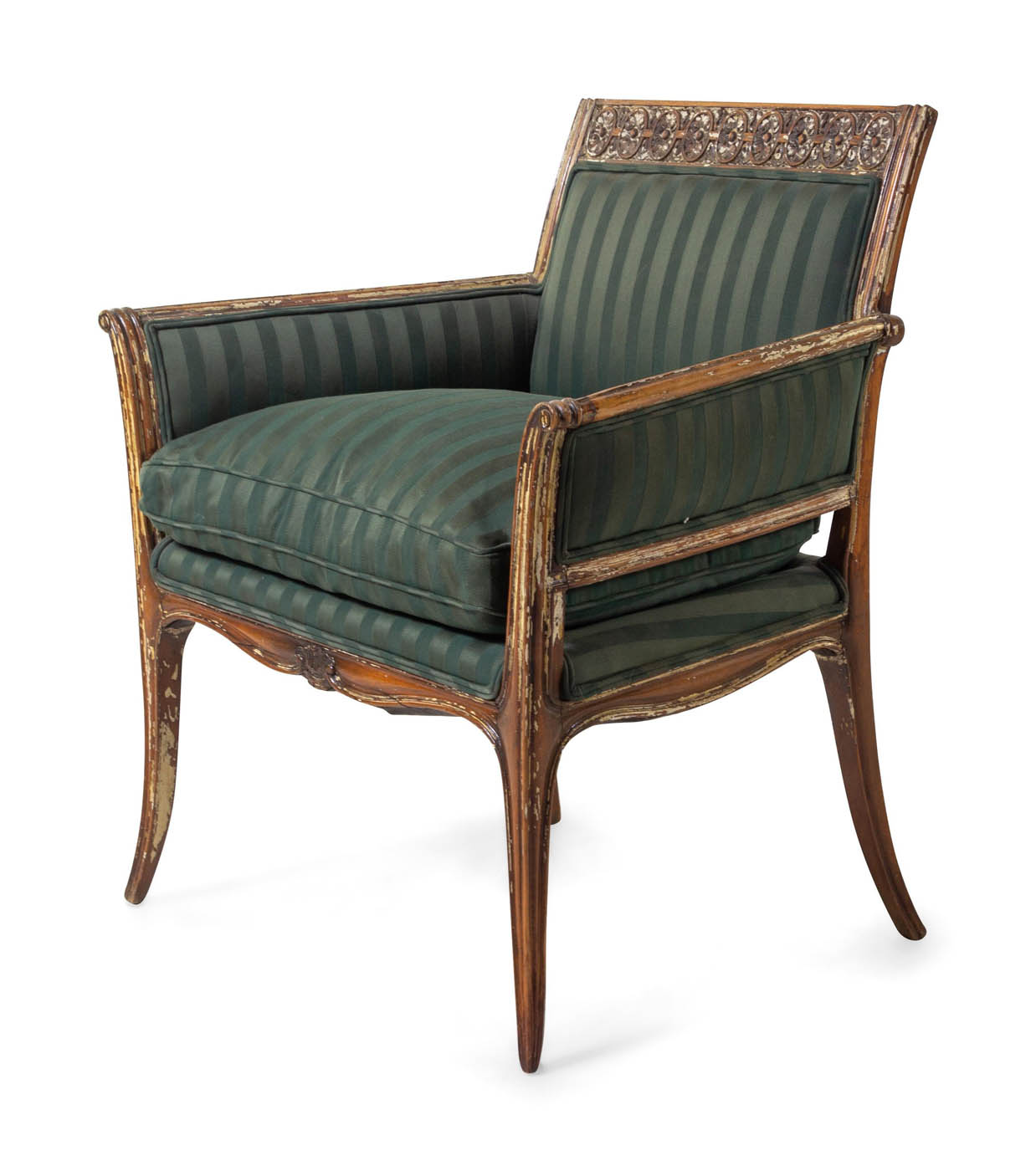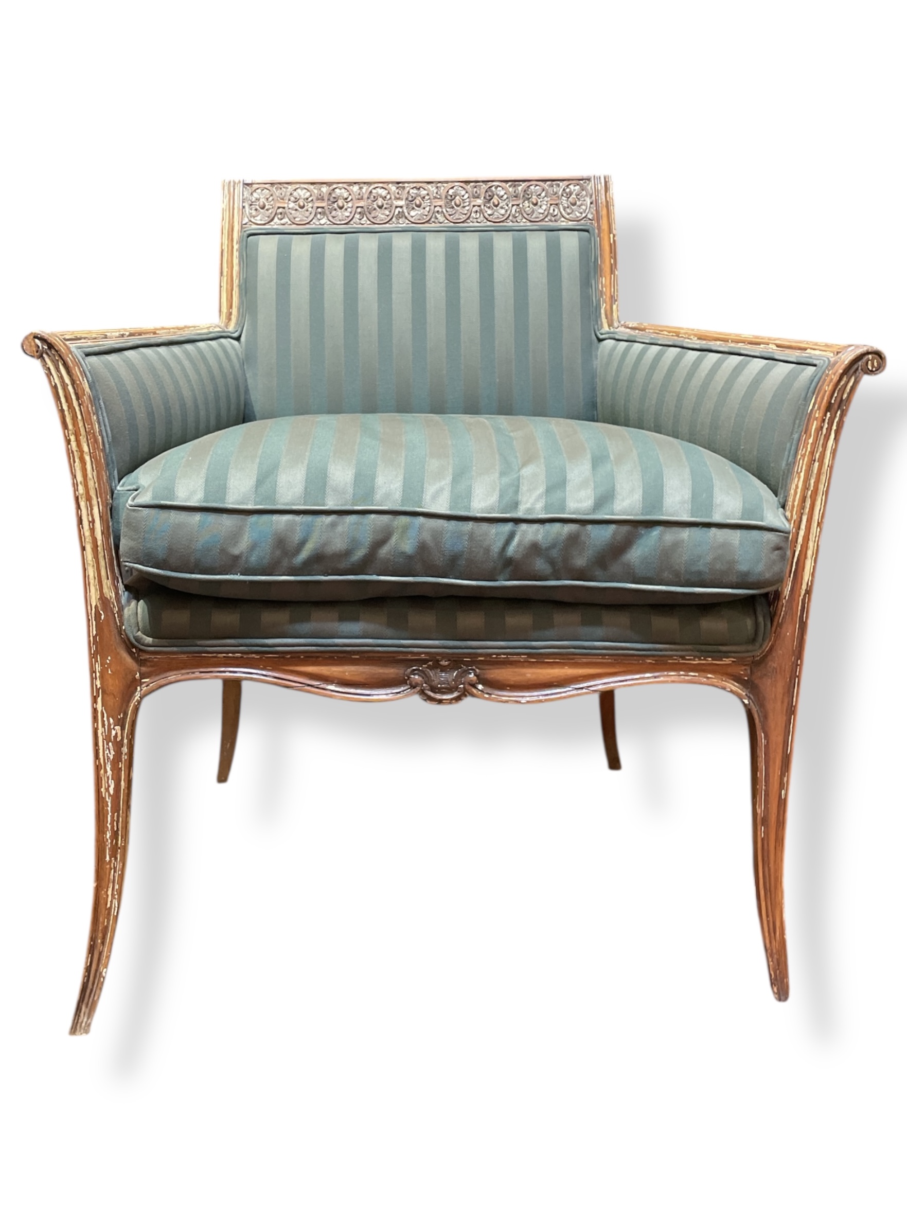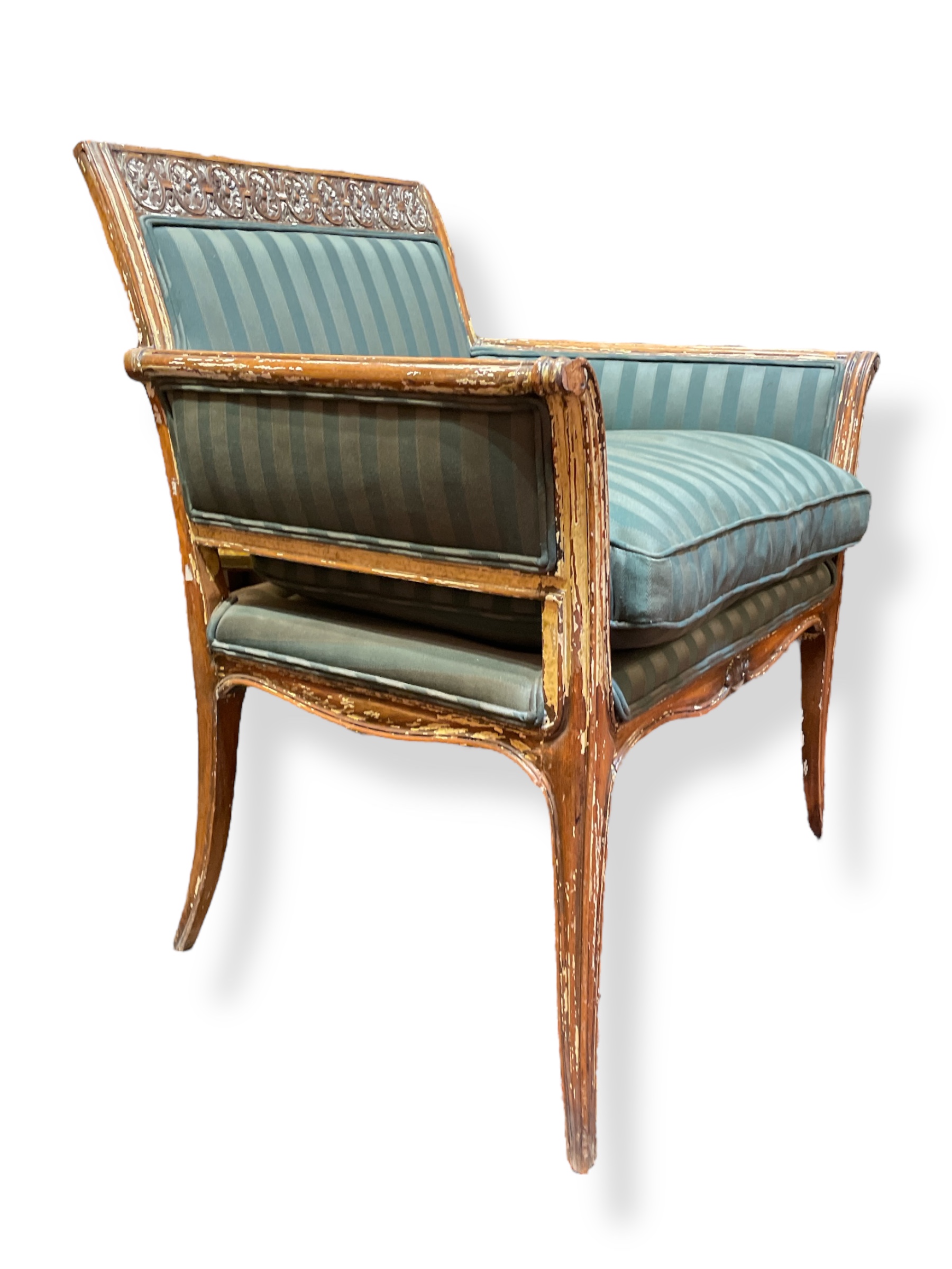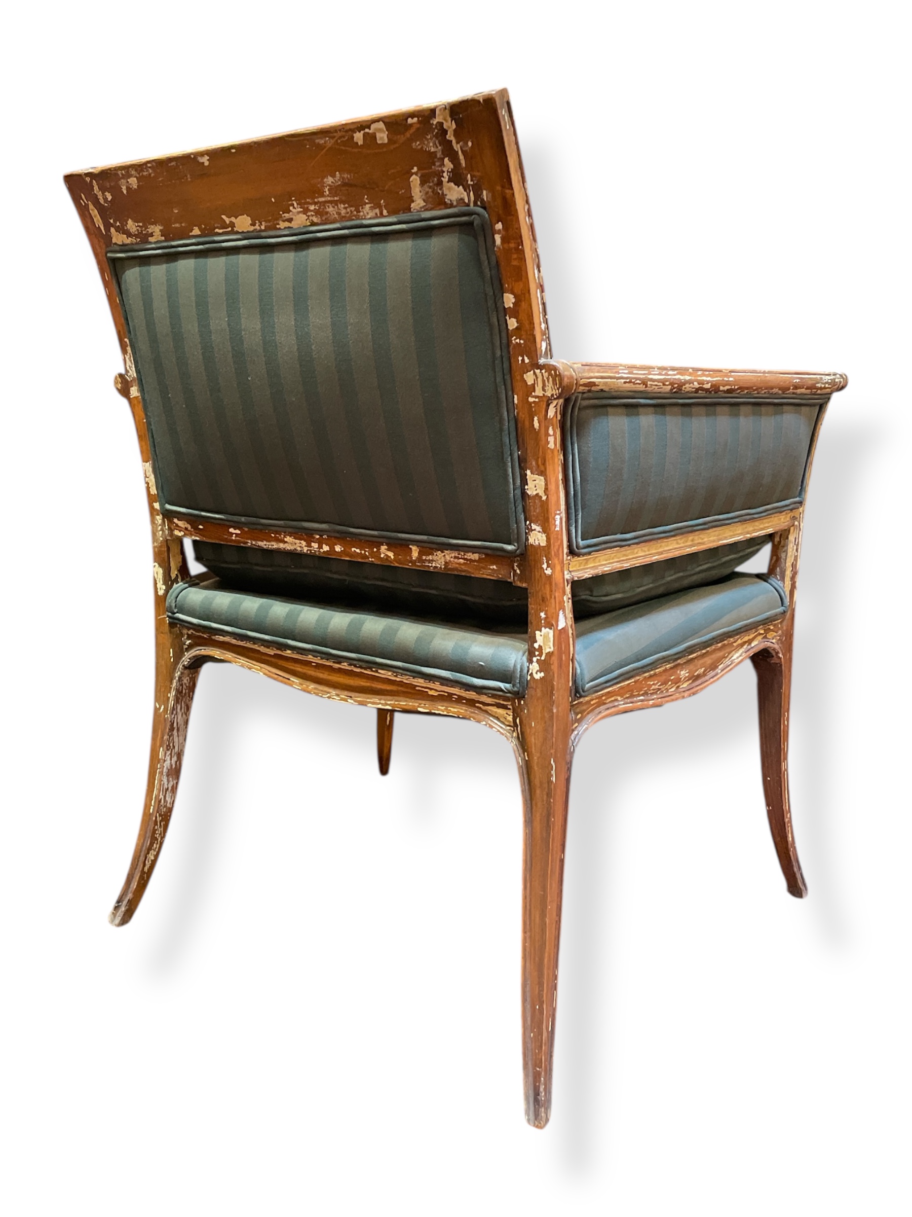 18th /19th C Italian upholstered, painted and parcel gilt armchair.