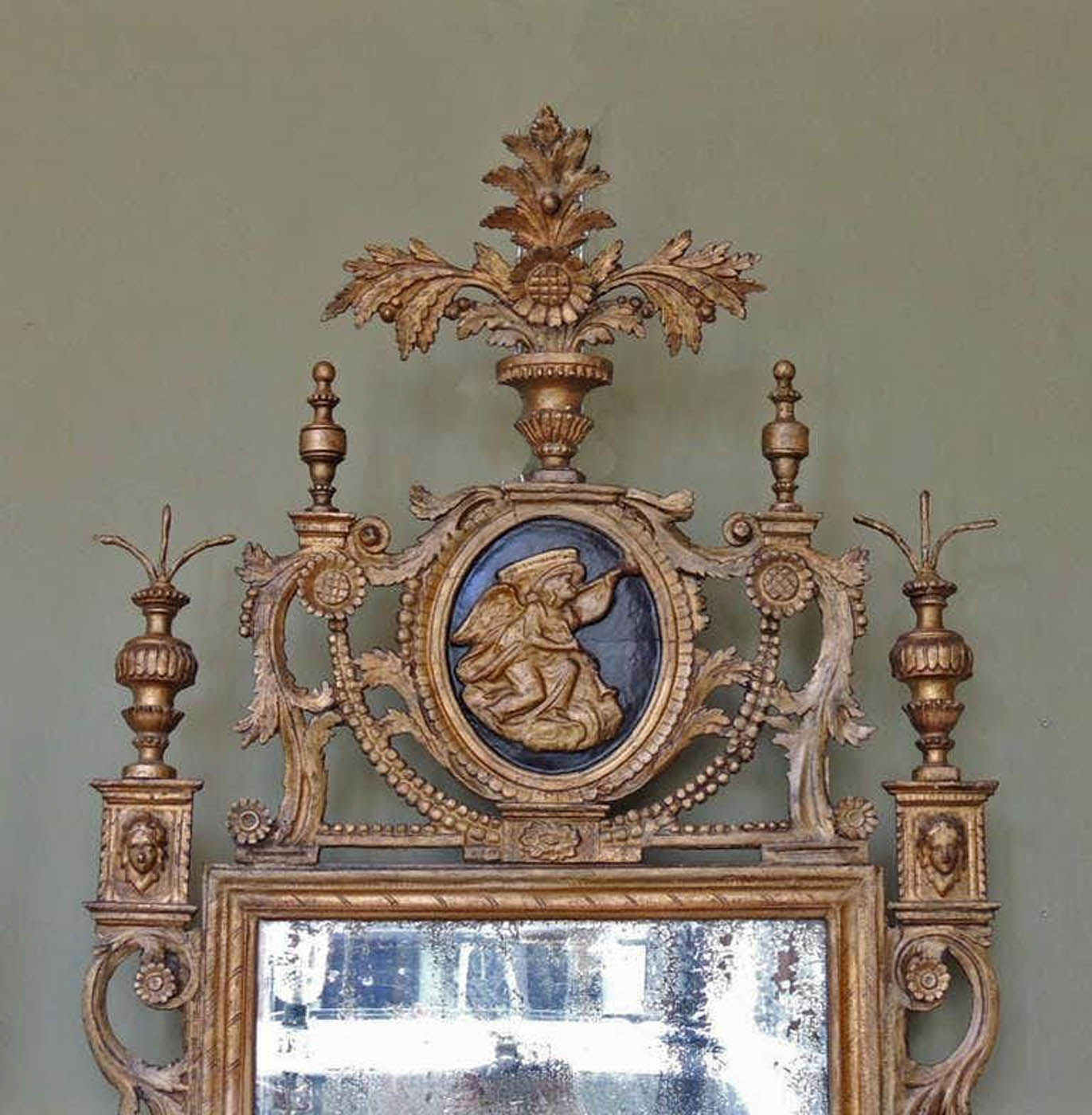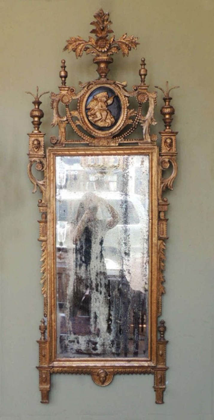 18th C Italian neoclassical mirror, c. 1790, from Tuscany with original plate.