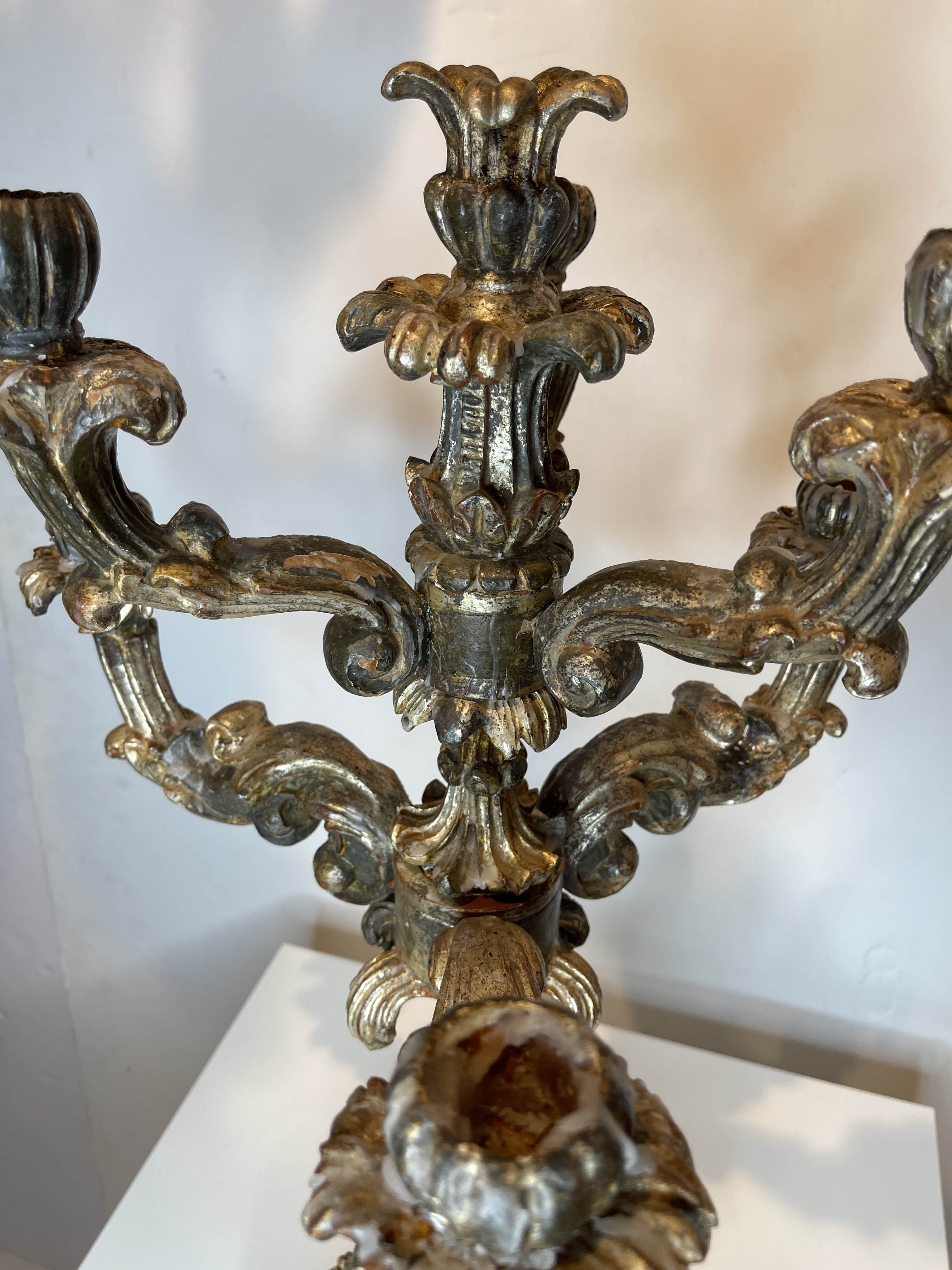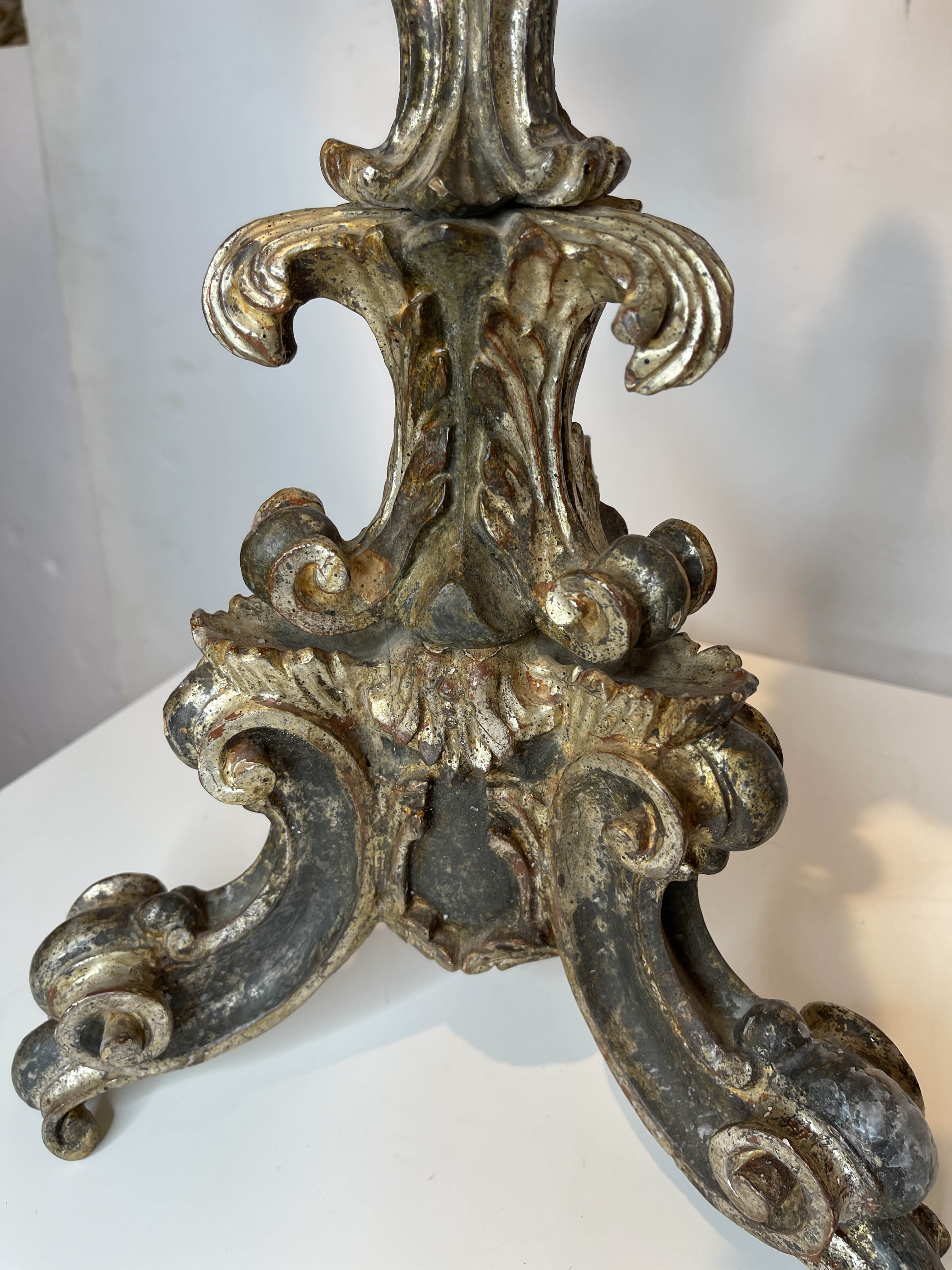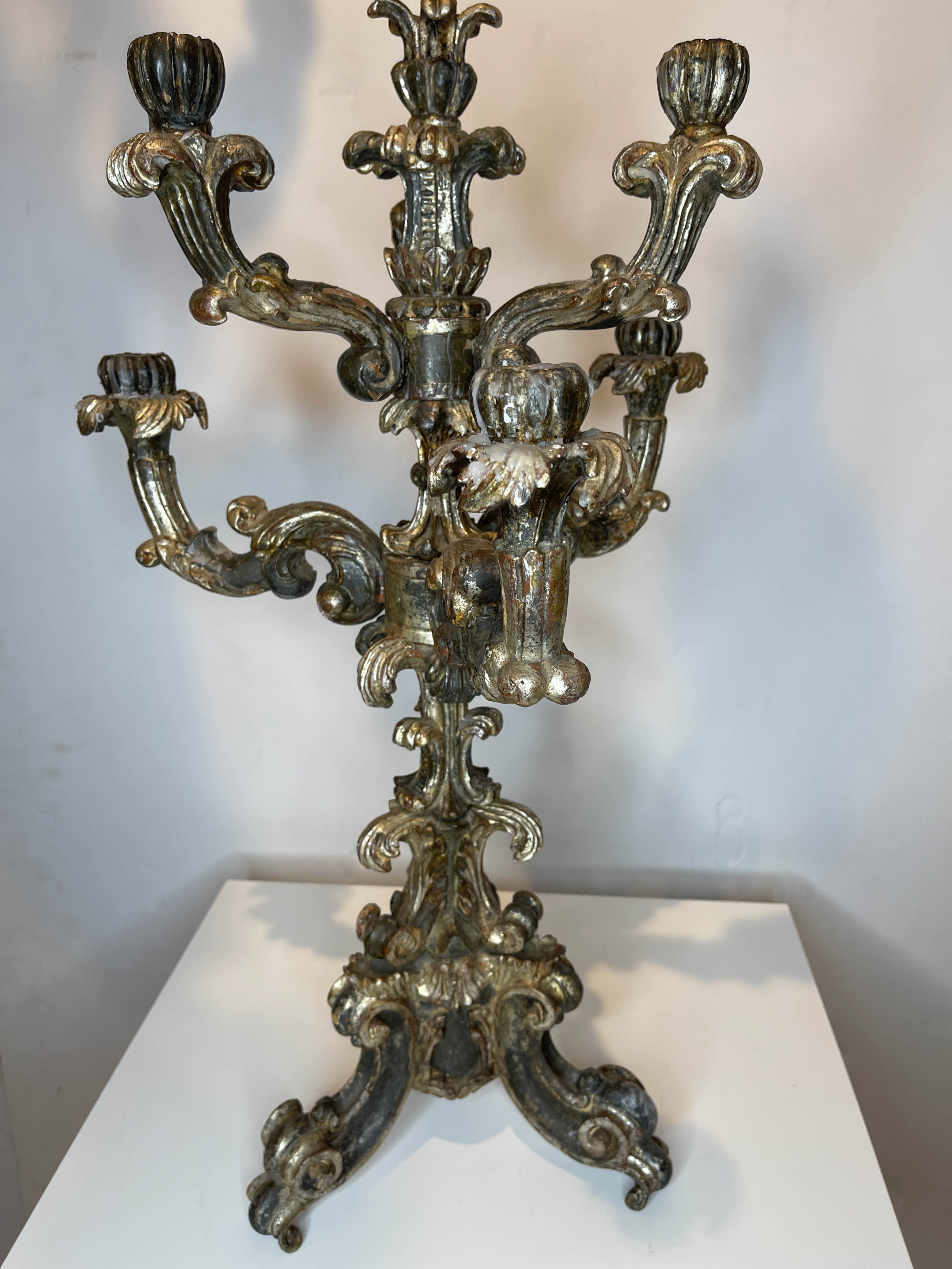 Single painted and parcel silver gilt Italian 19th C candelabra.