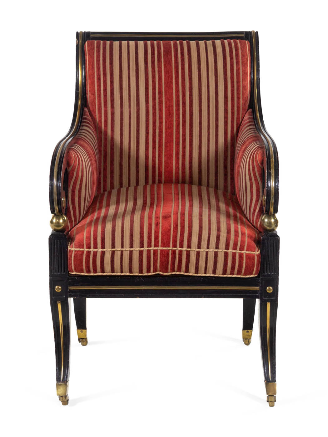 19th C Russian Empire arm chair, brass mounted, lacquered armchair.