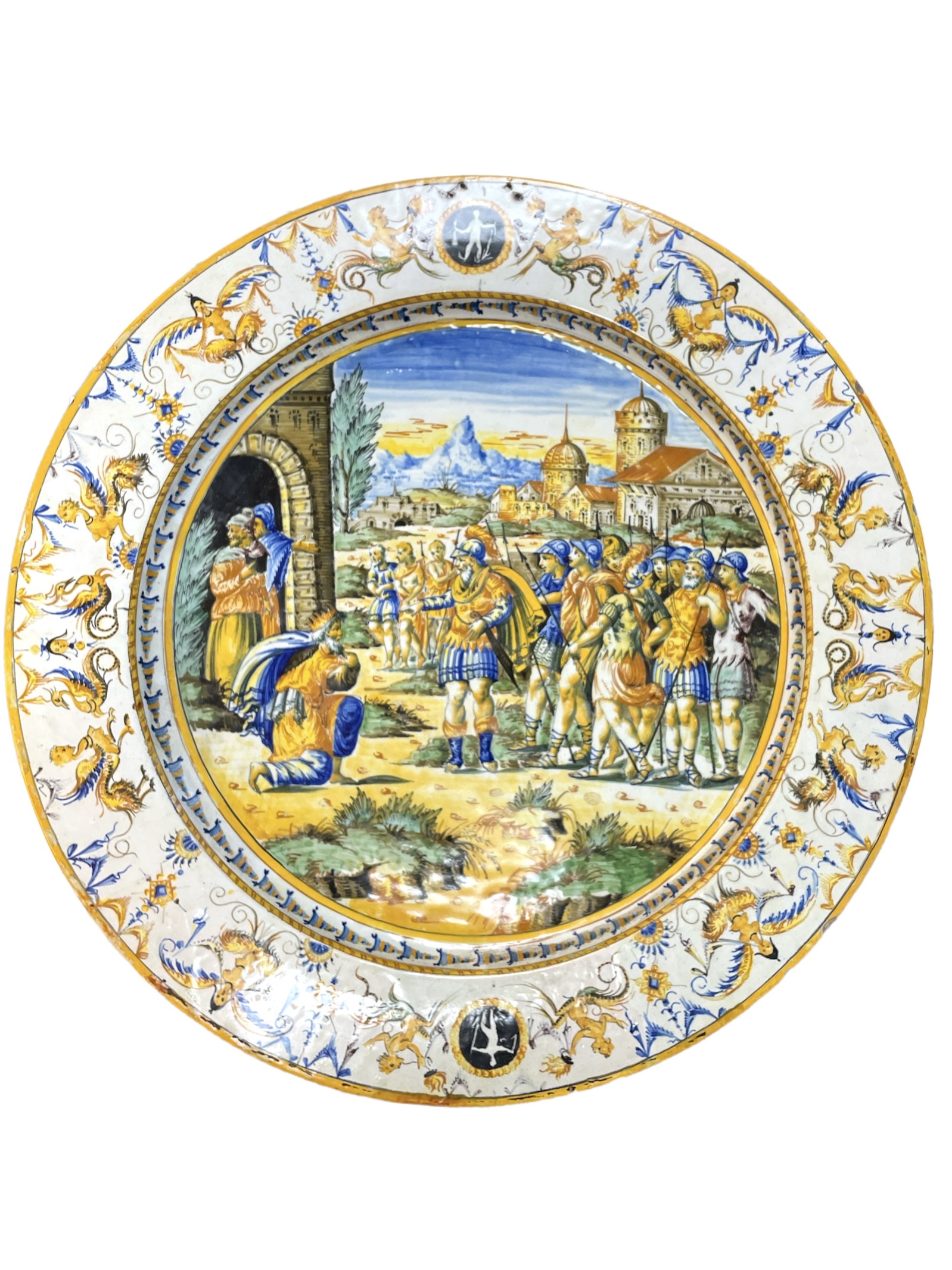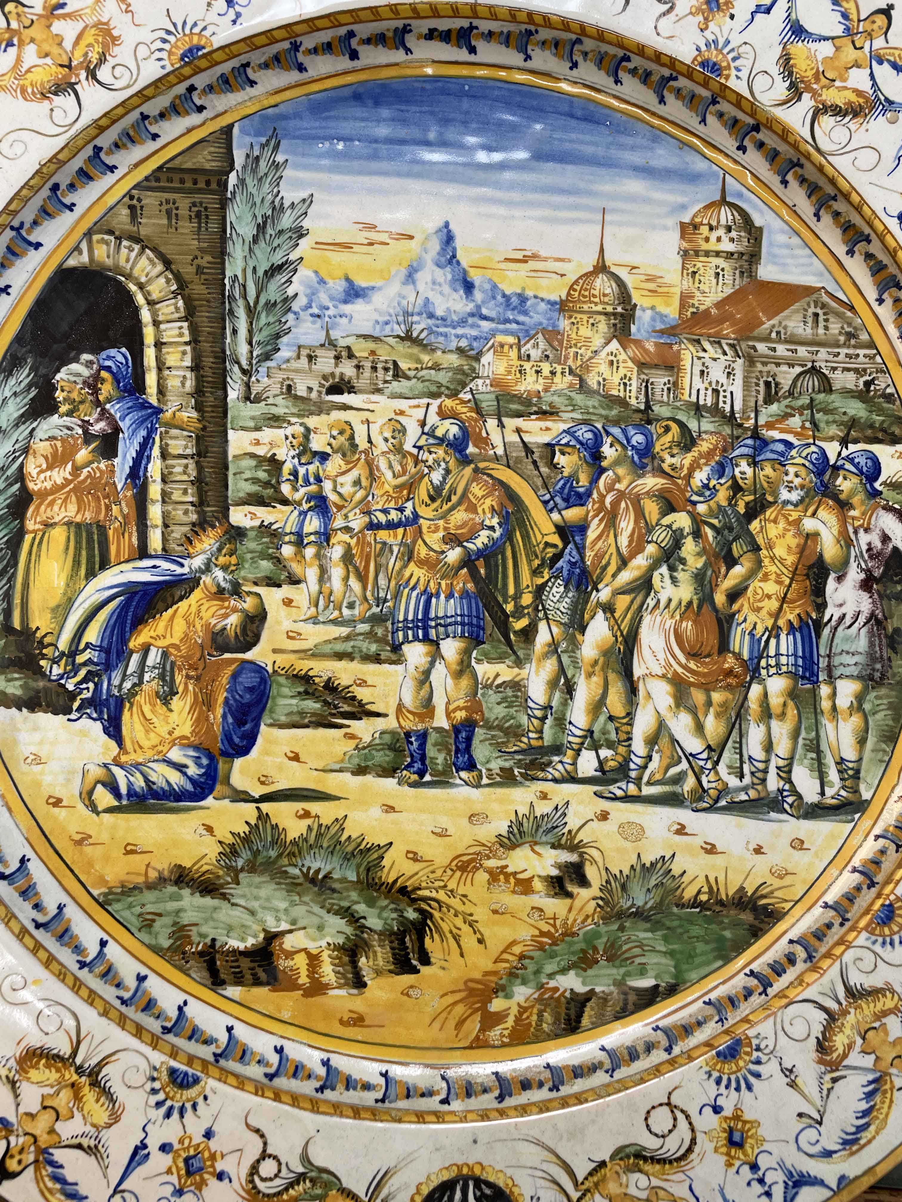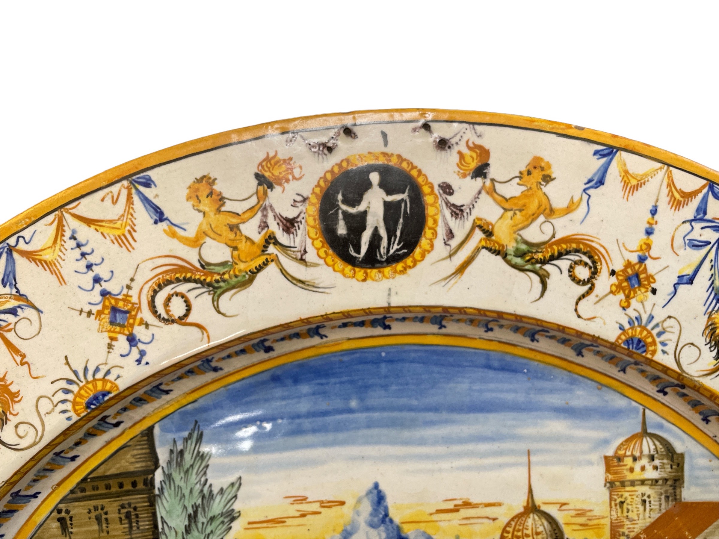 Early 19th C Italian hand painted majolica charger.