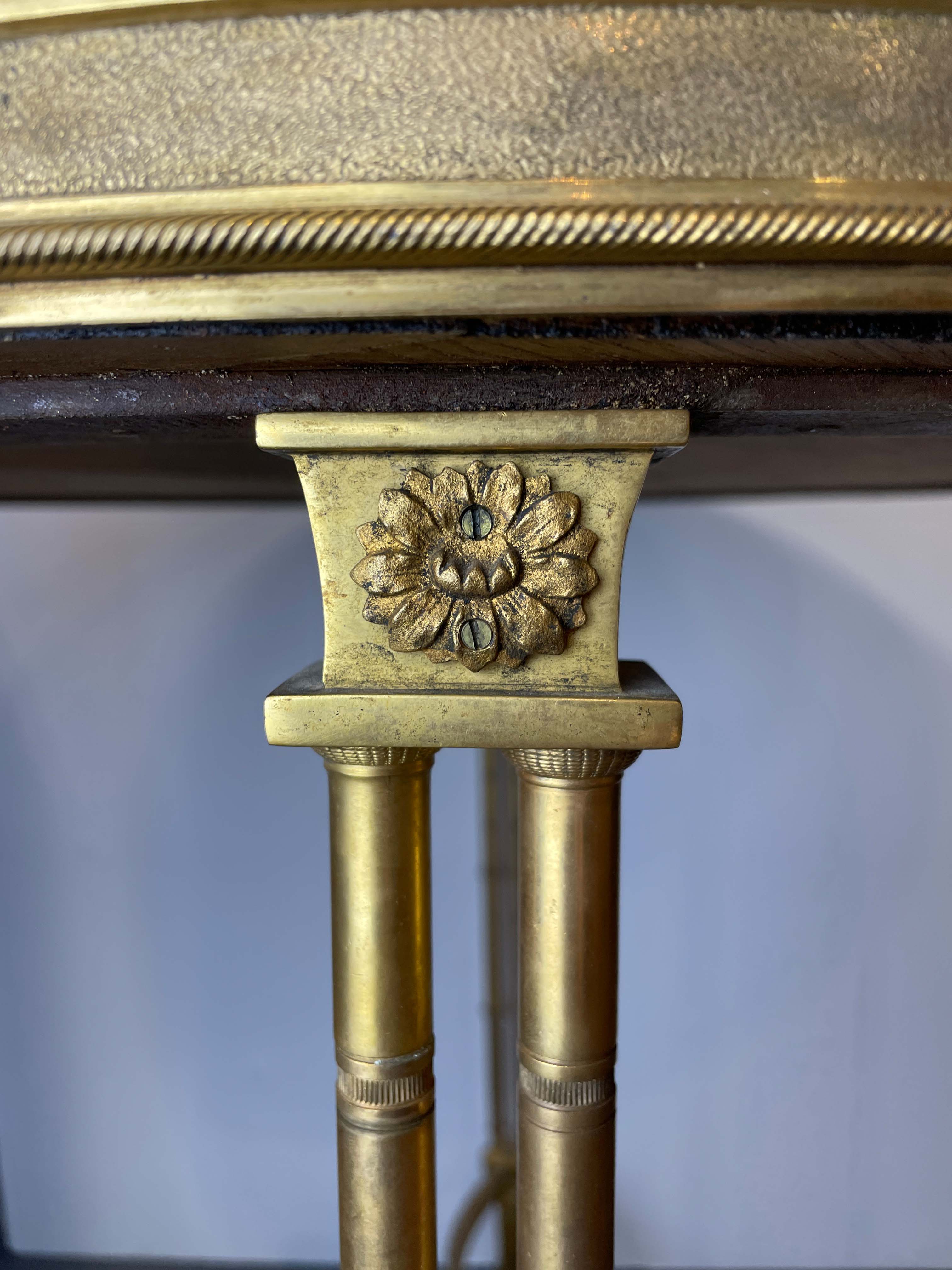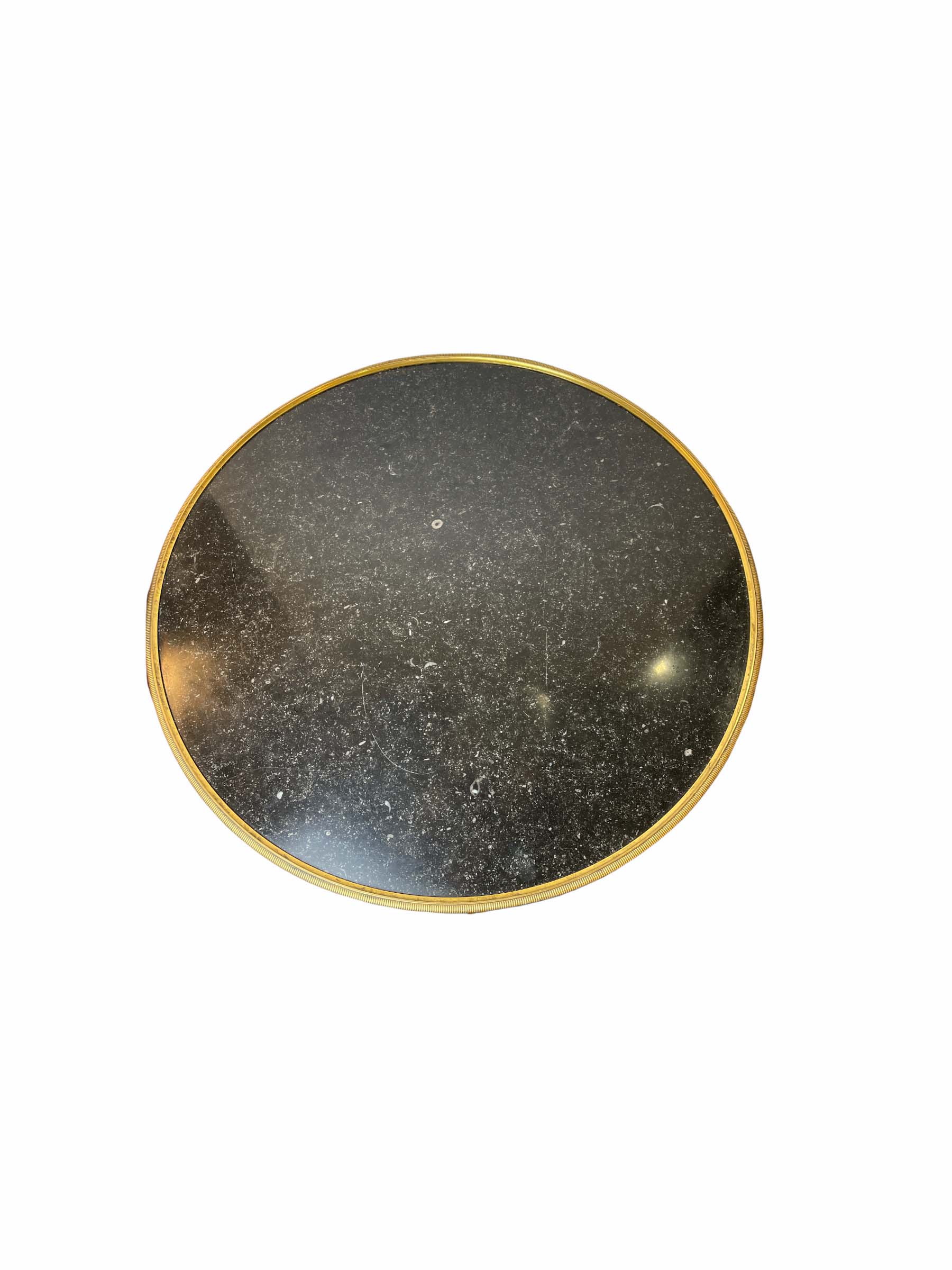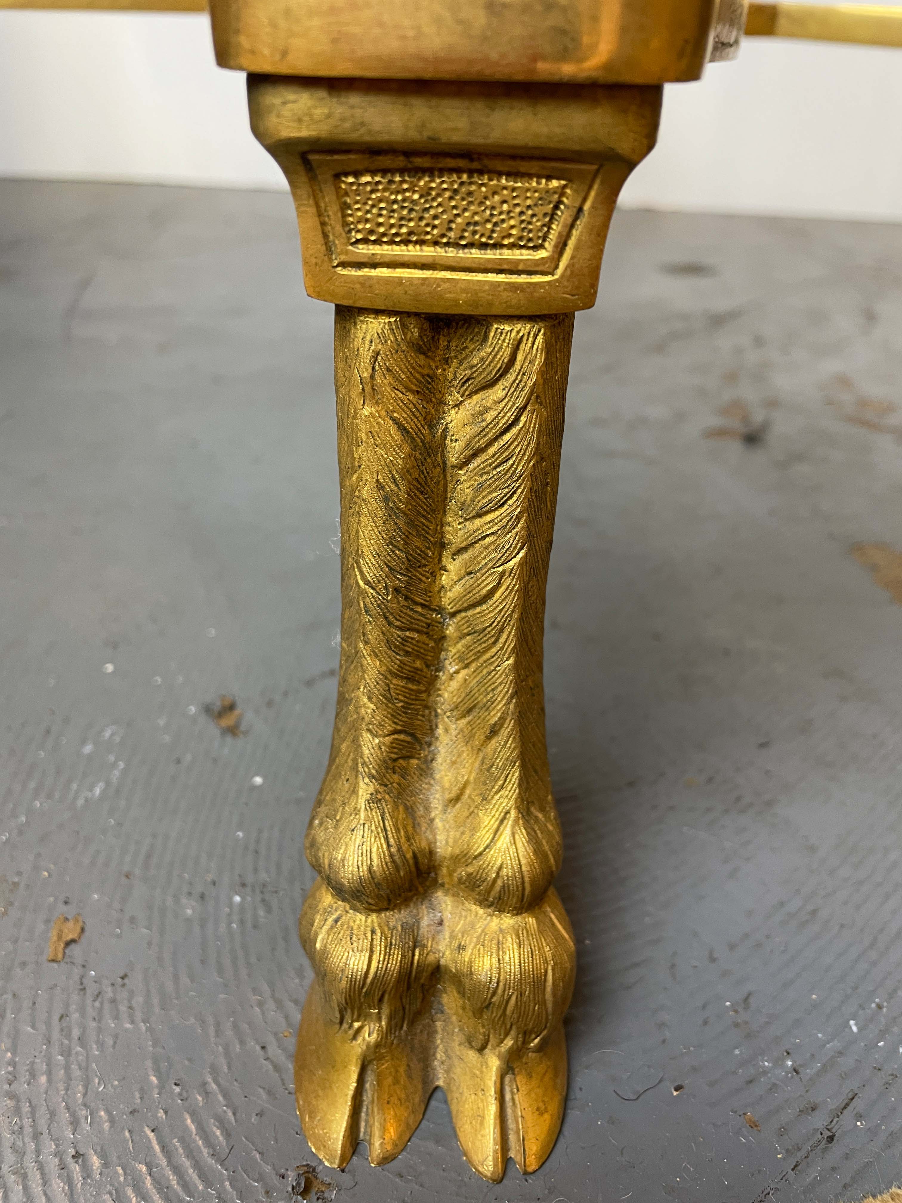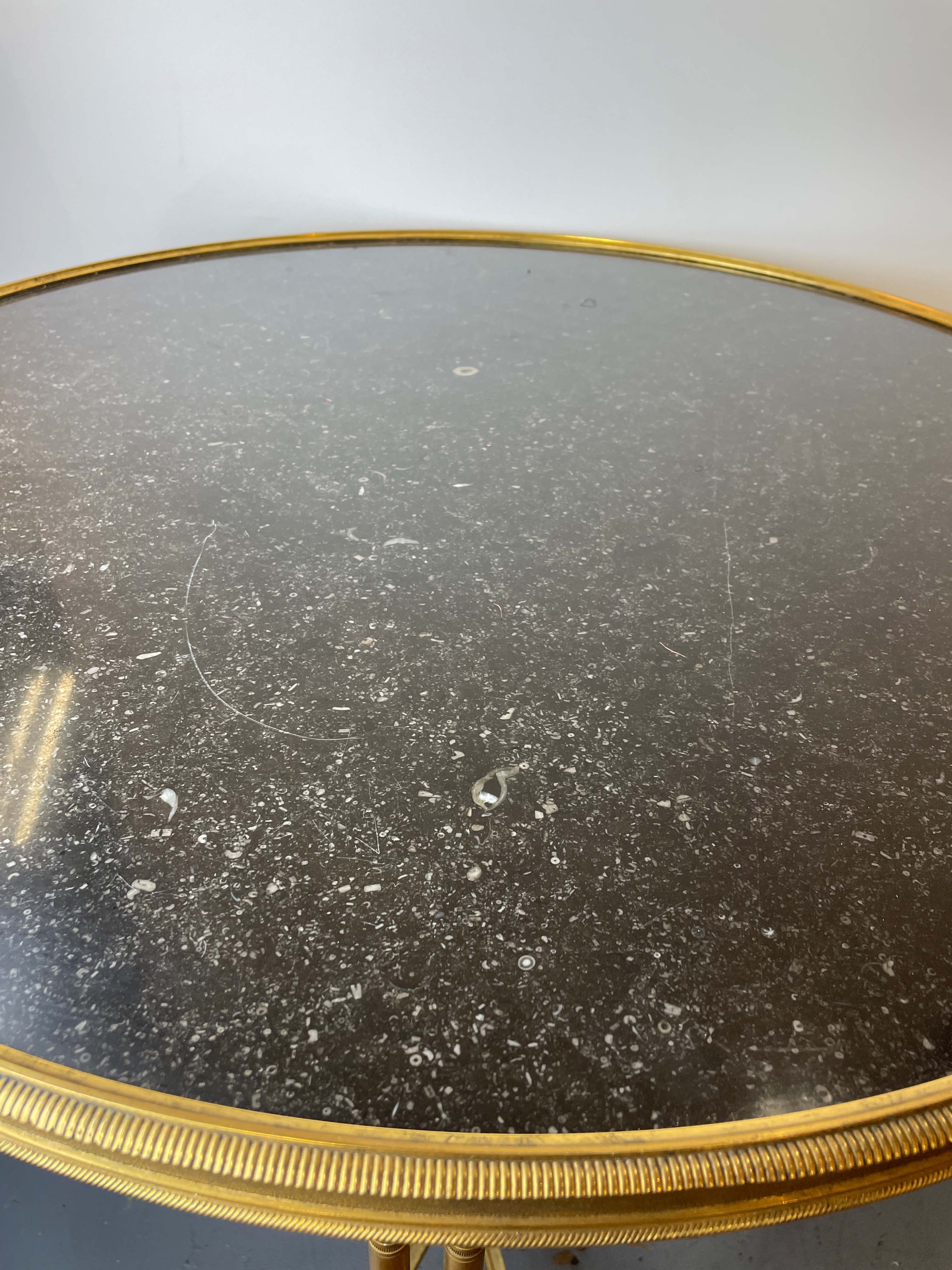 20th C gilt bronze guerdon w/ black marble top round table and hoofed feet. Provenance: Van Cliburn Estate.