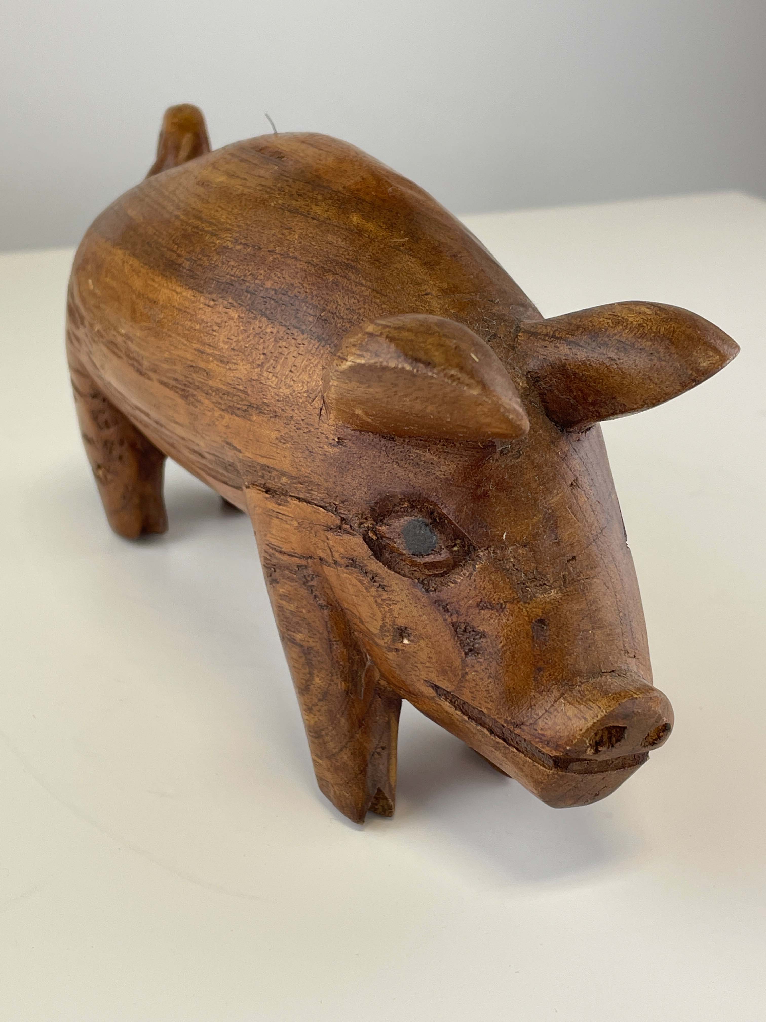 Carved wooden folk art pig.