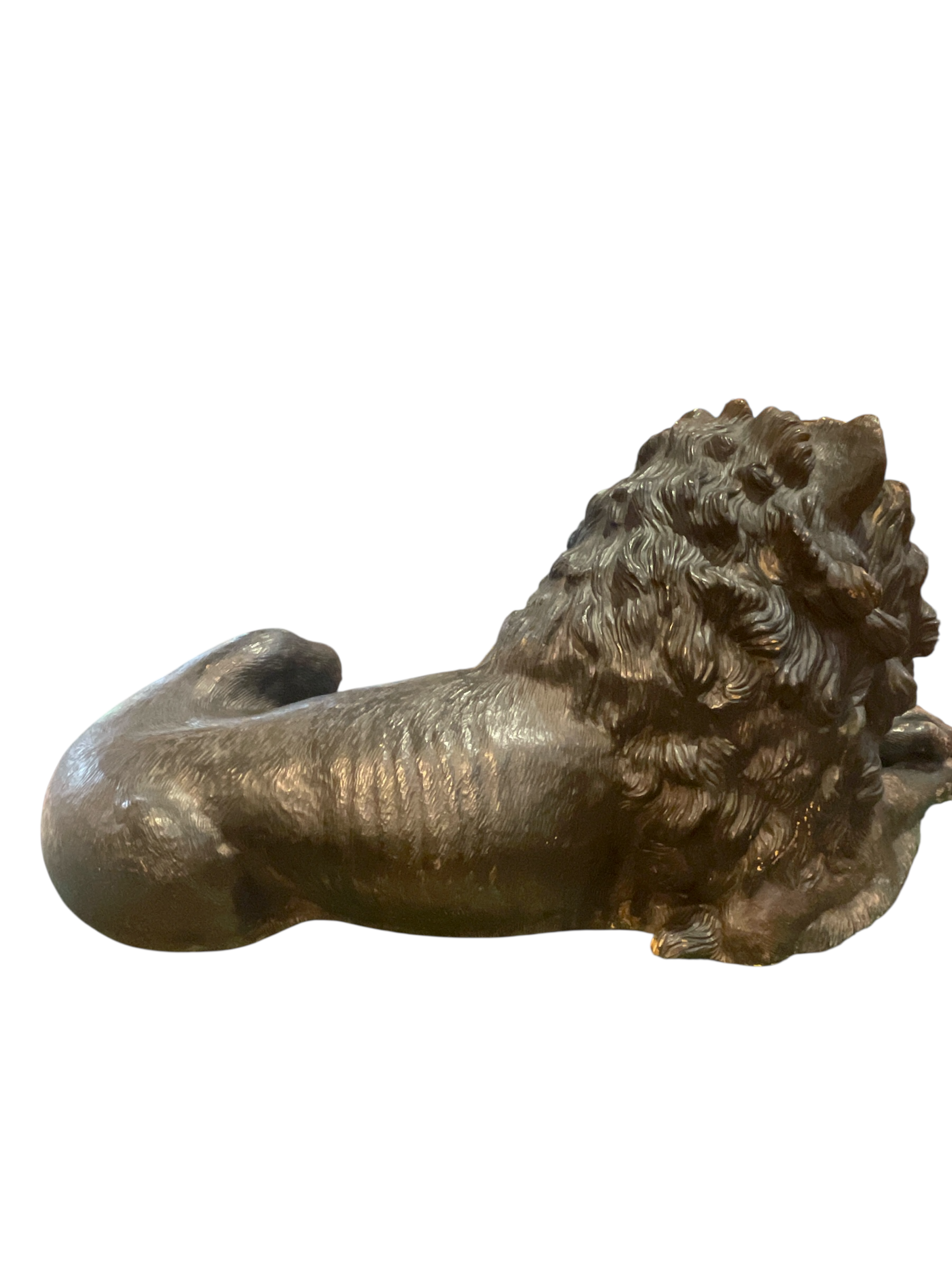 Dimensions: lion: 25" T x 58" L x 23" D/ stand: 19"T x 62"L x 27.25"D