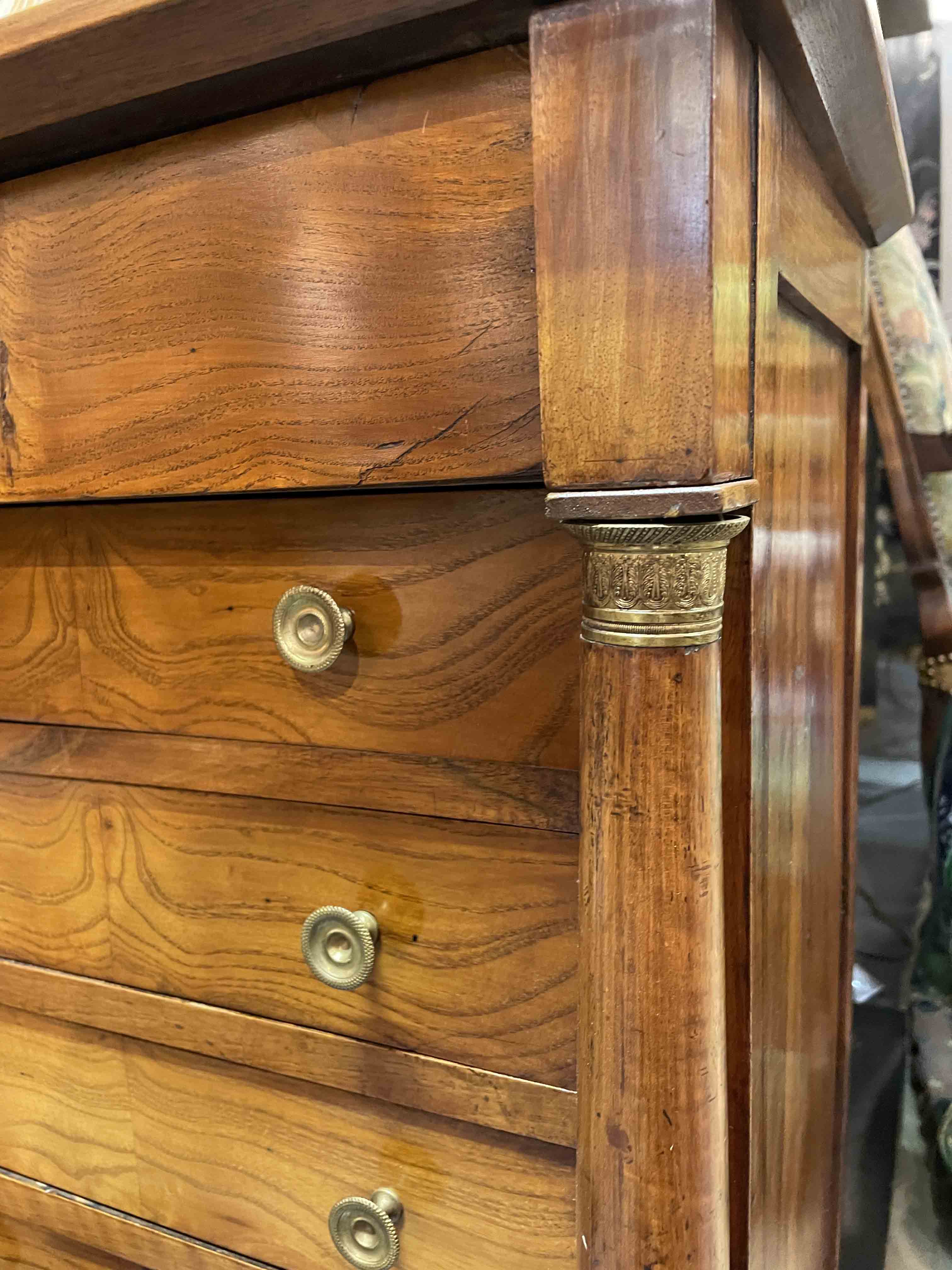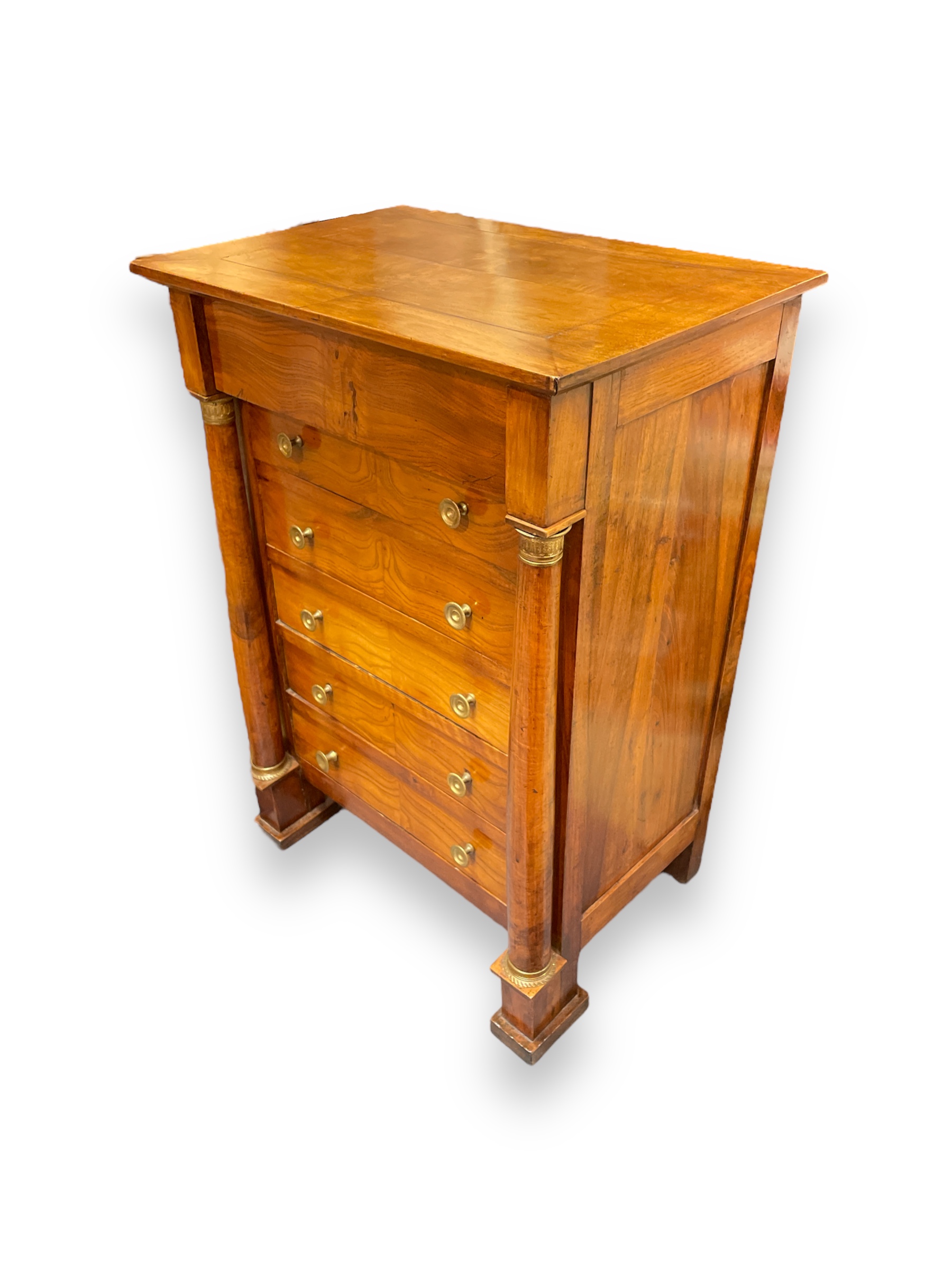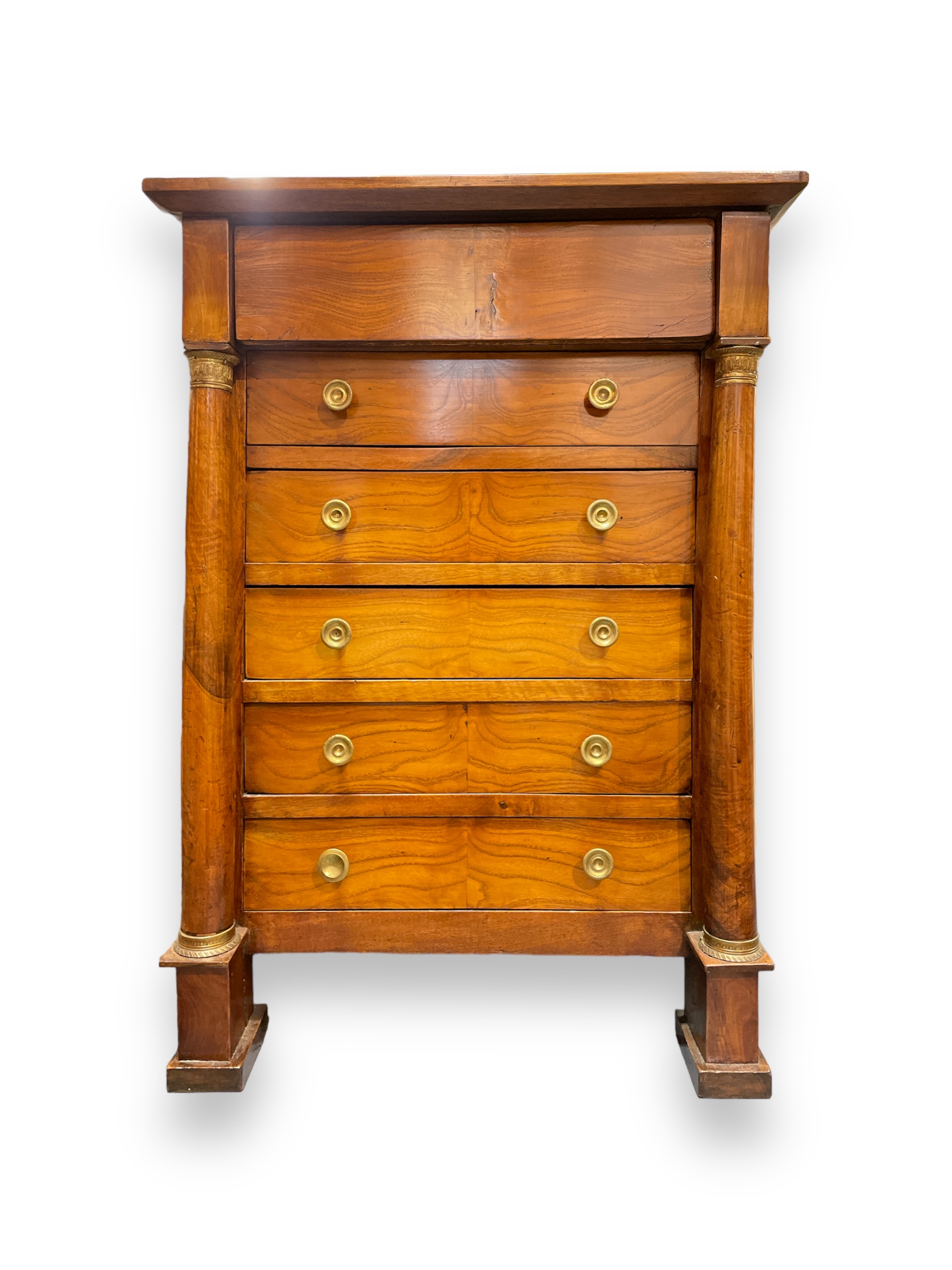 Empire gilt bronze walnut diminutive 6- drawer chest; French c.1810.