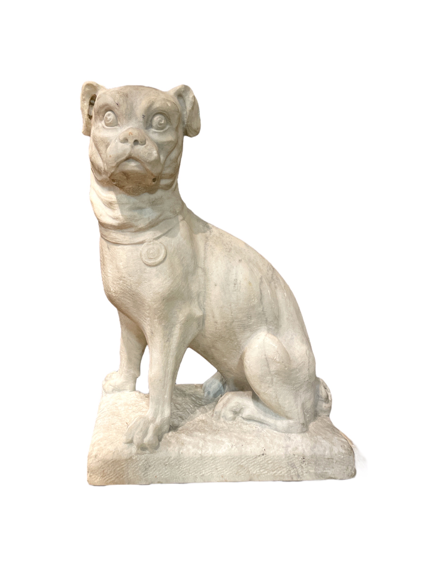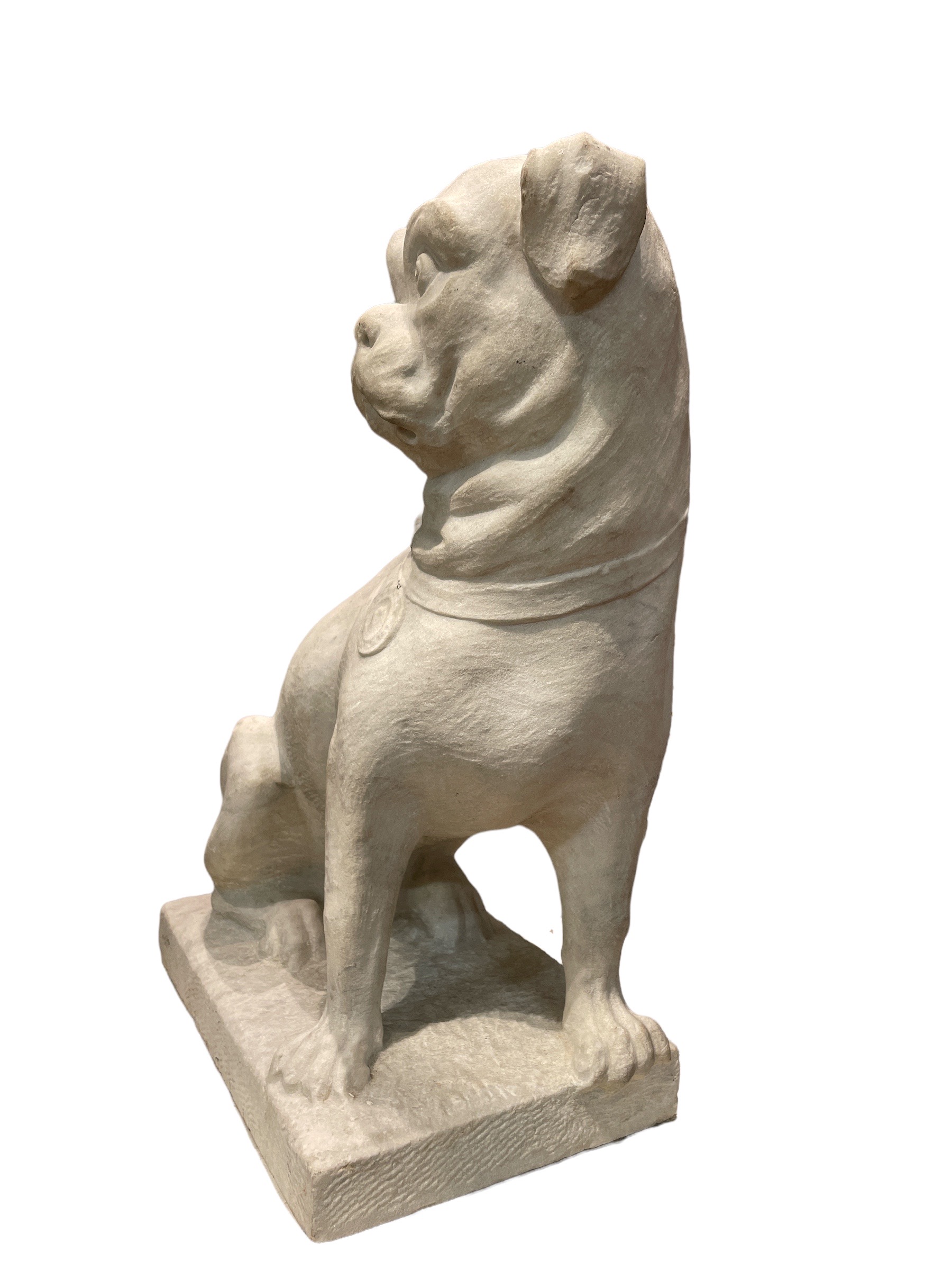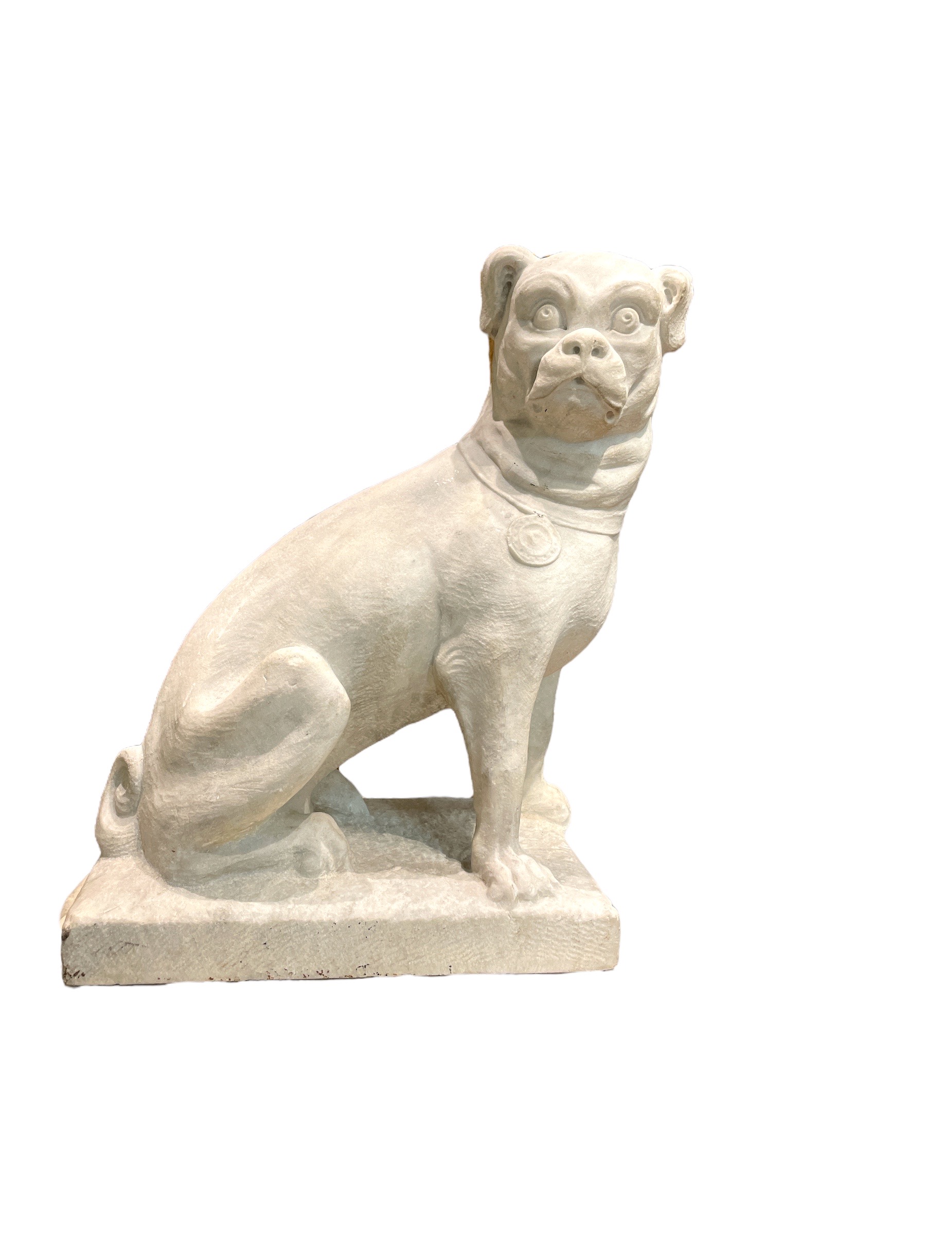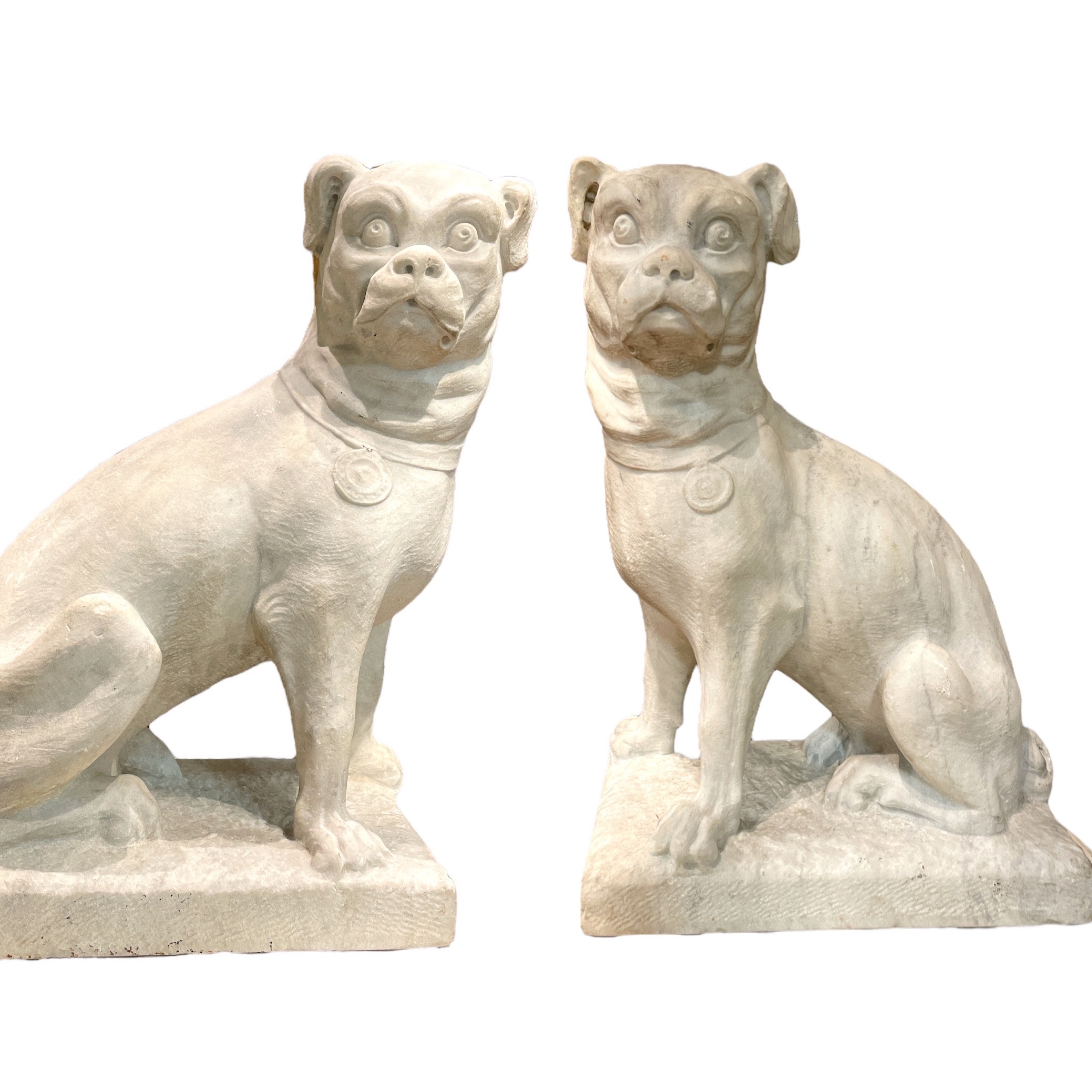 Pair of carved marble French bulldogs.