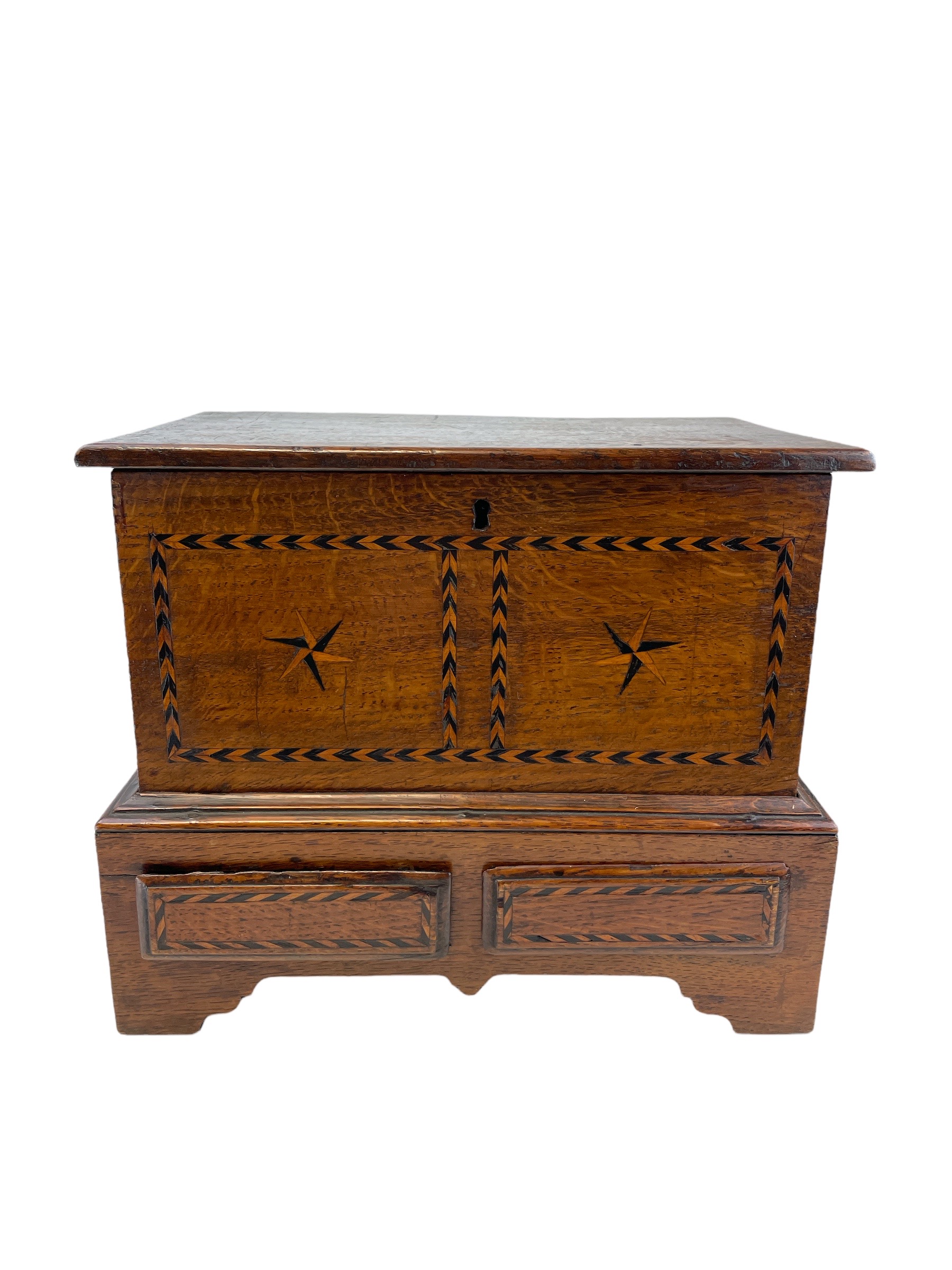 A miniature George III parquetry inlaid oak mule chest, late 18th C.