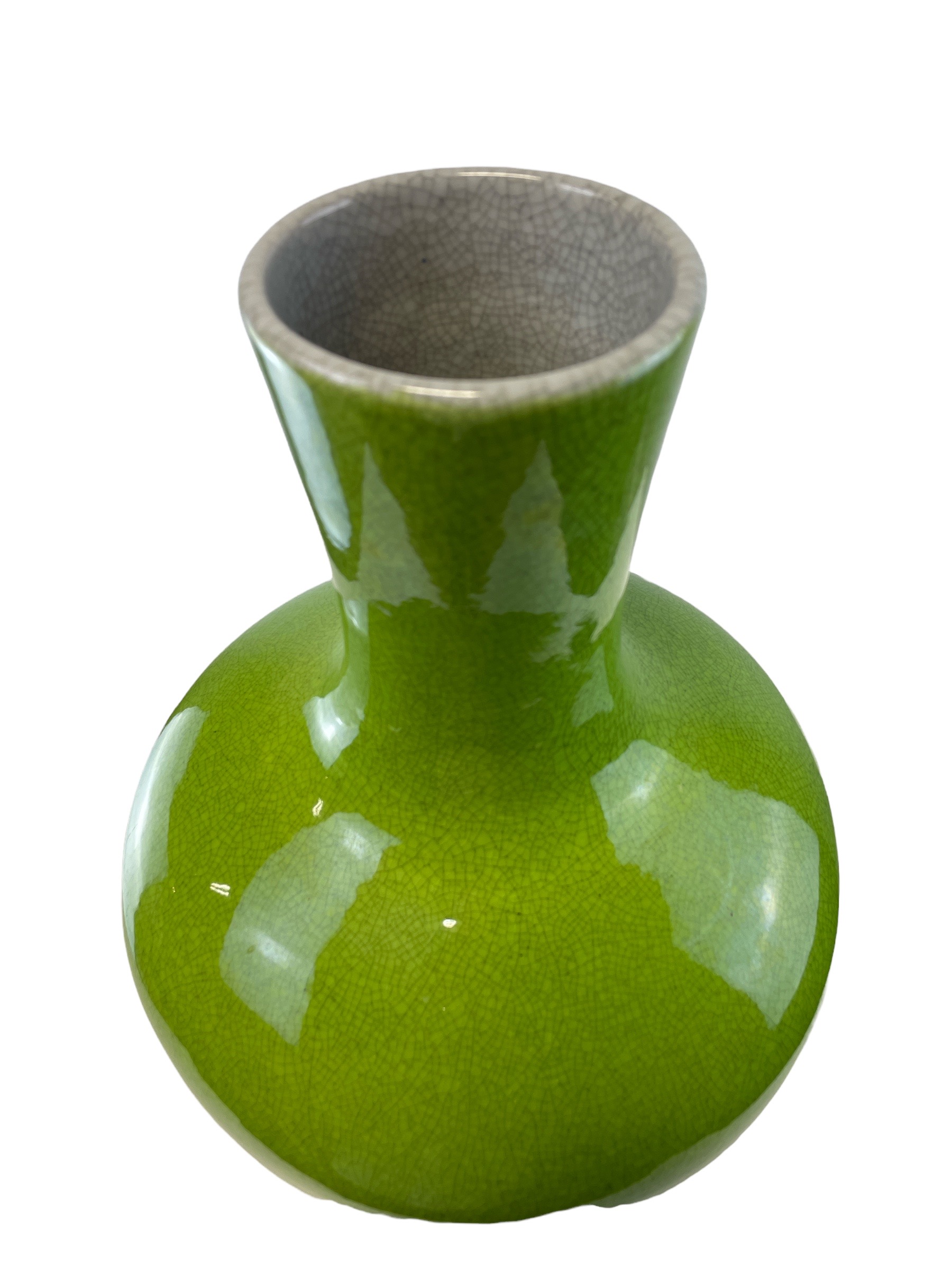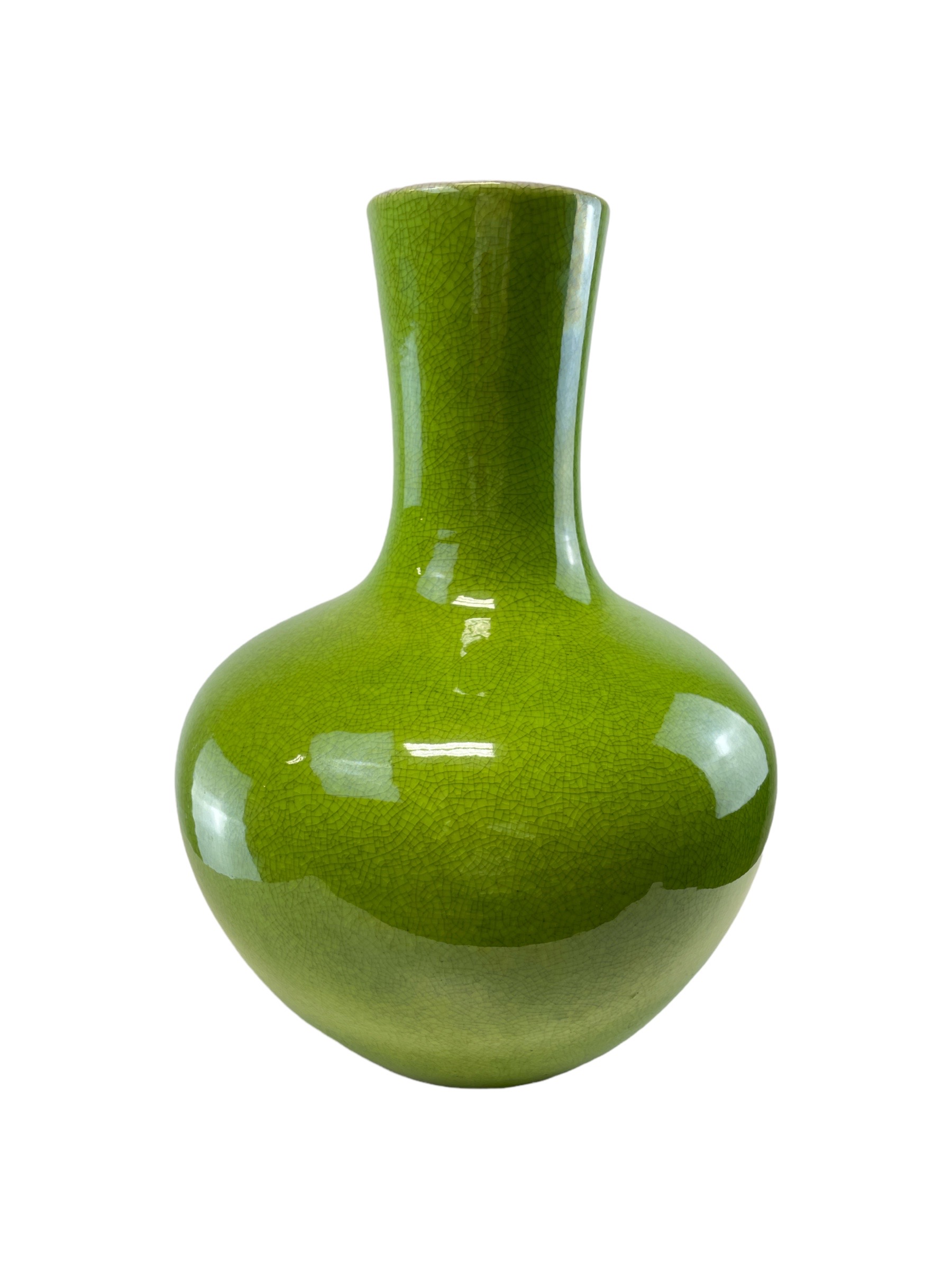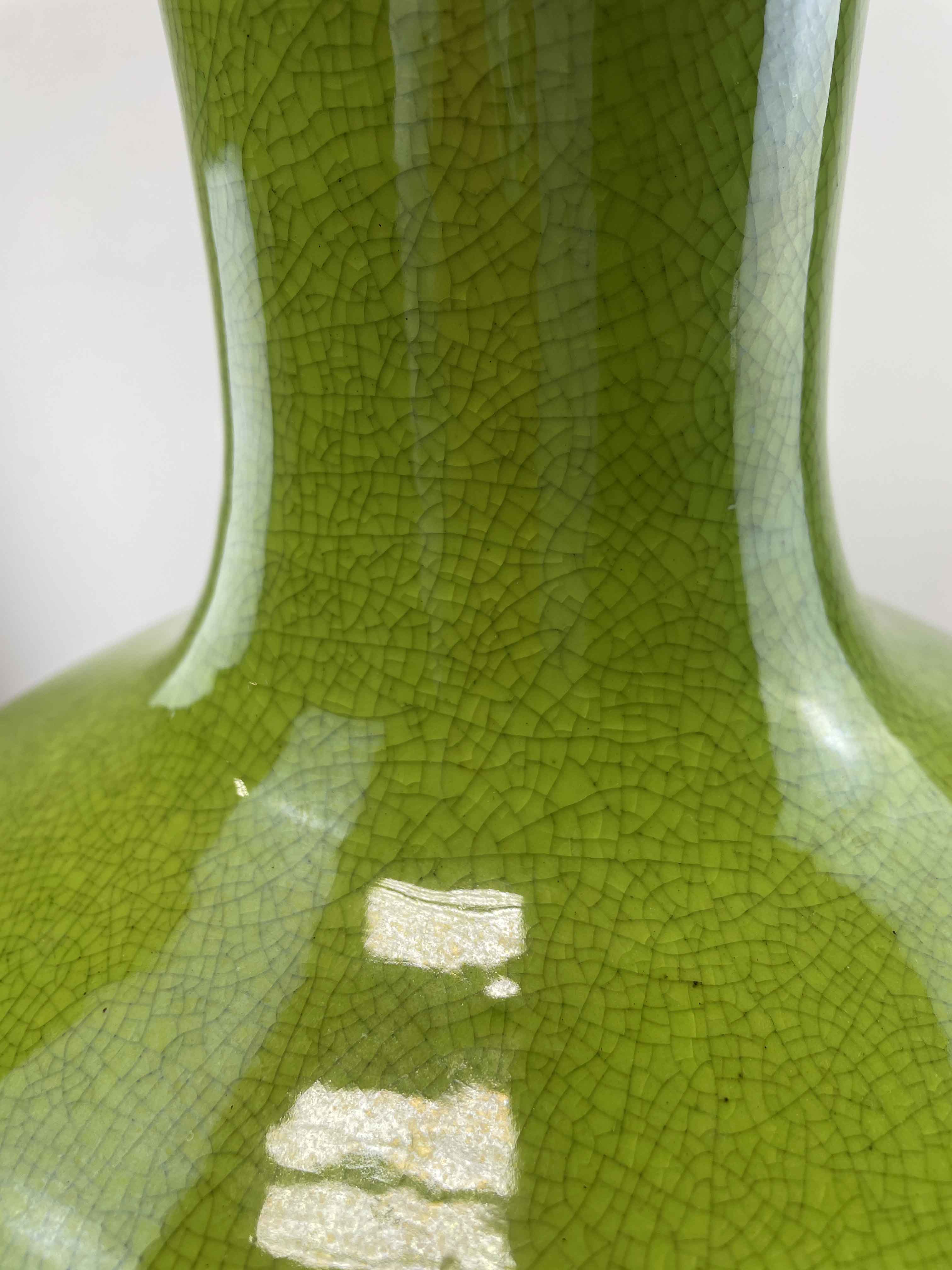 Chinese 20th C apple green crackle glazed- long neck vase.