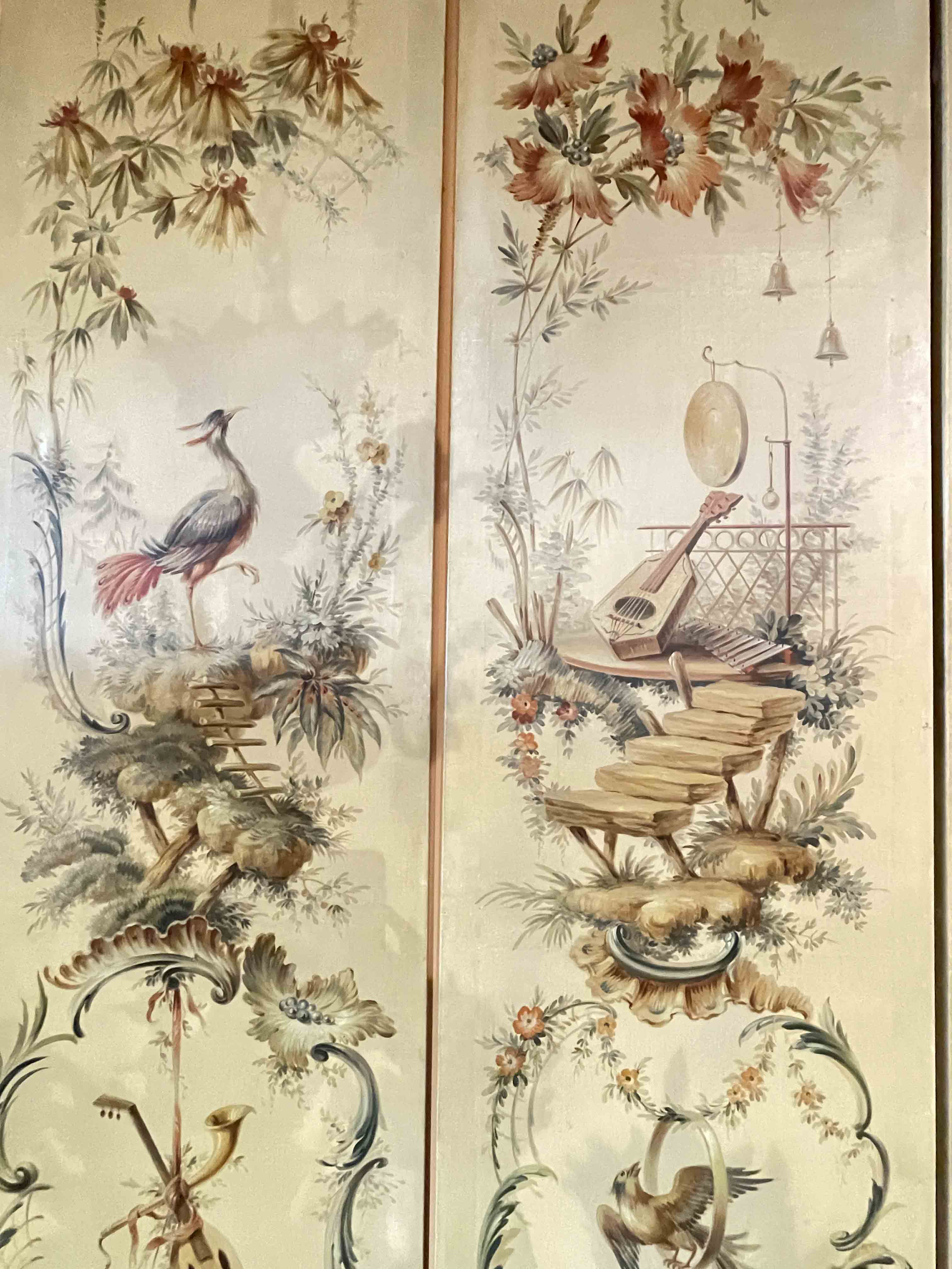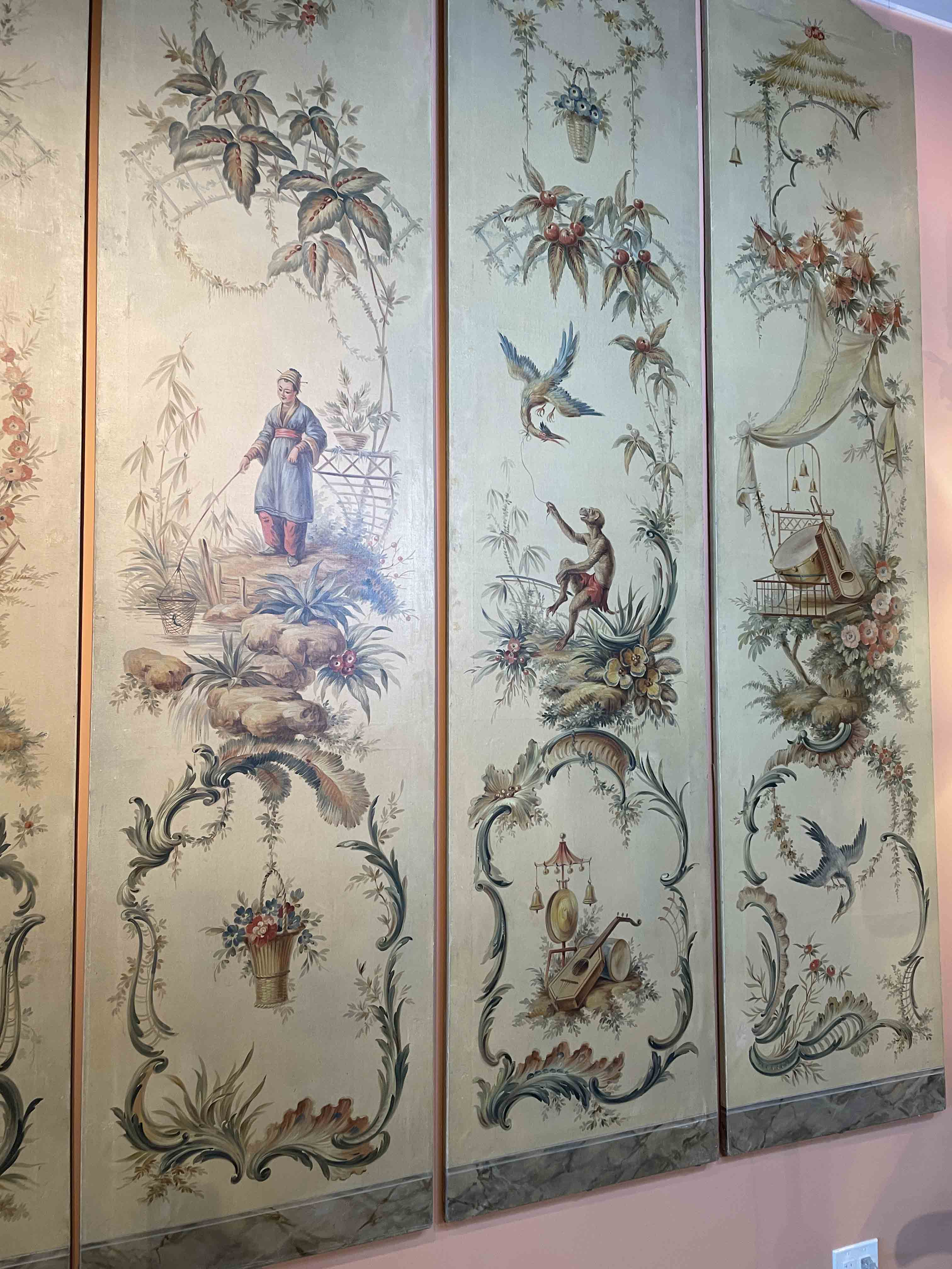6 canvas panels, probably originally wall covering from a Continental room, decorated in the Chinoiserie style.