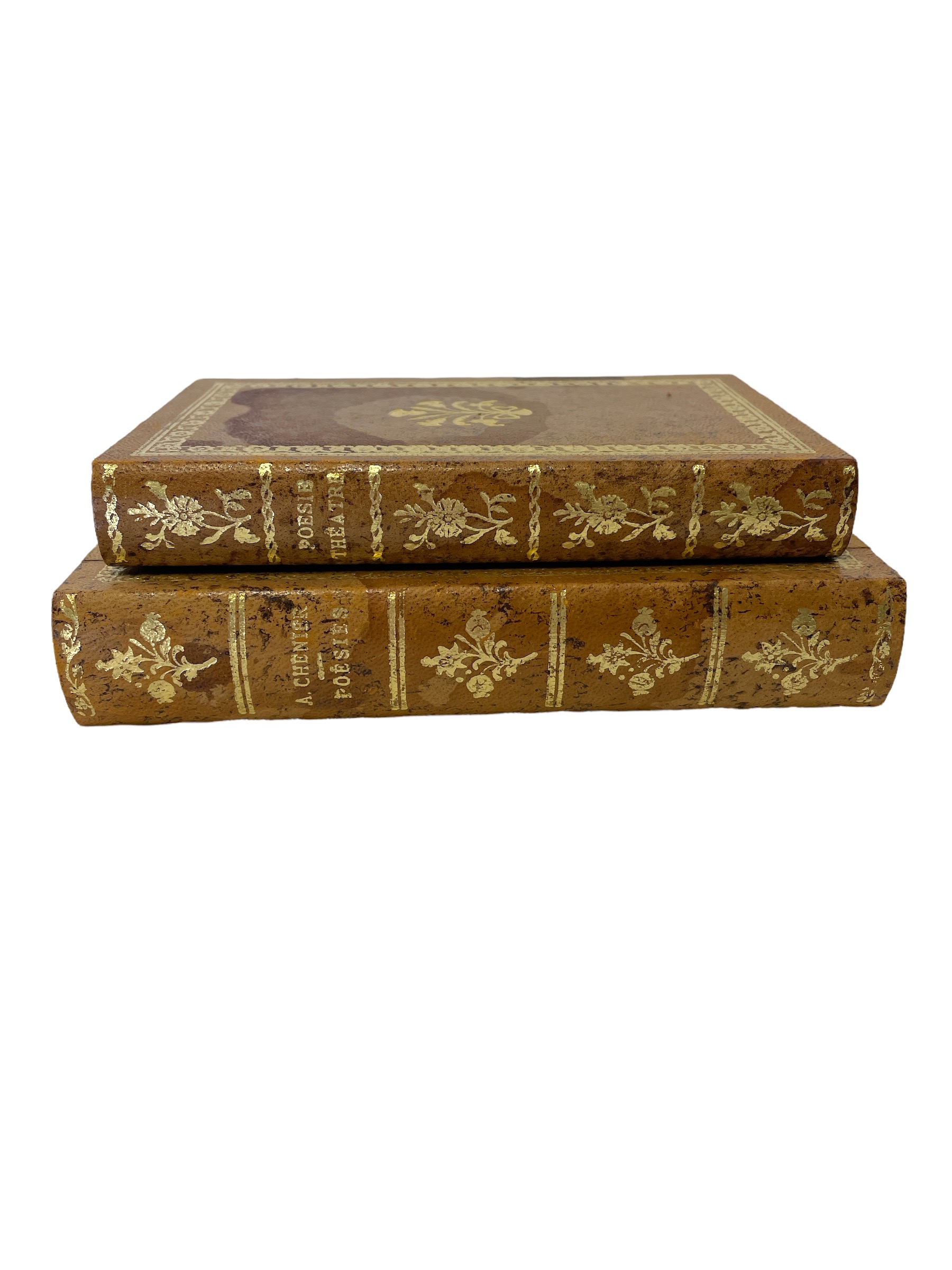 Early 20th C French leather book form covered stationery box.