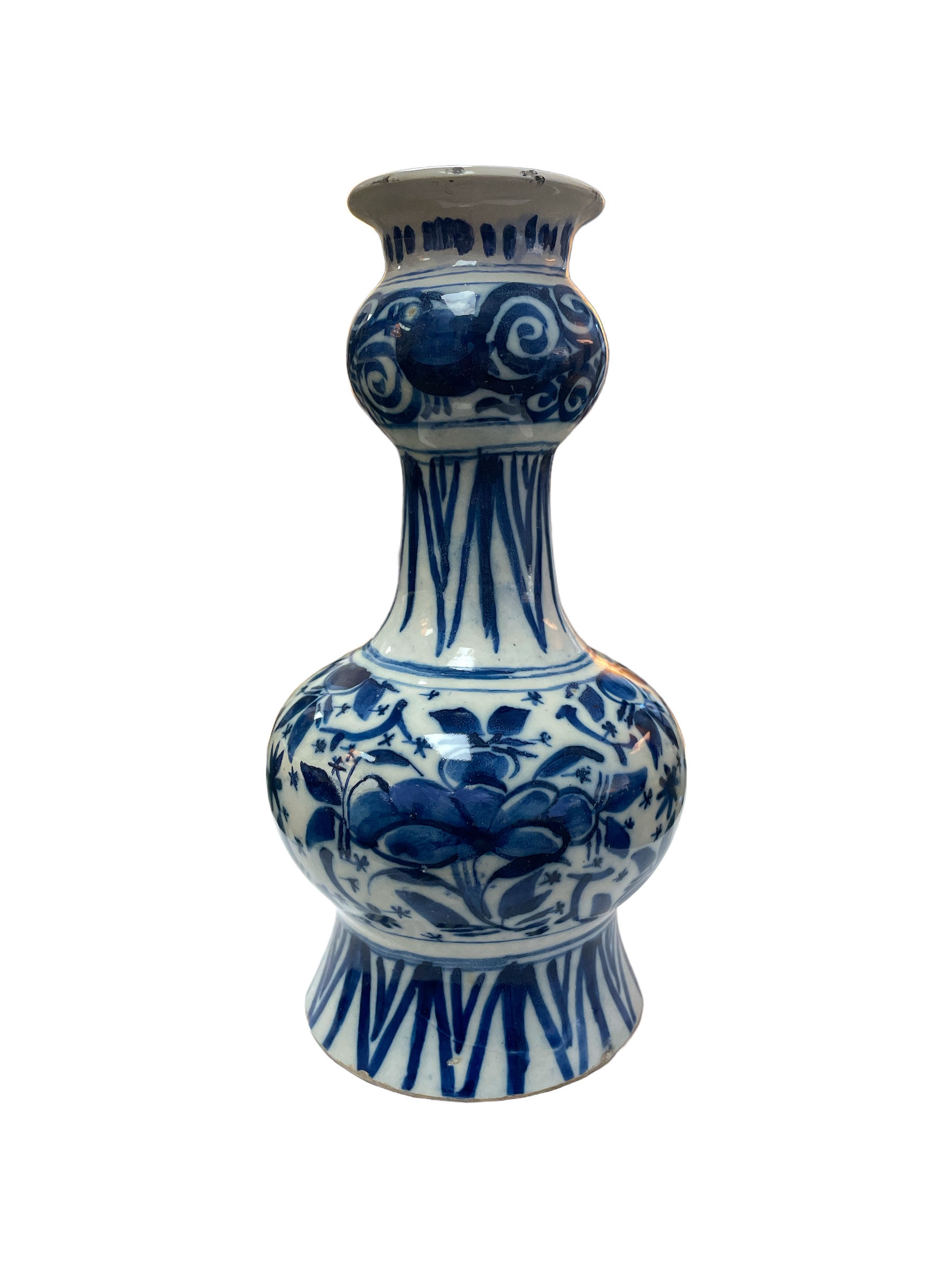 18th C Dutch Delft blue & white tulip mouth vase.