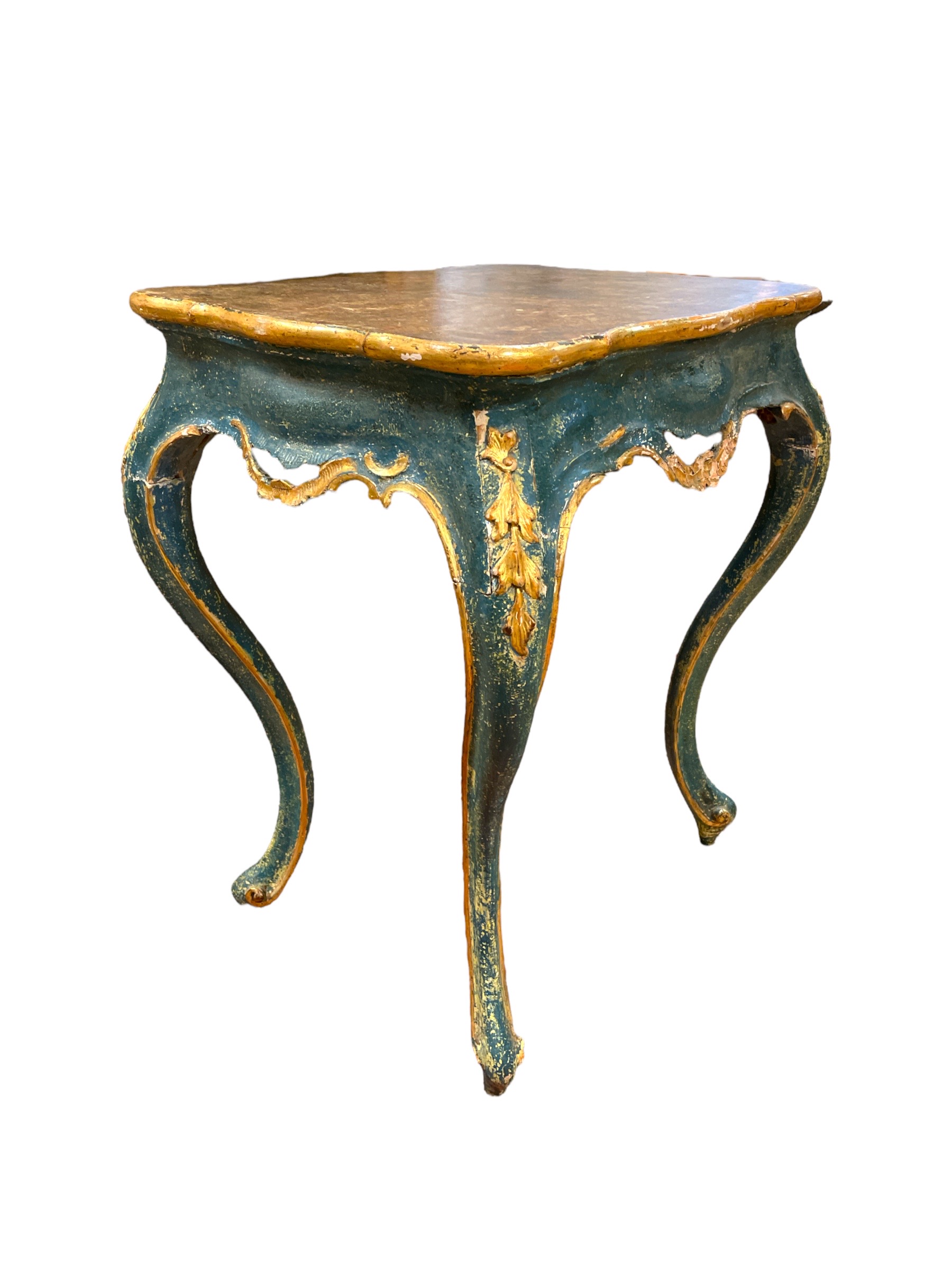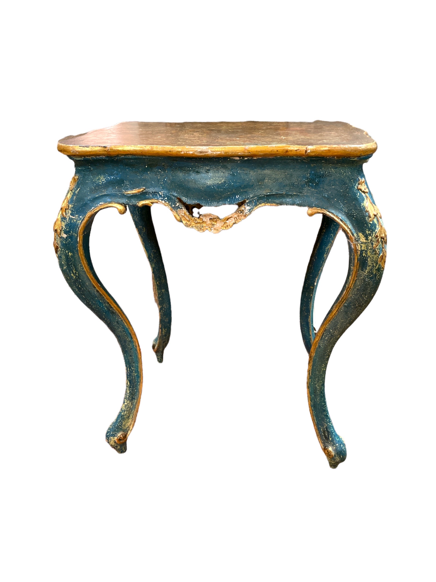 18th C Venetian painted and parcel gilt occasional table, predominately blue.