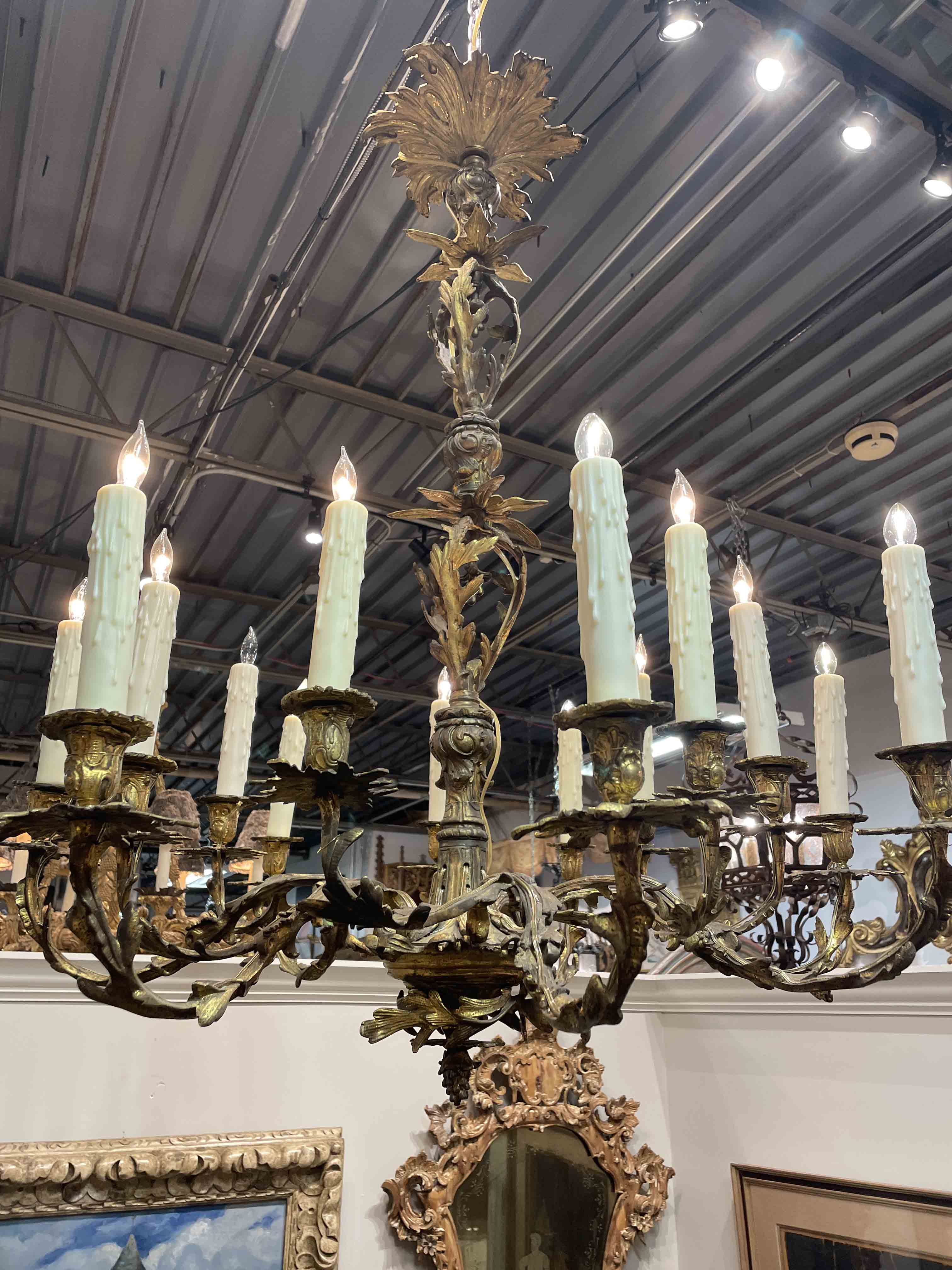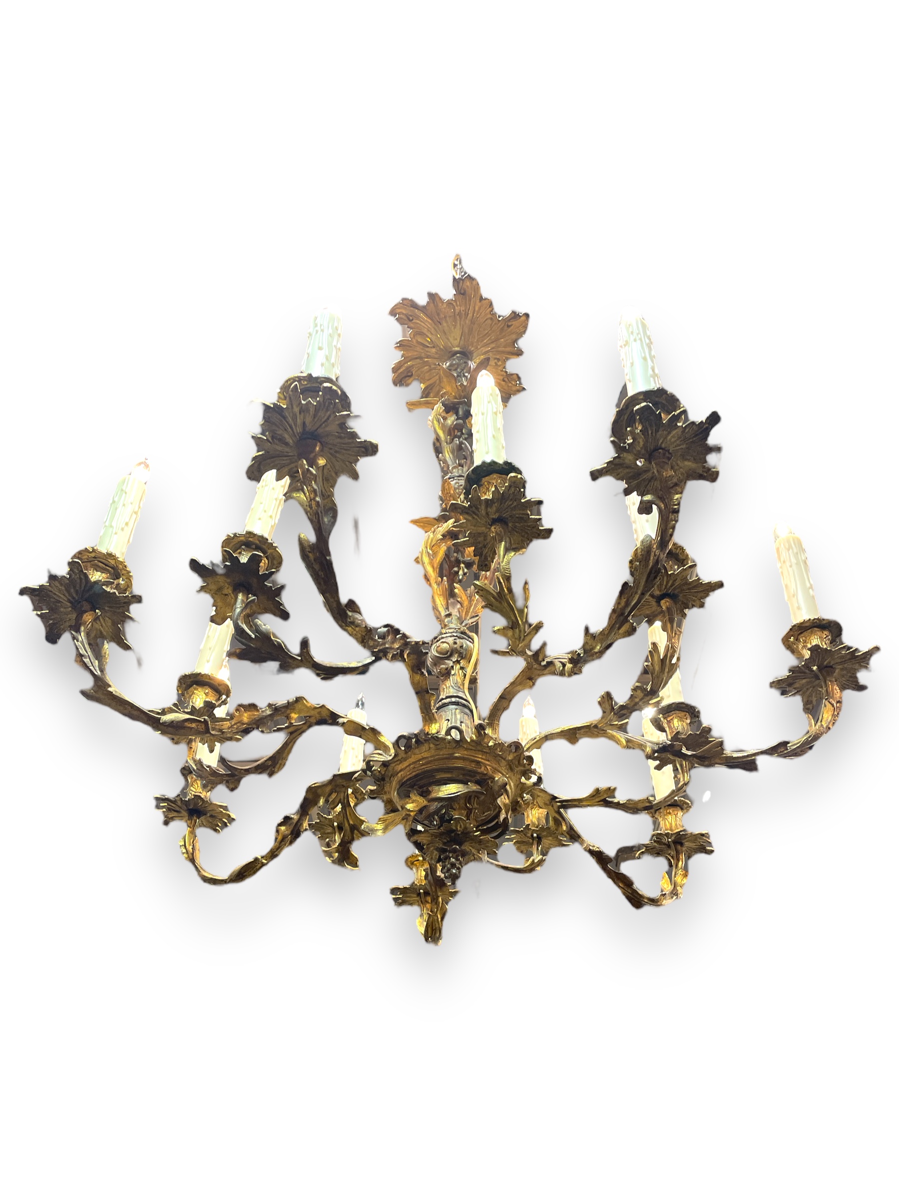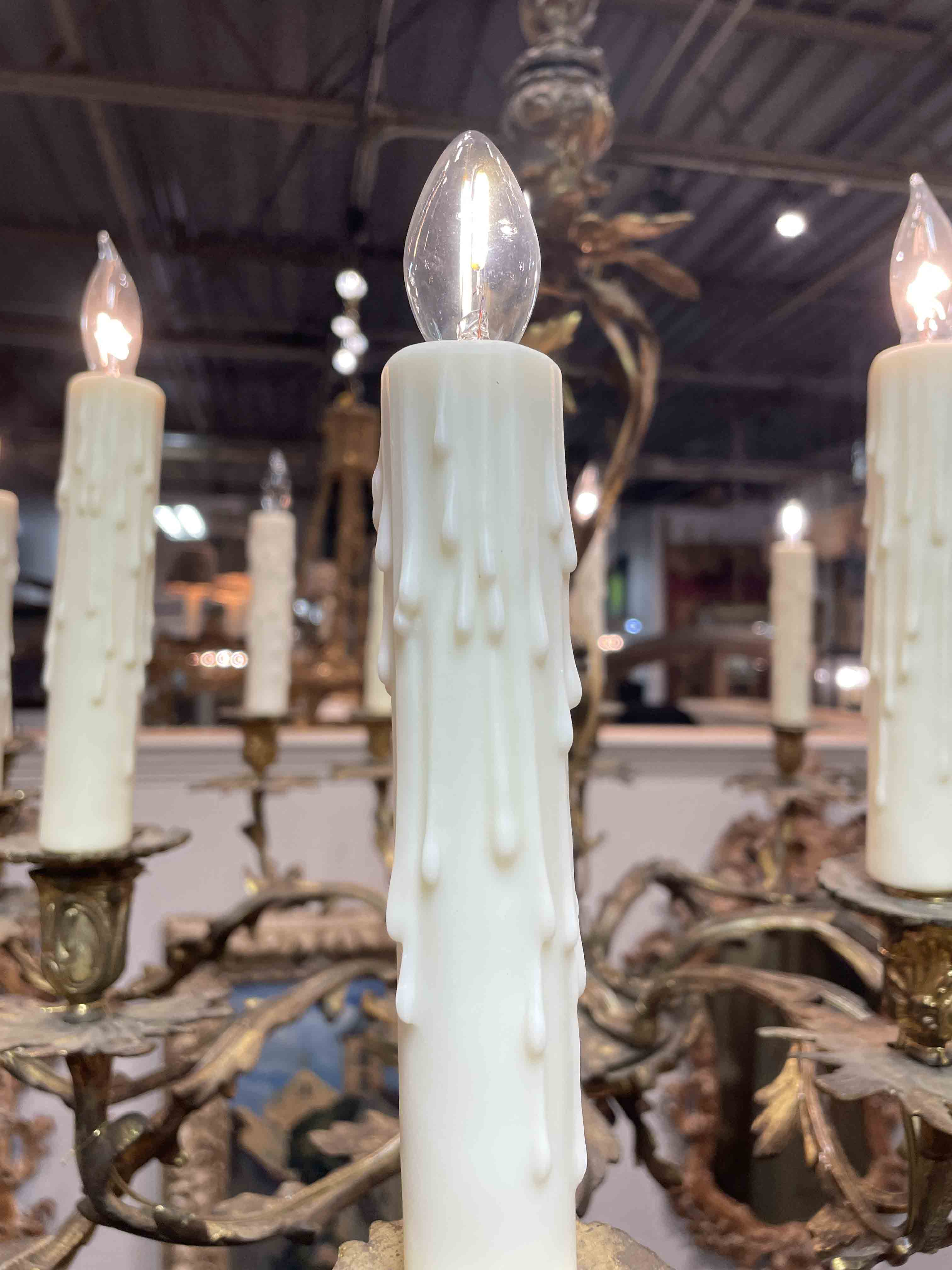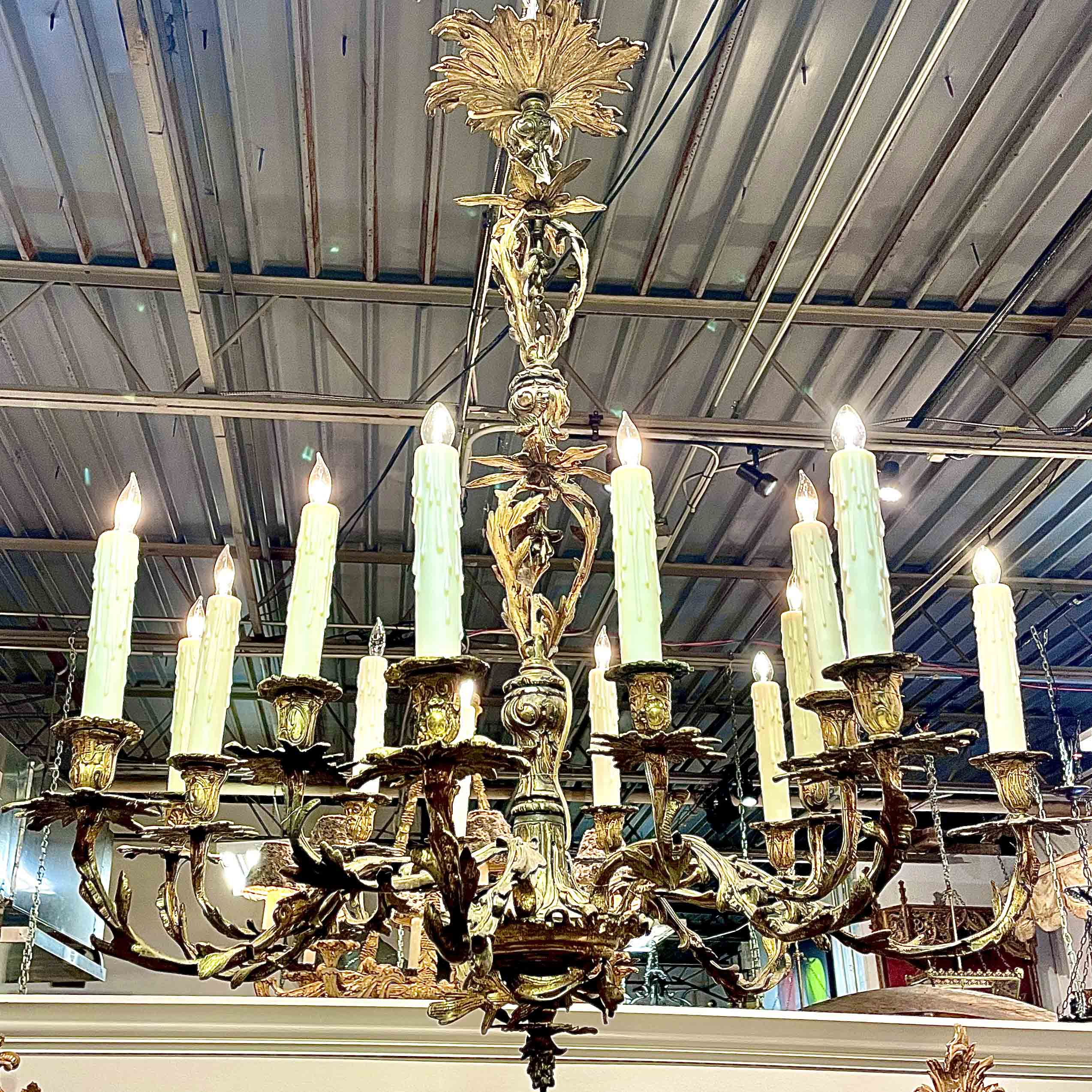 French Louis XVI-style 14 light gilt bronze chandelier.