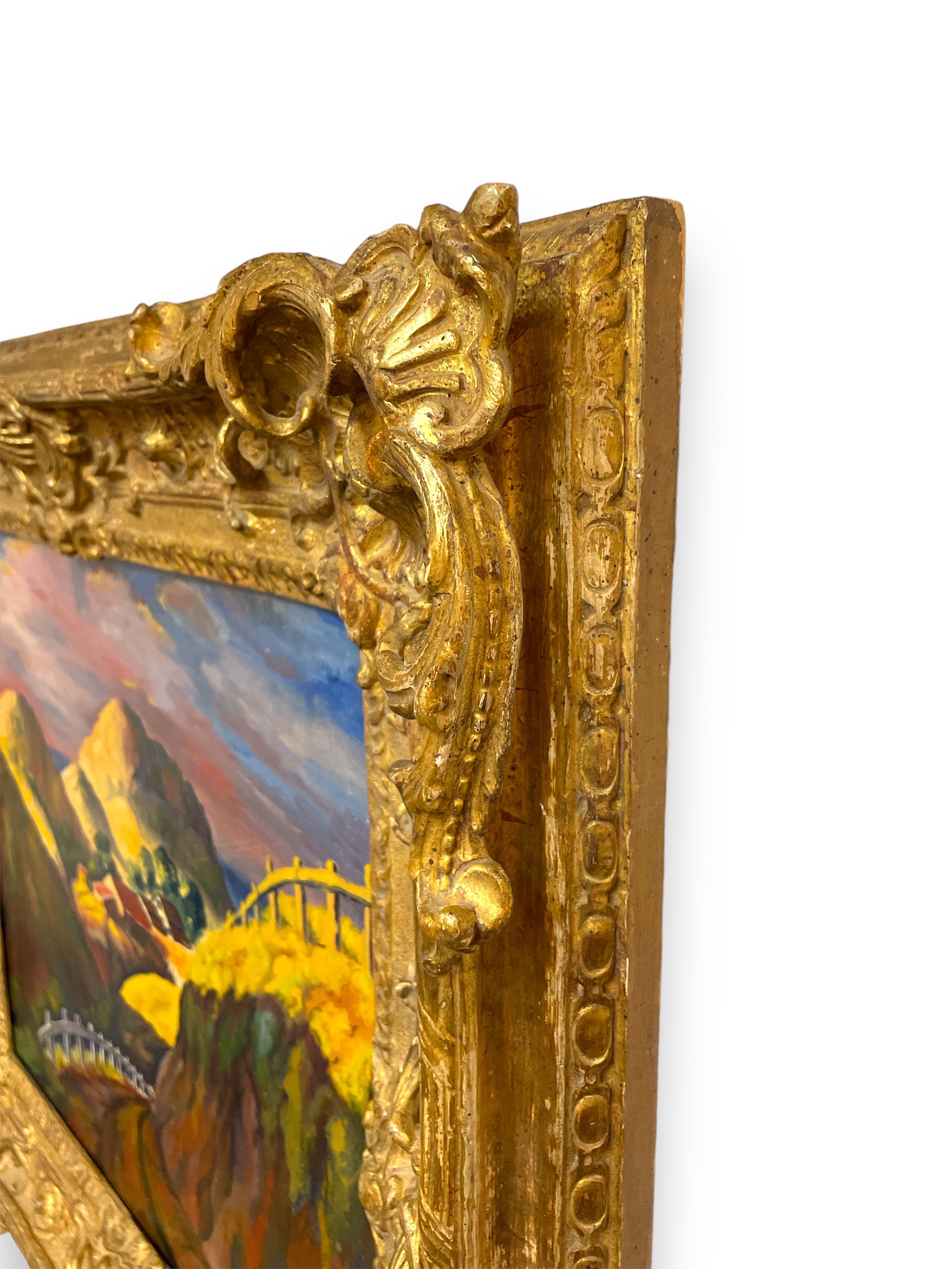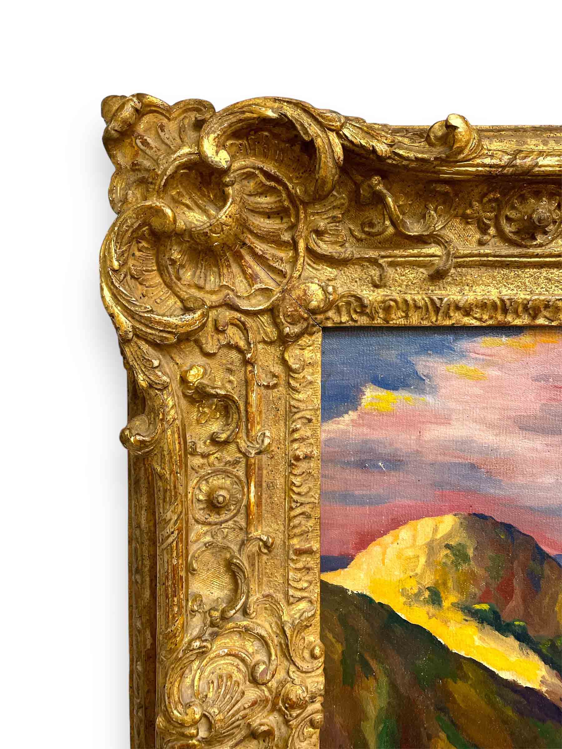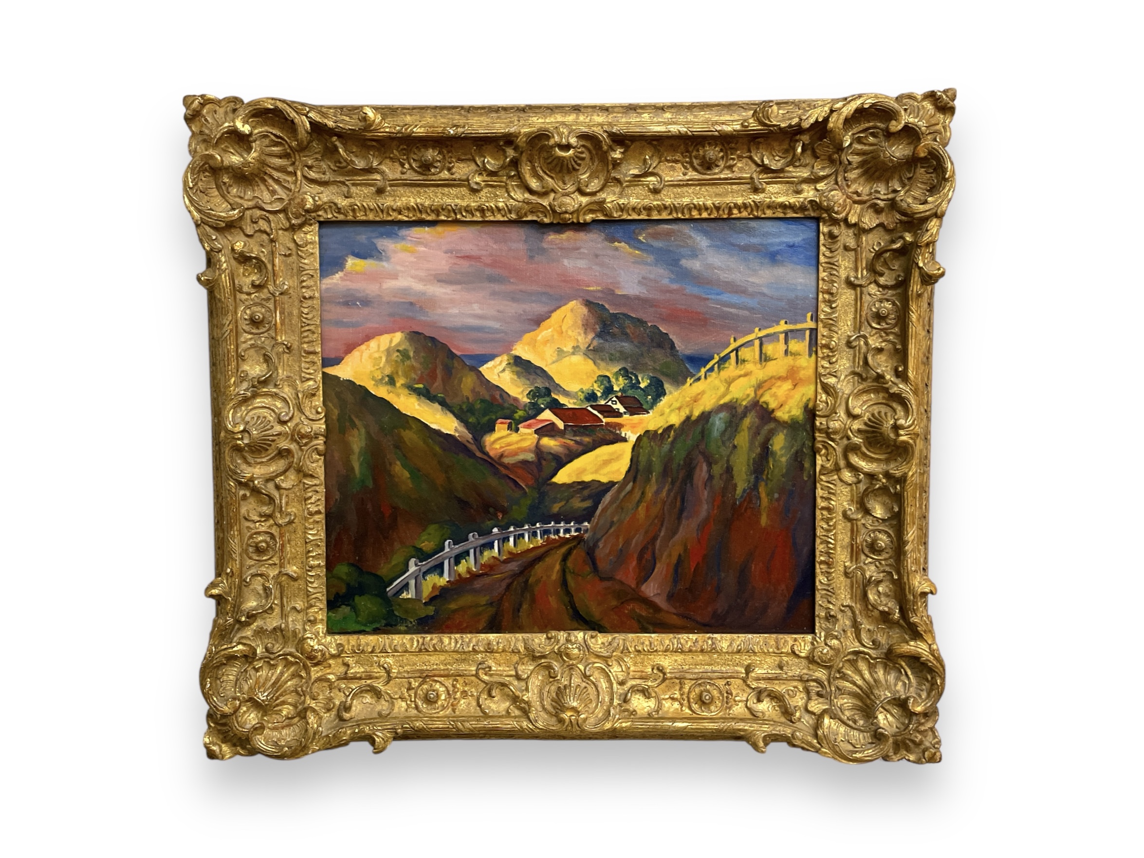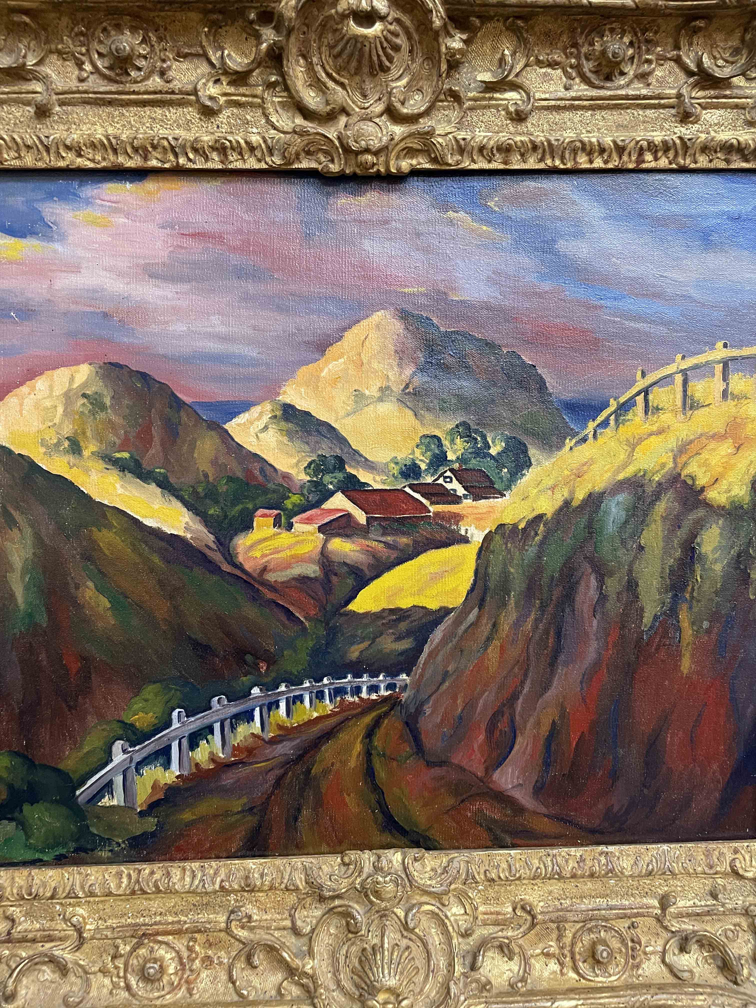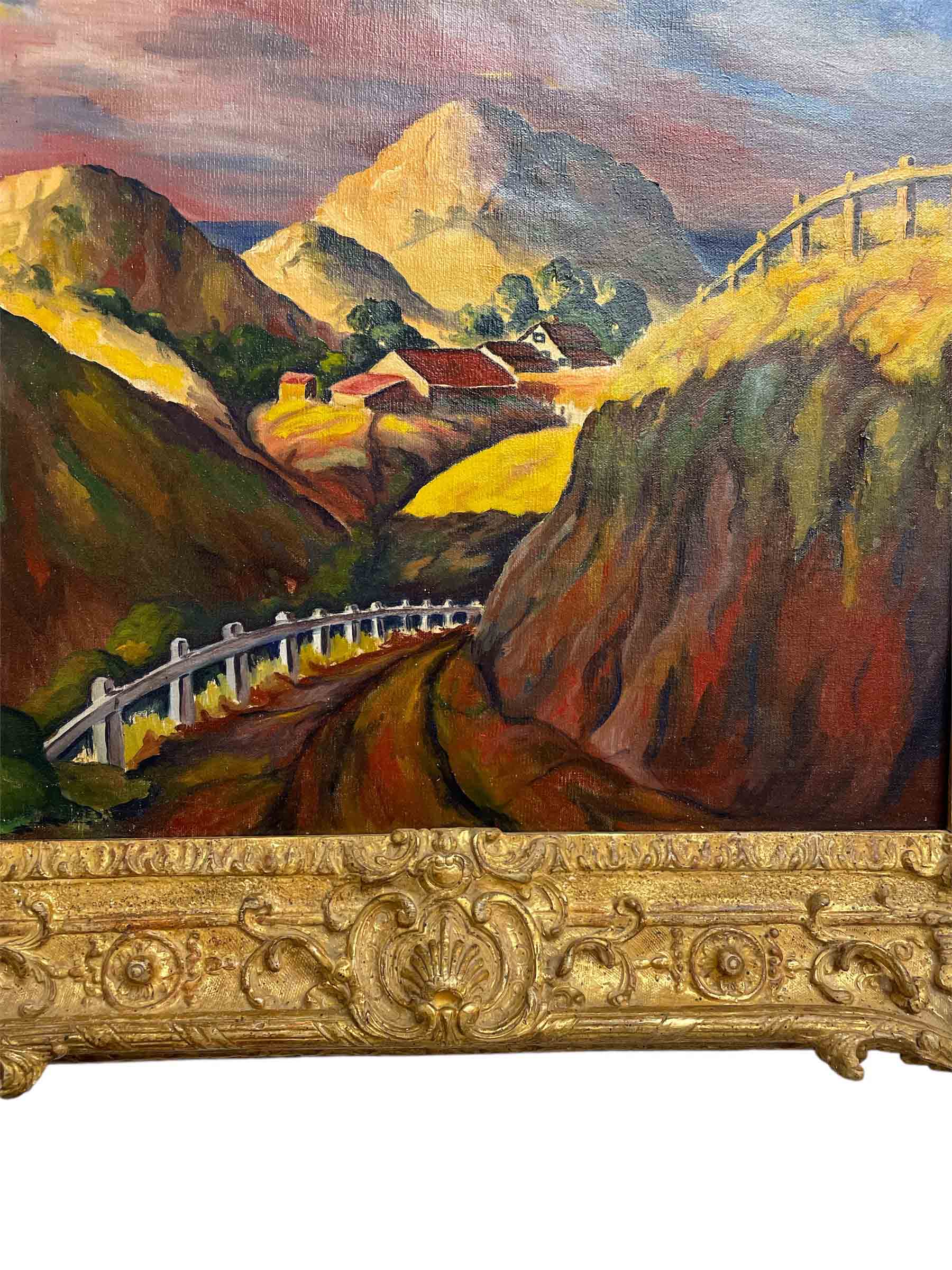 Oil on canvas painting by Elmer Stanhope (American 1907-1956) entitled "Bend in the Road".