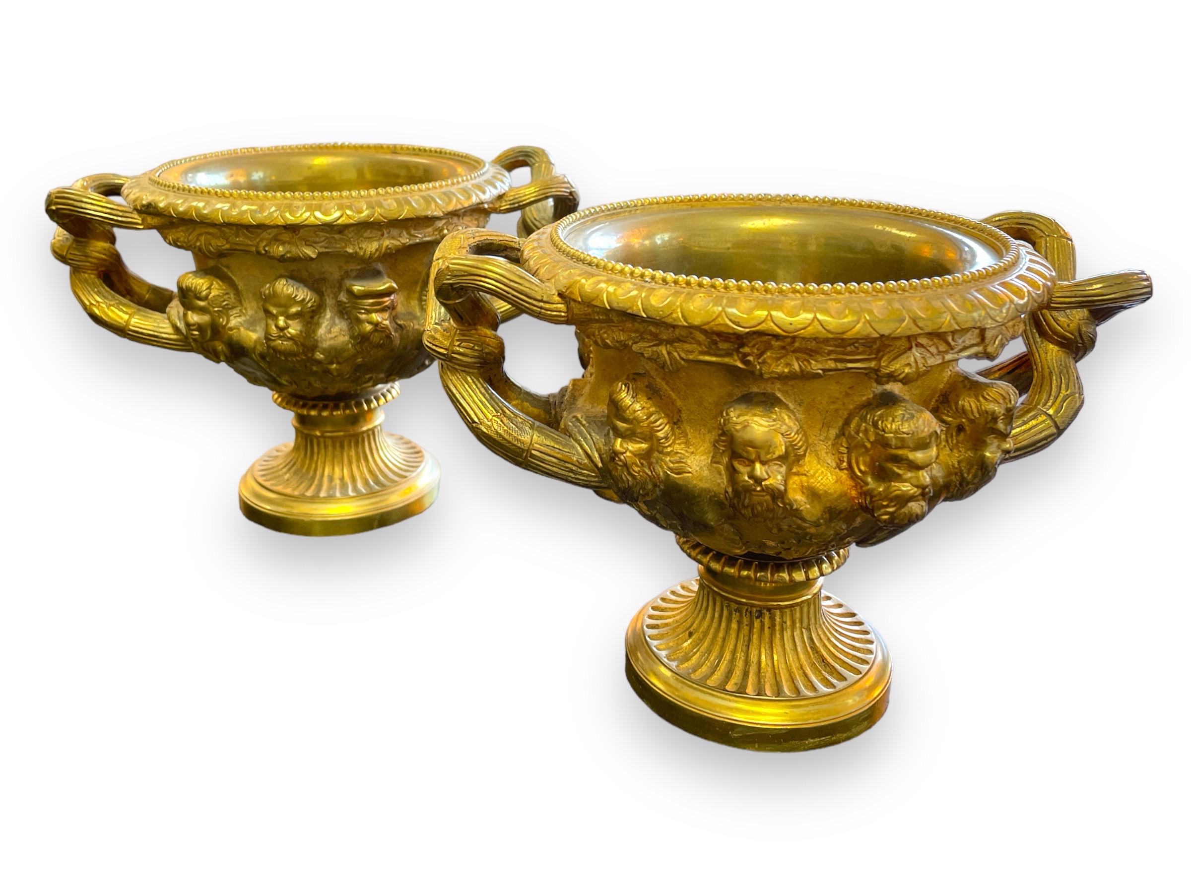 Pair of Continental gilt bronze models of the Warwick vase.
