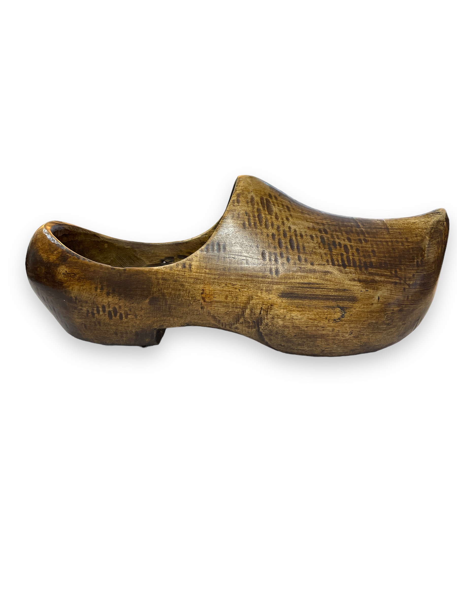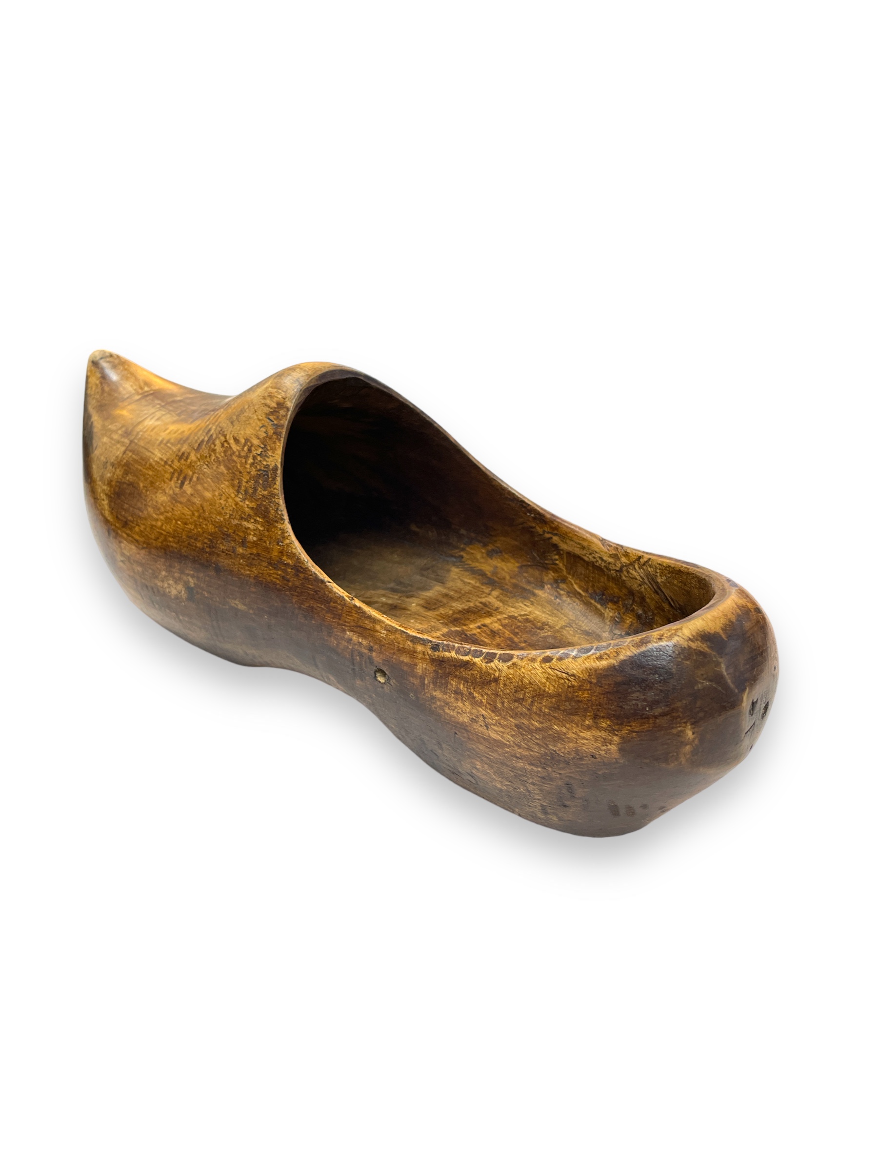 19th C carved wooden Dutch single clog shoe.