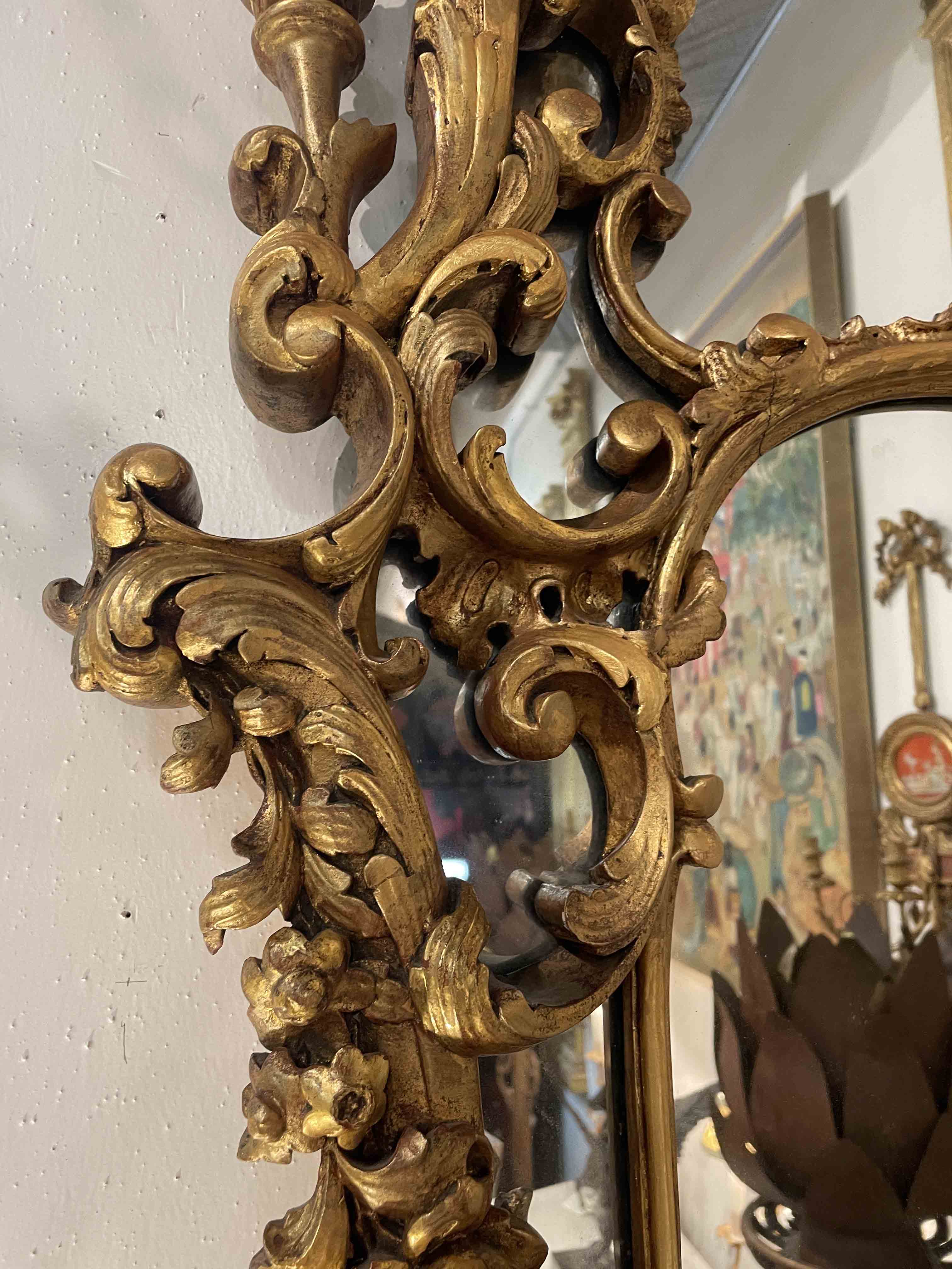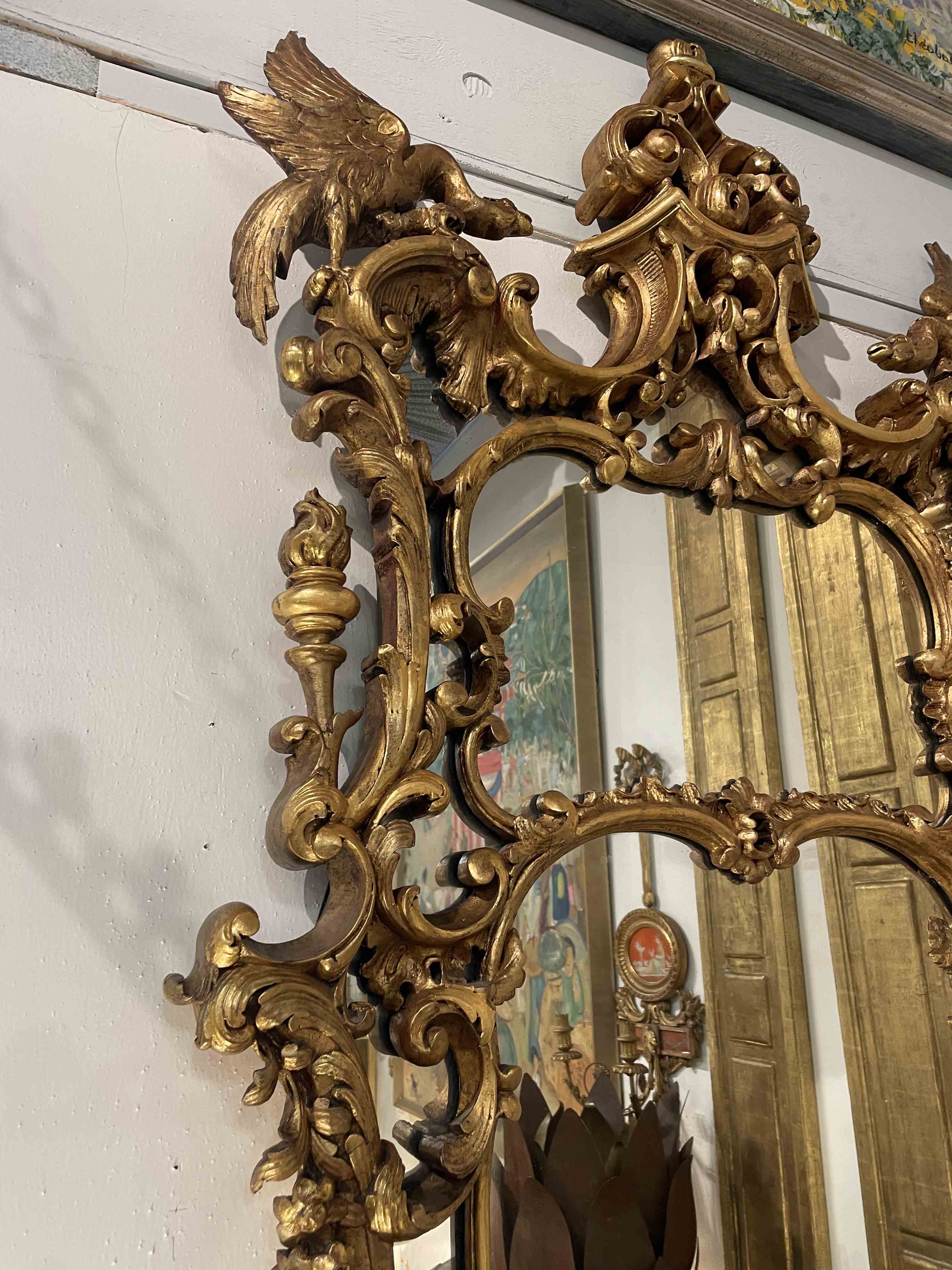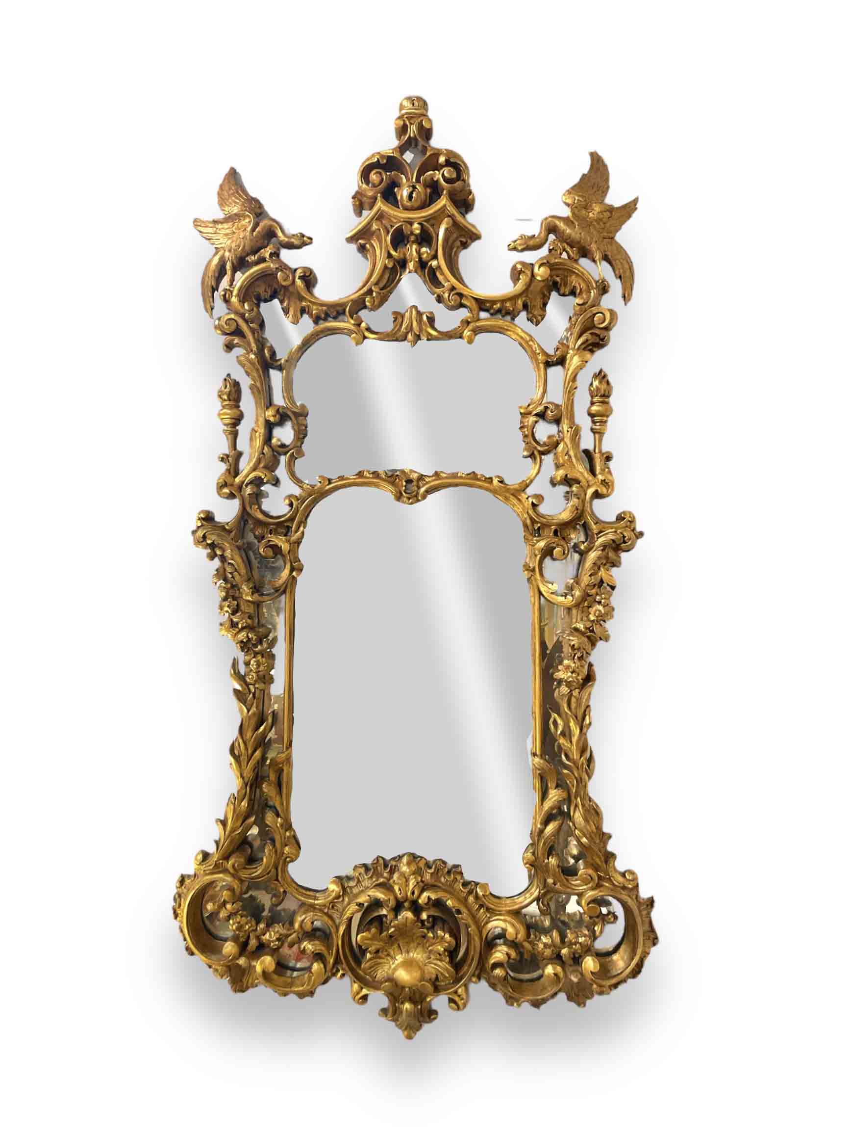 English Geo.III-style Chinese Chippendale giltwood mirror.