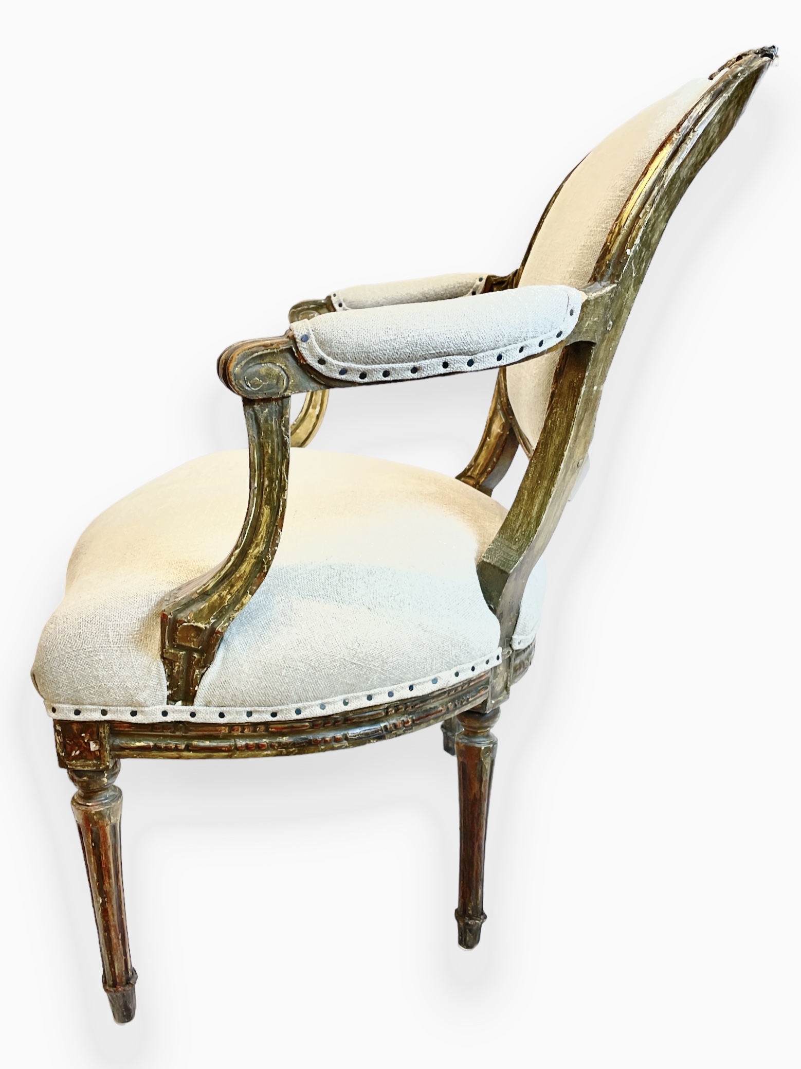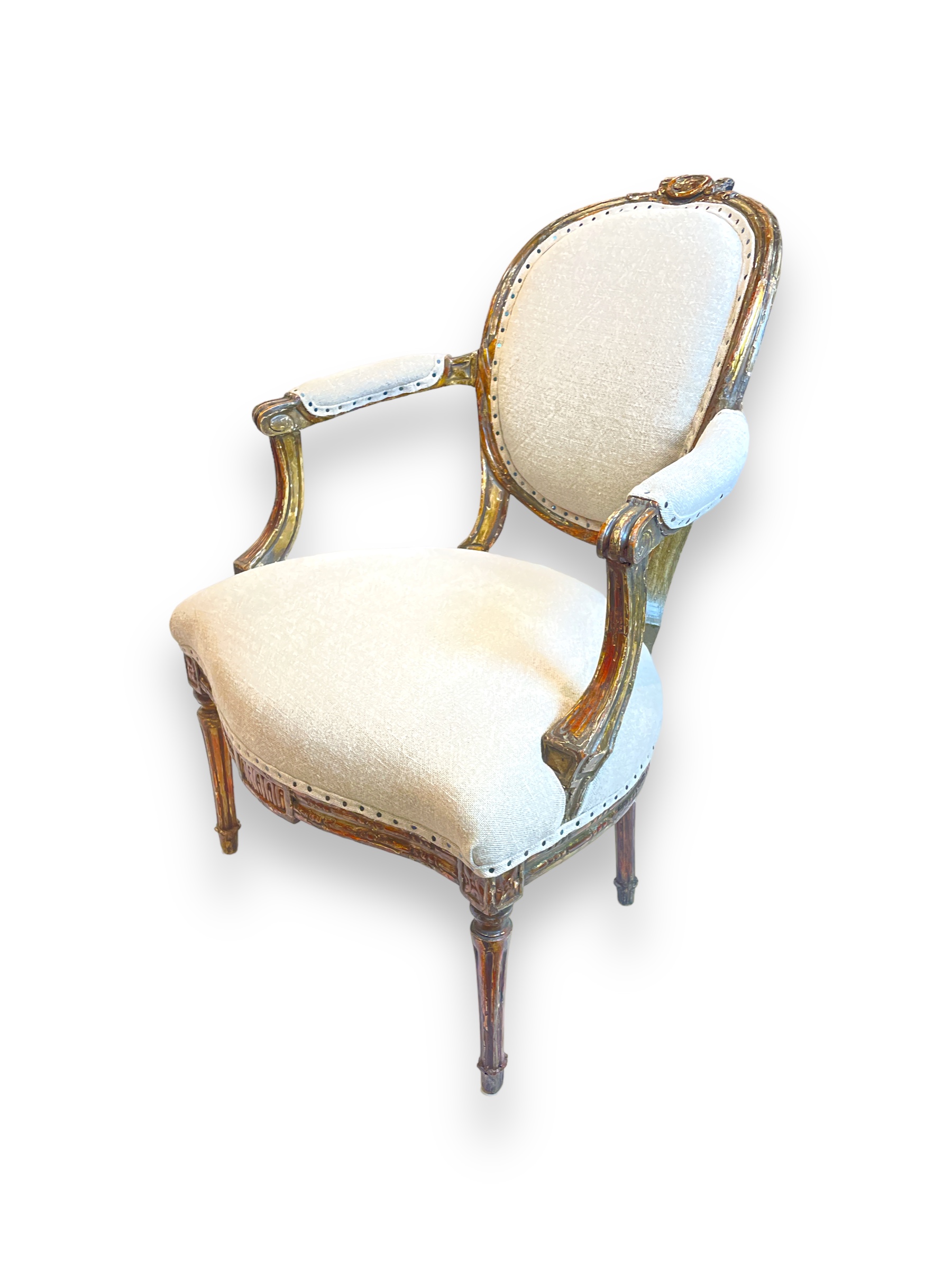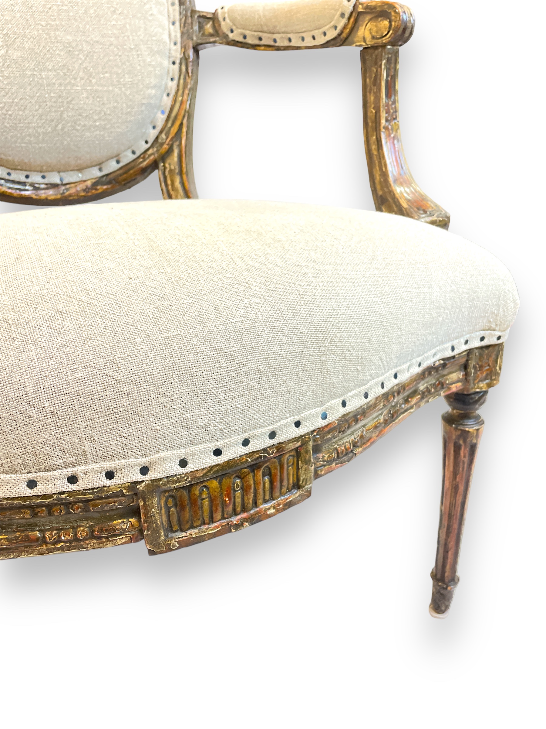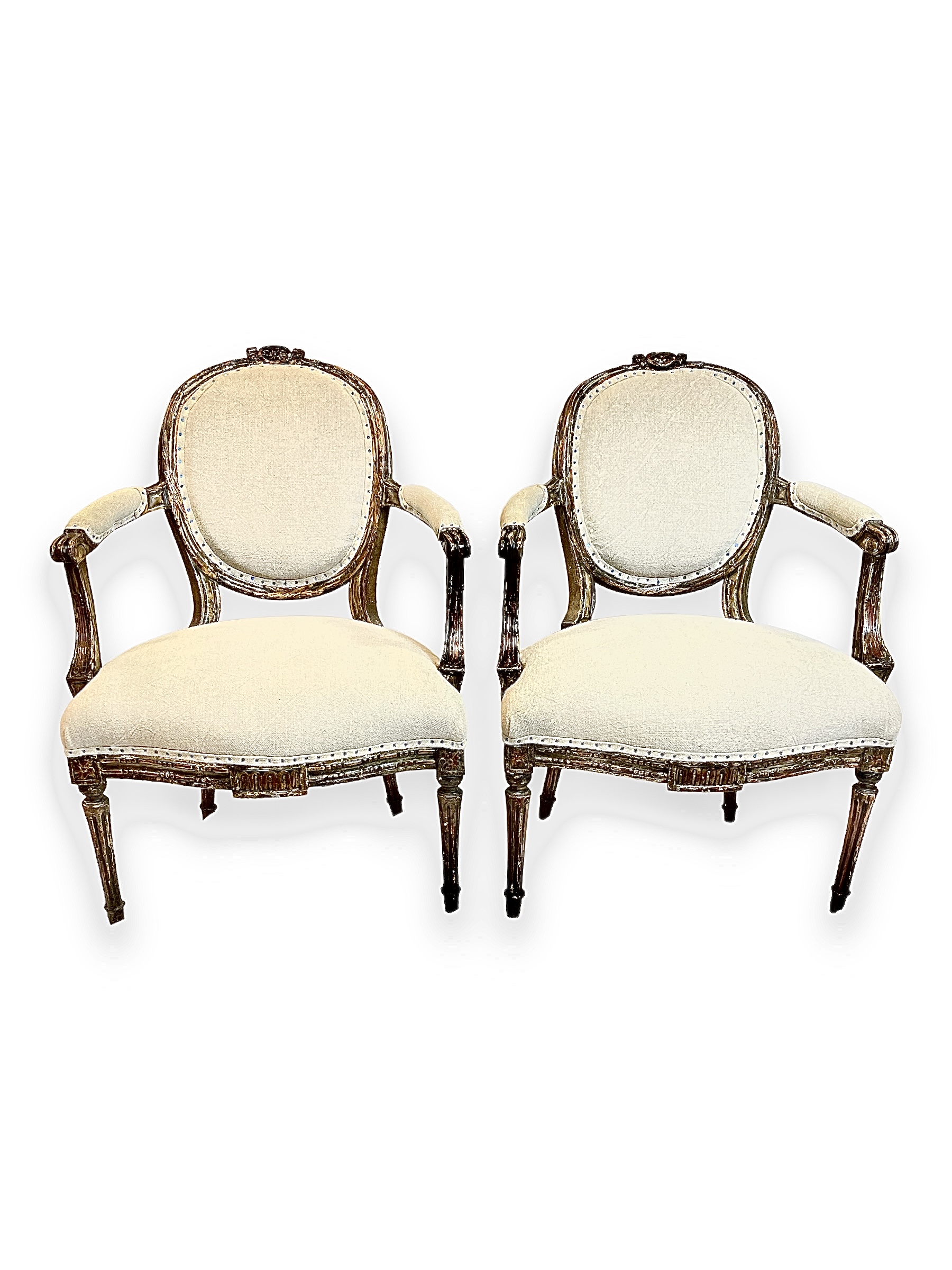 Pair of Louis XVI chairs w/ custom beige upholstery.