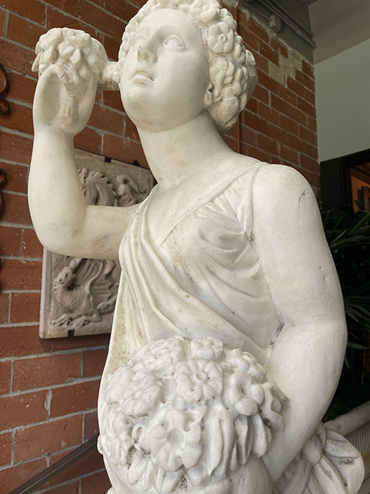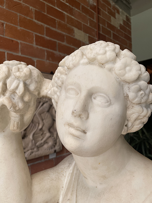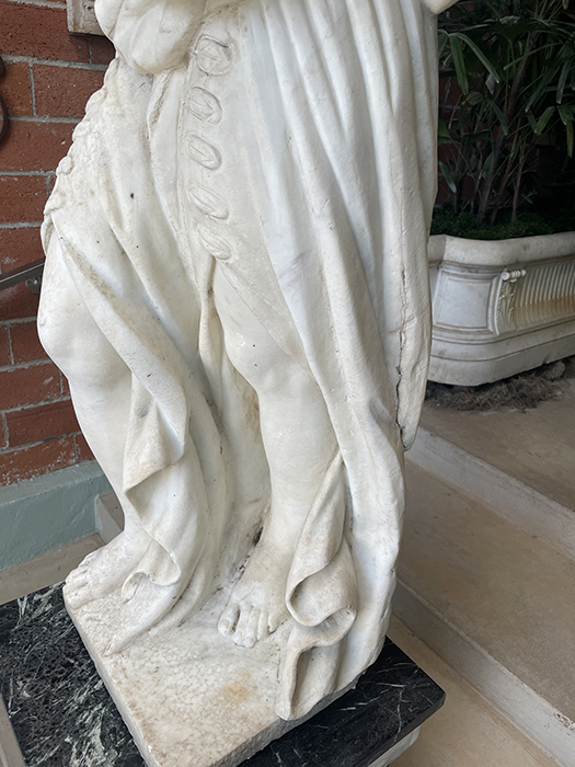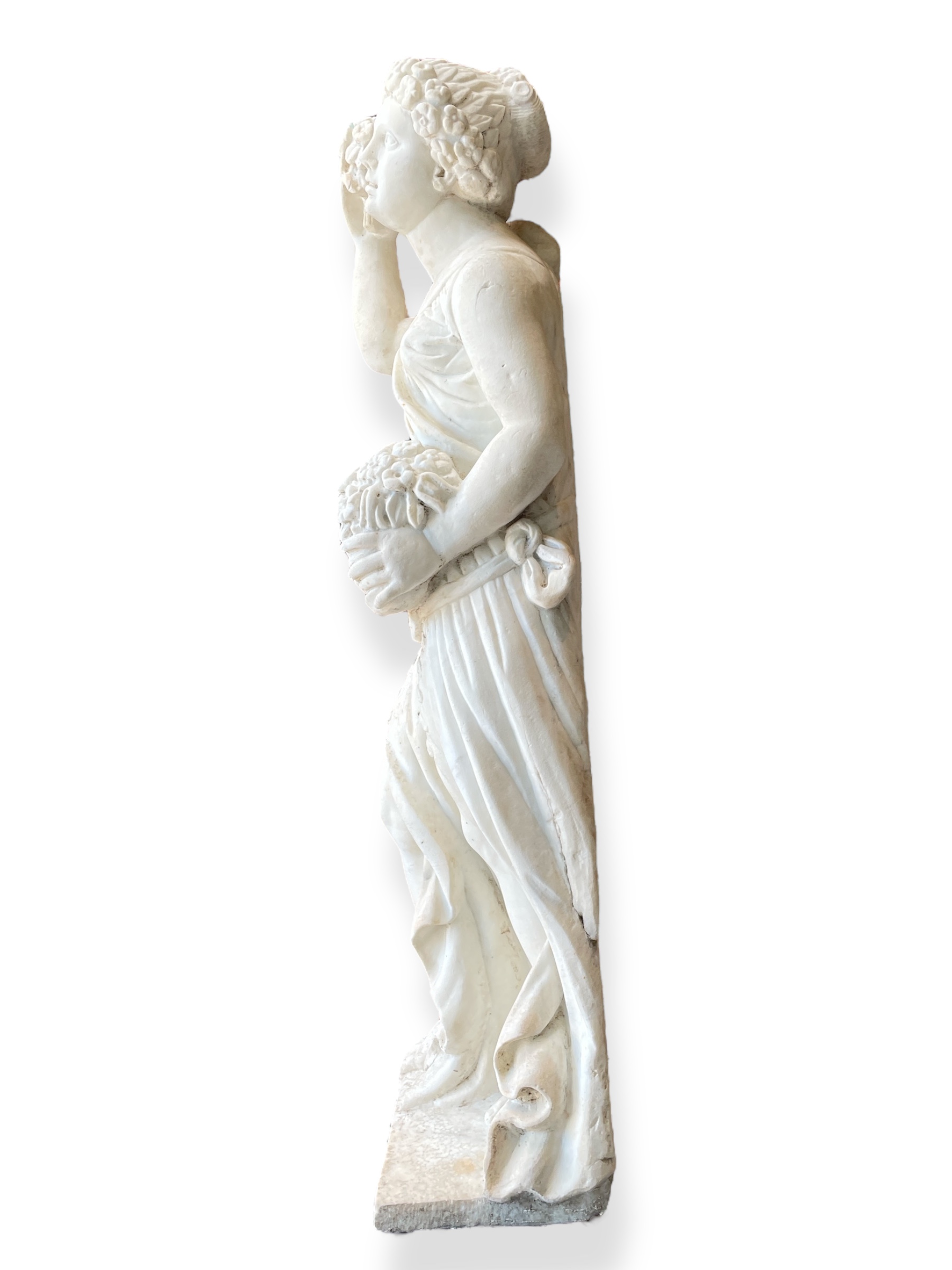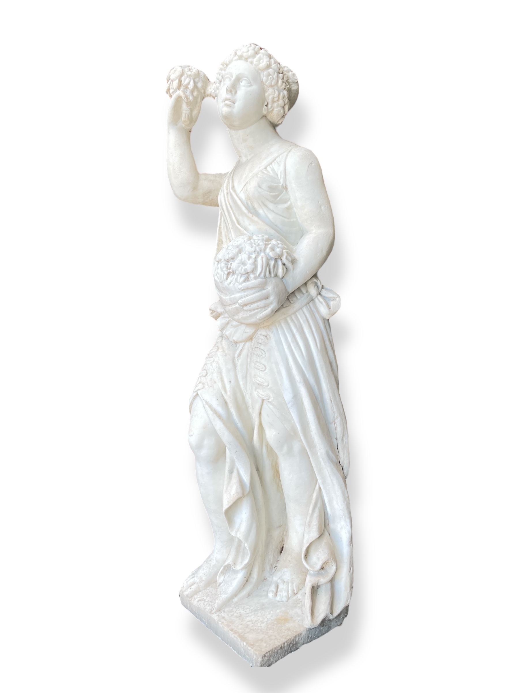 18th C Italian carrera marble statute, "Spring", one of the four seasons, from an Italian villa on the Italian coast.
