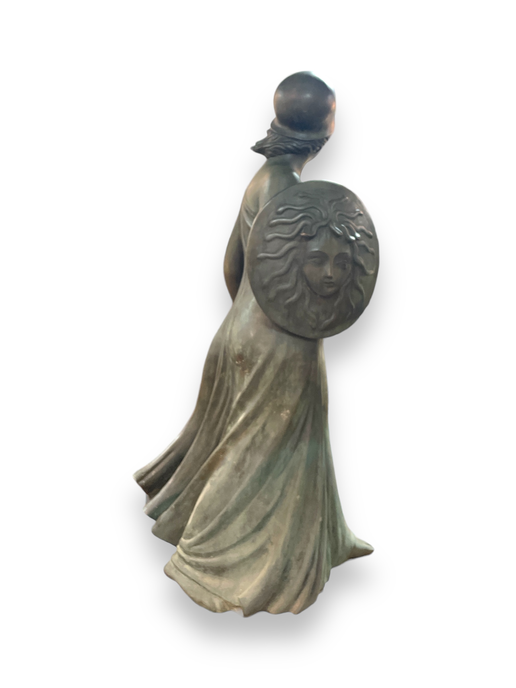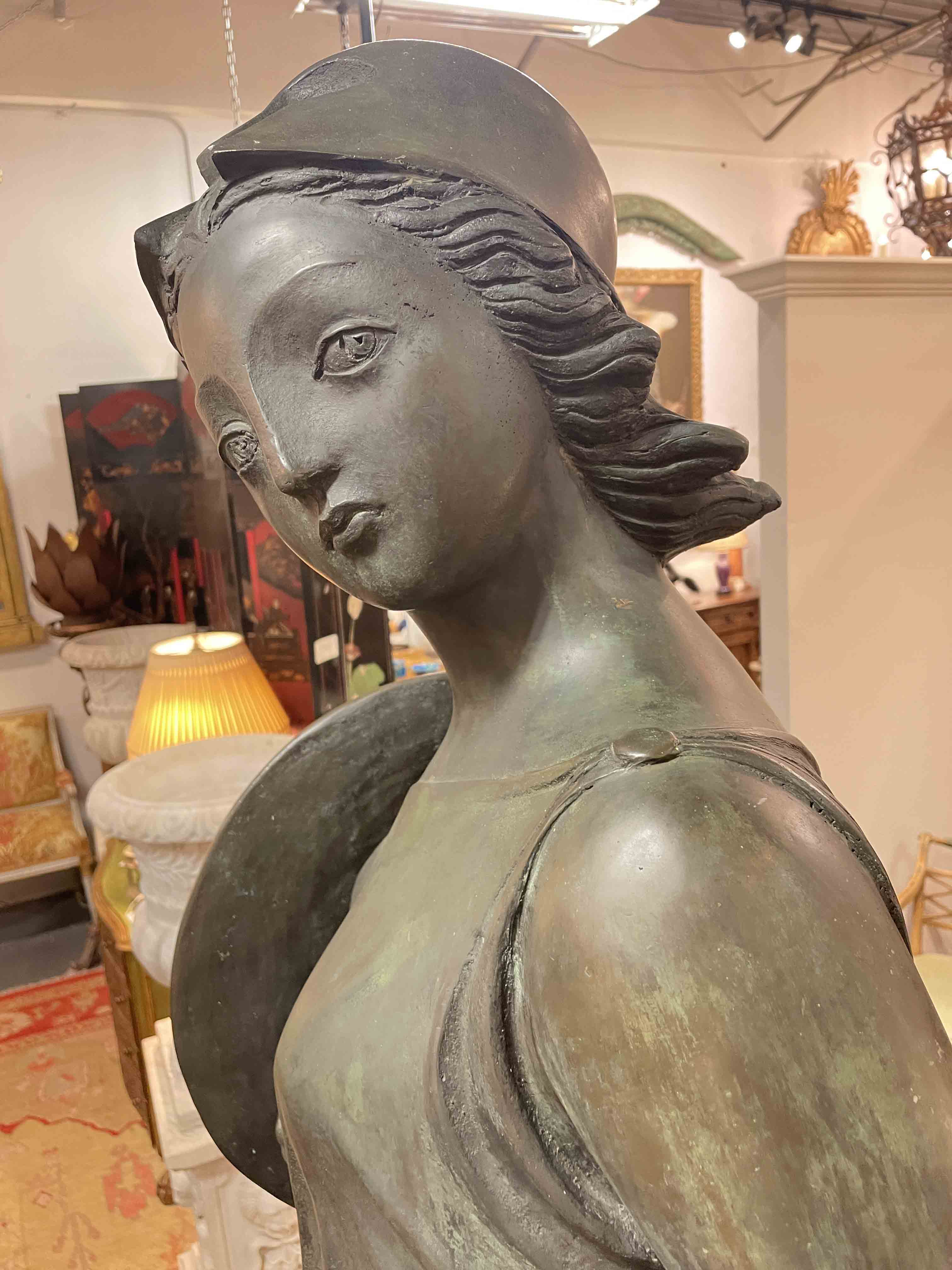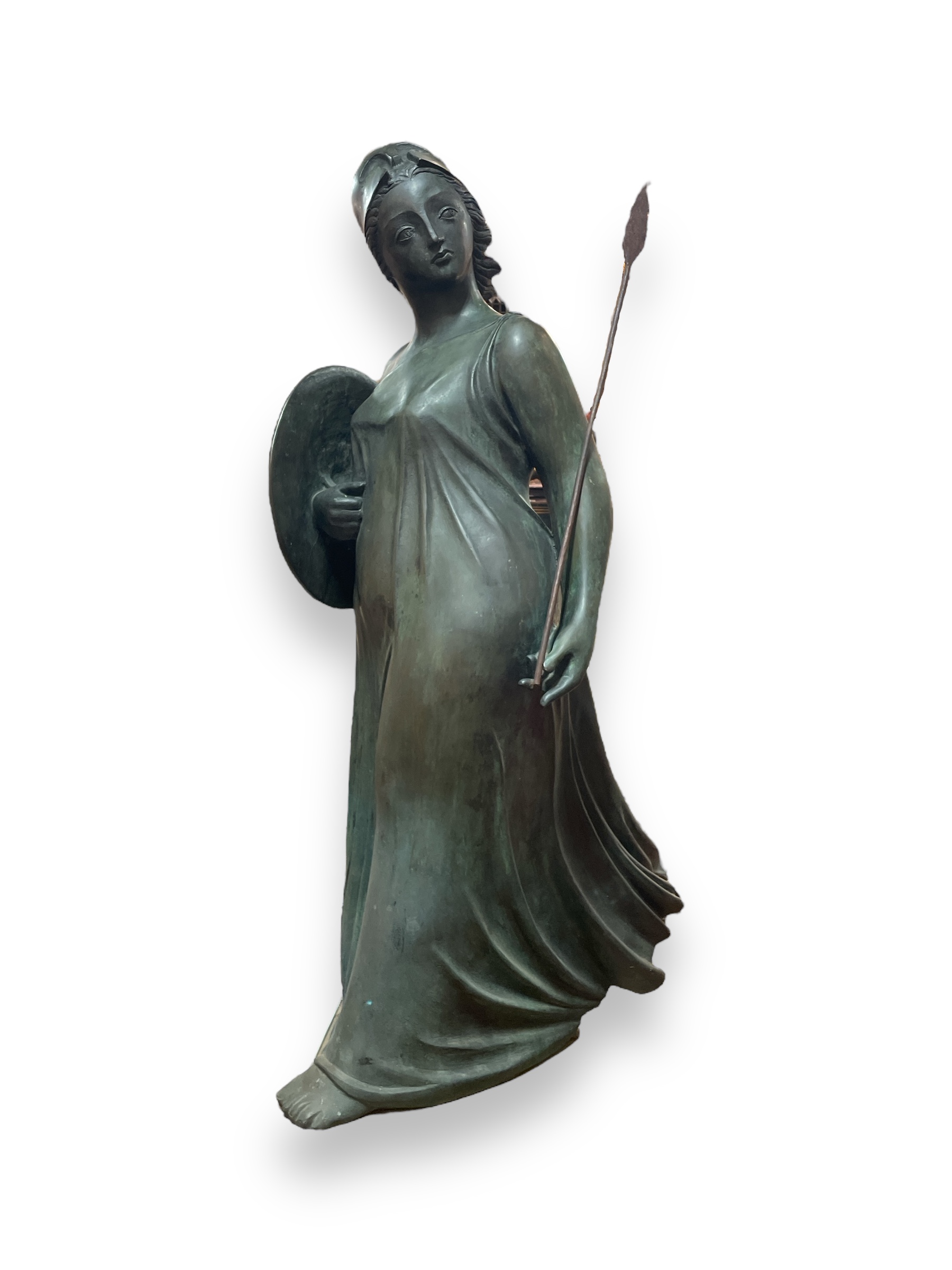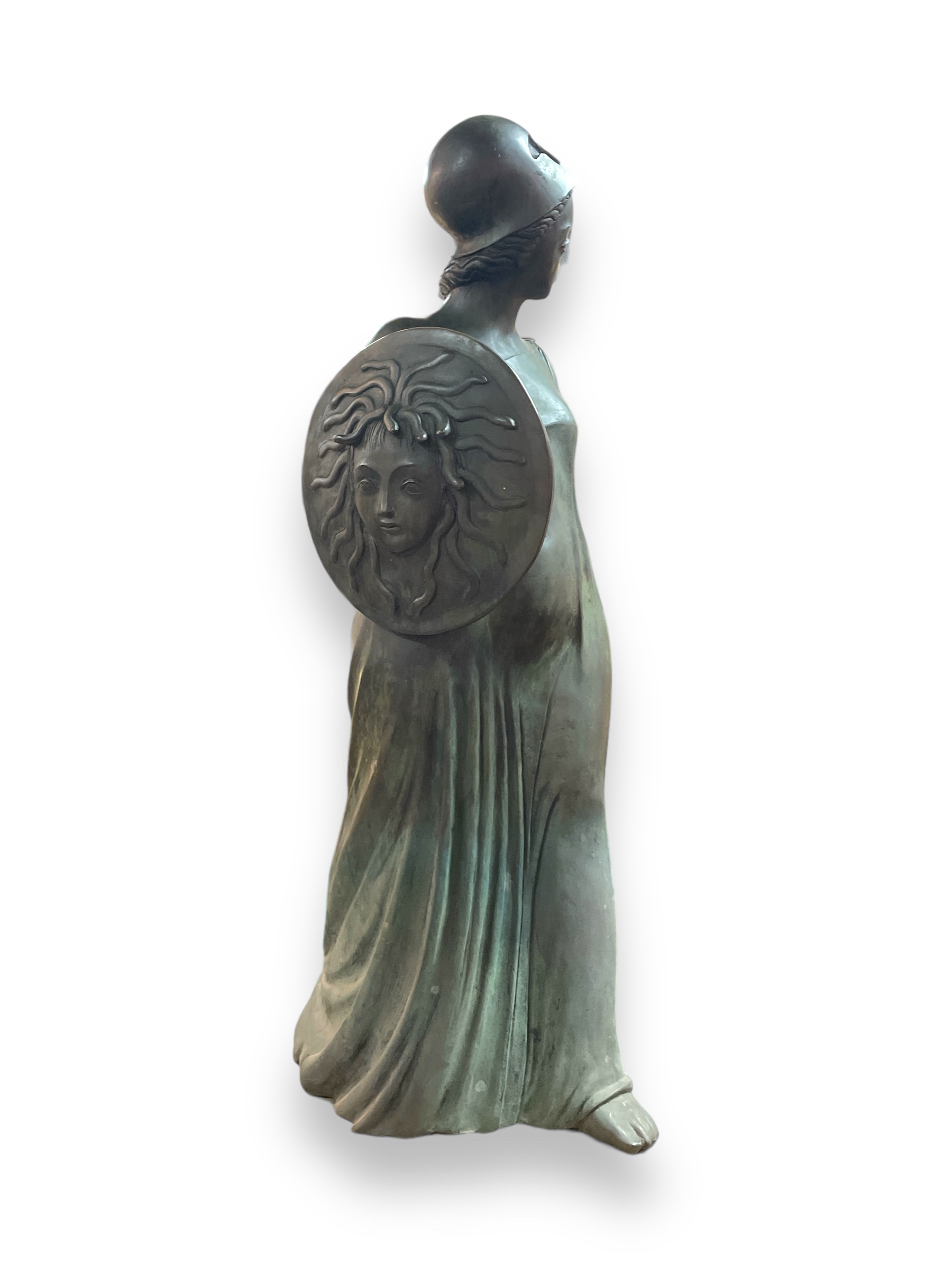 20th C bronze statue " Minerva" by Luigi Galligani ( Italy b.1957); created 2001. Minerva is the Roman goddess of wisdom, war, justice and commerce. Accompanying 2022 catalog from the 'Academia delle Arti del Disegno'.