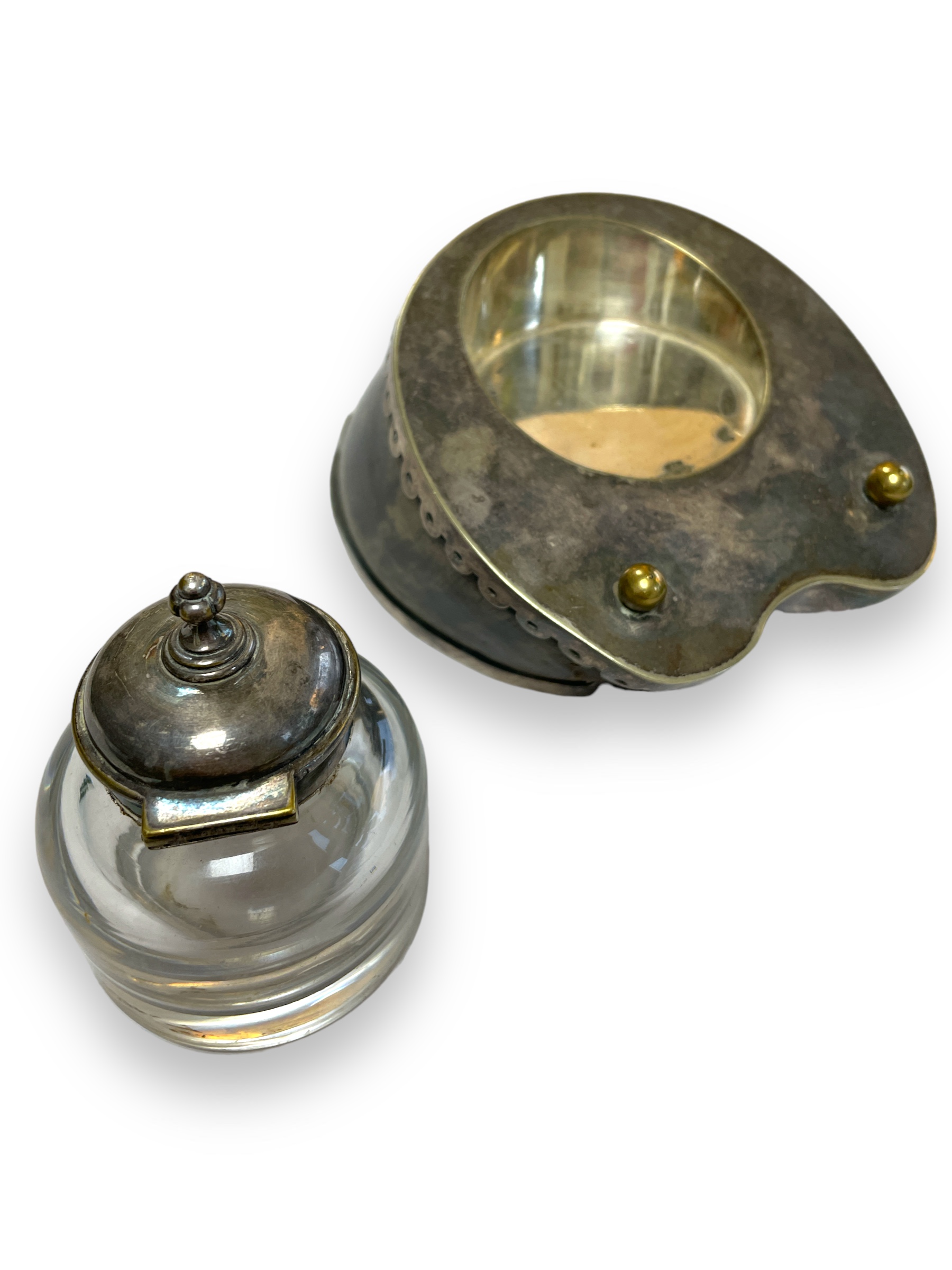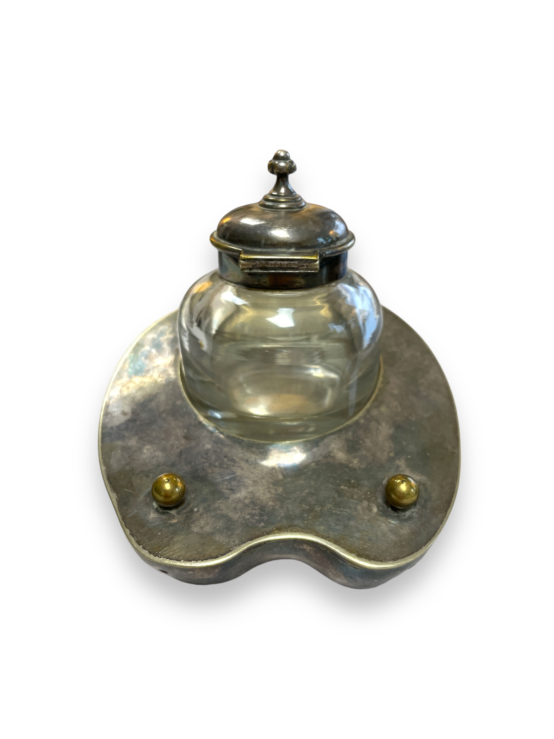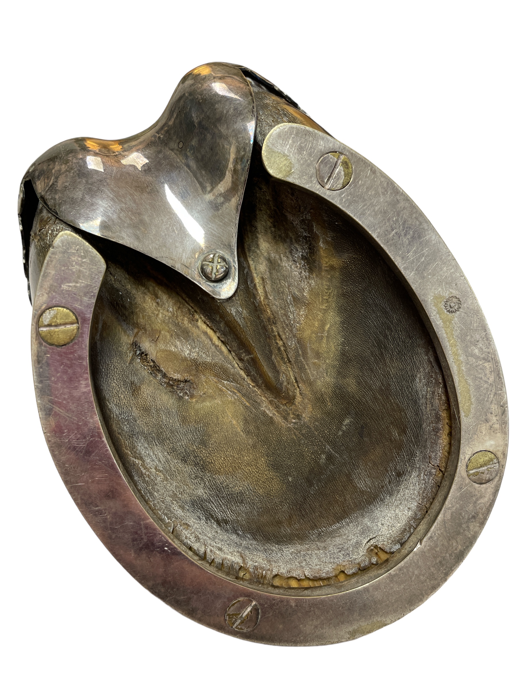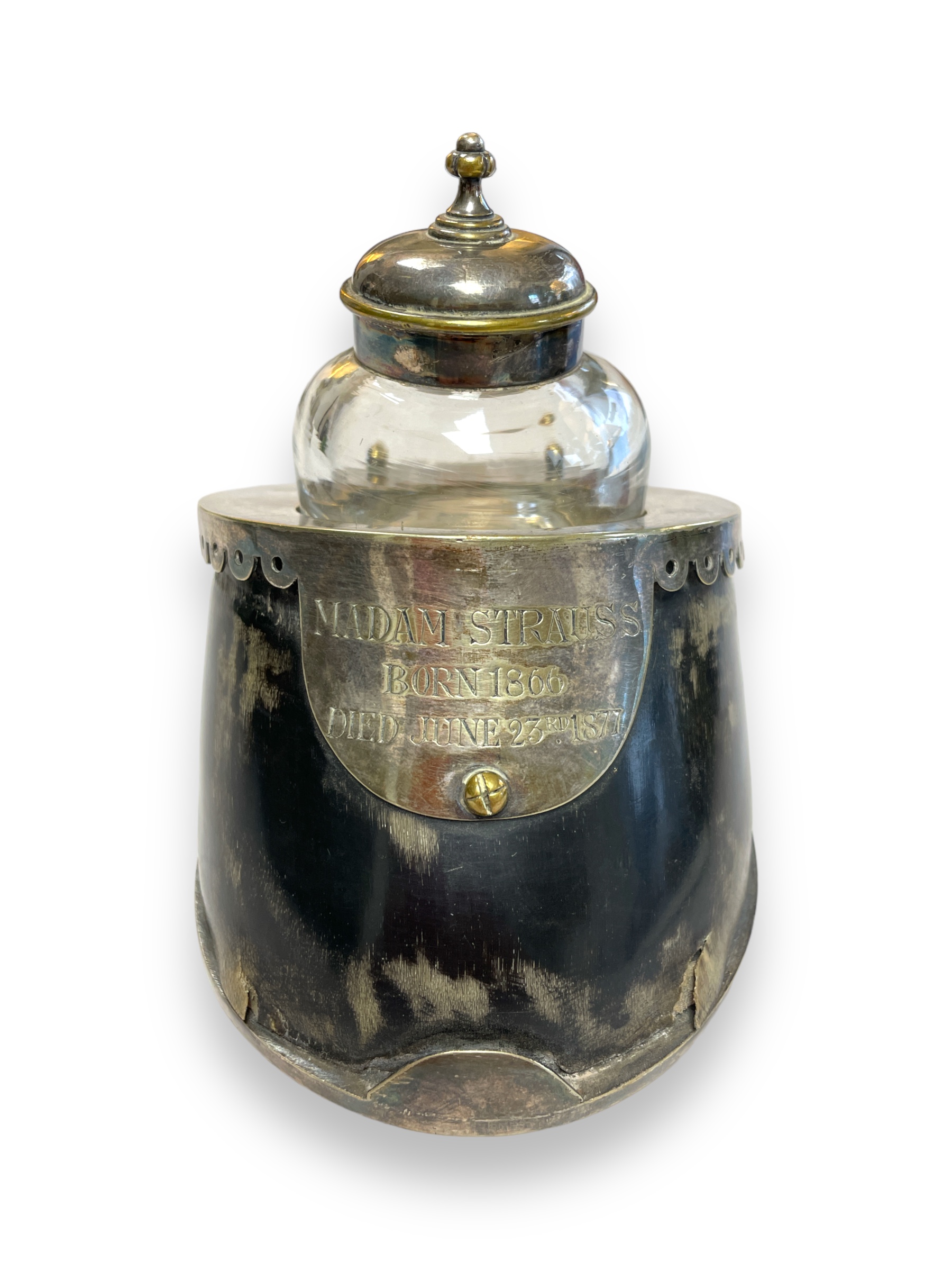 19th C silver horse hoof inkwell w/ engraved name & dates. " Madam Strauss; Born 1866, Died June 23rd 1877."