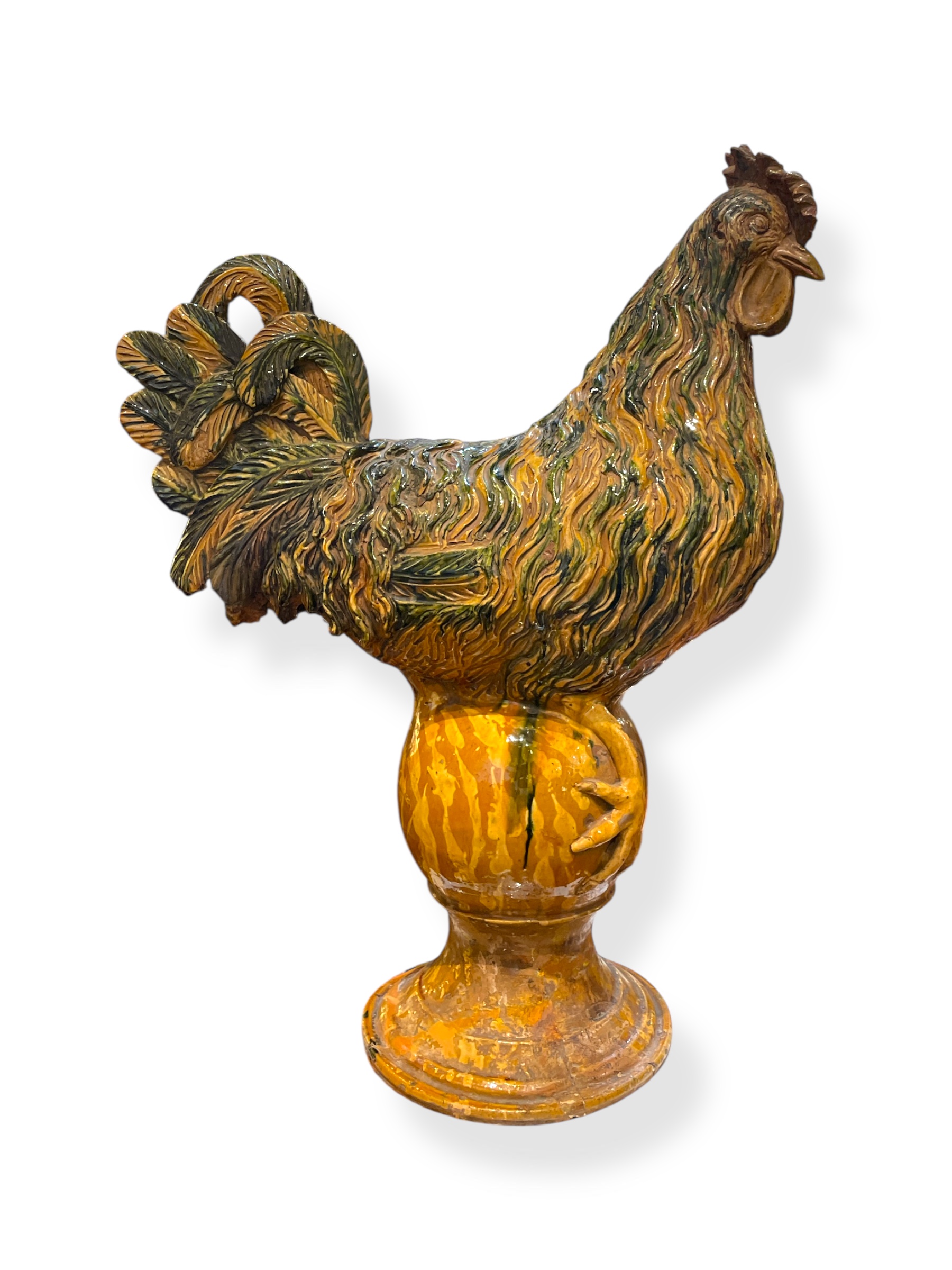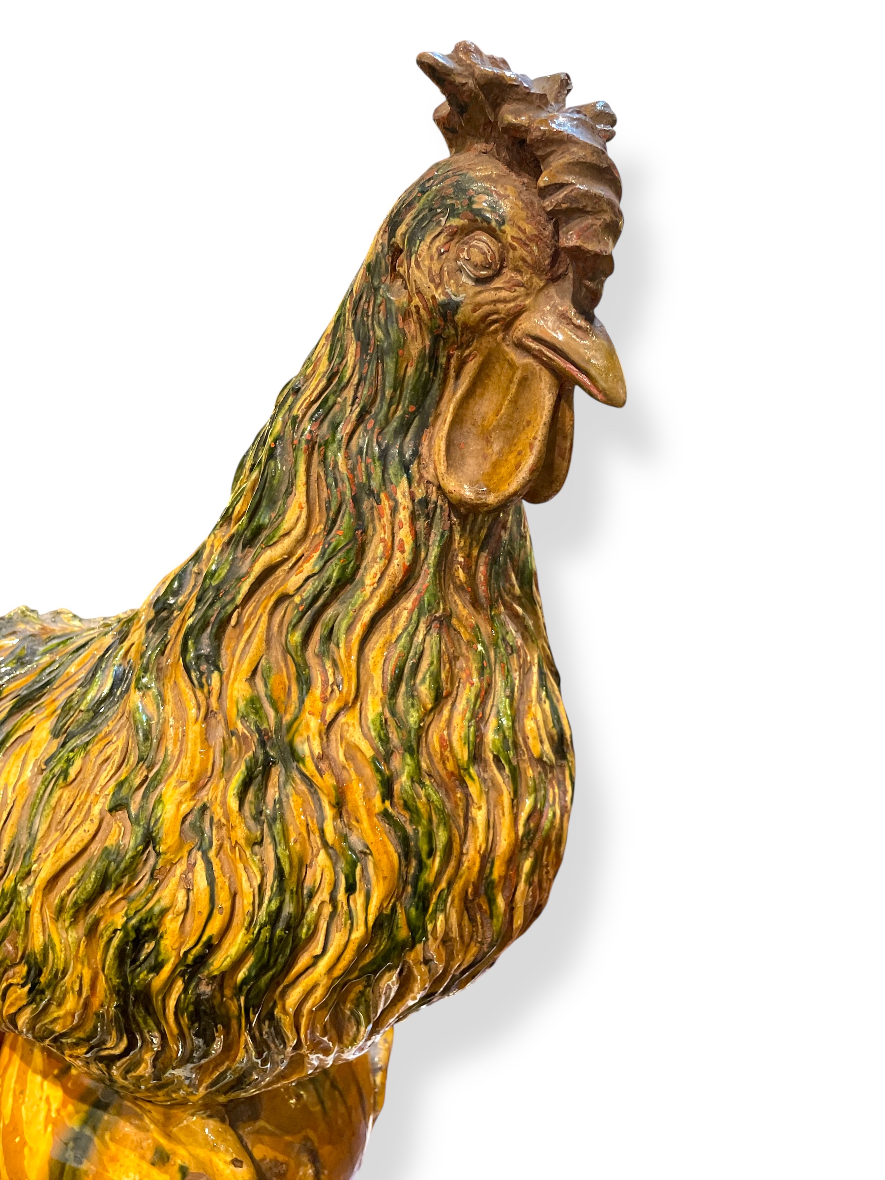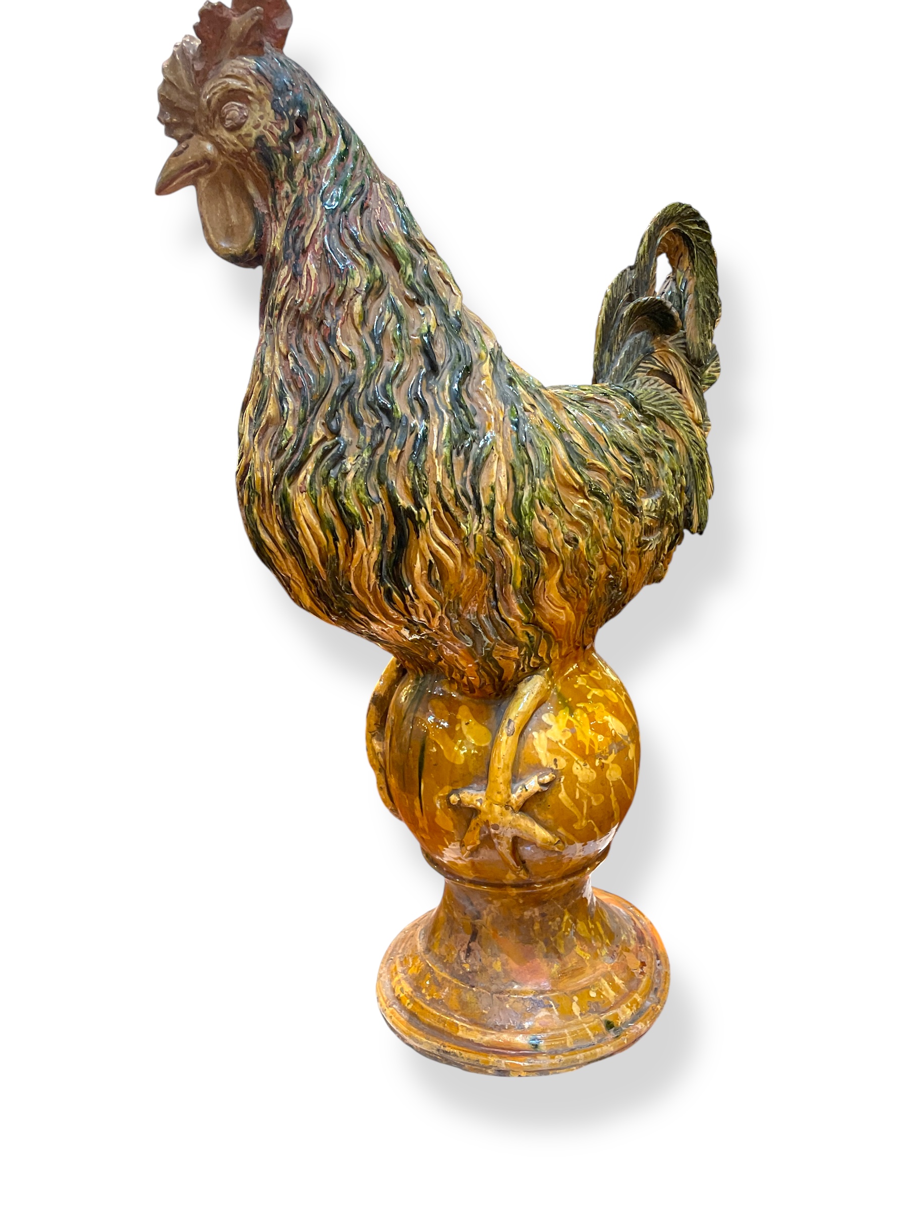 Early 19th C Cantagalli glazed and polychrome earthenware rooster.