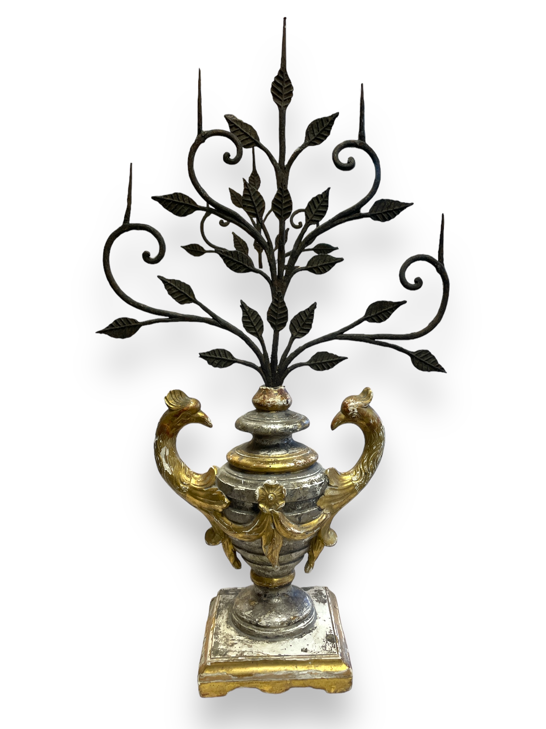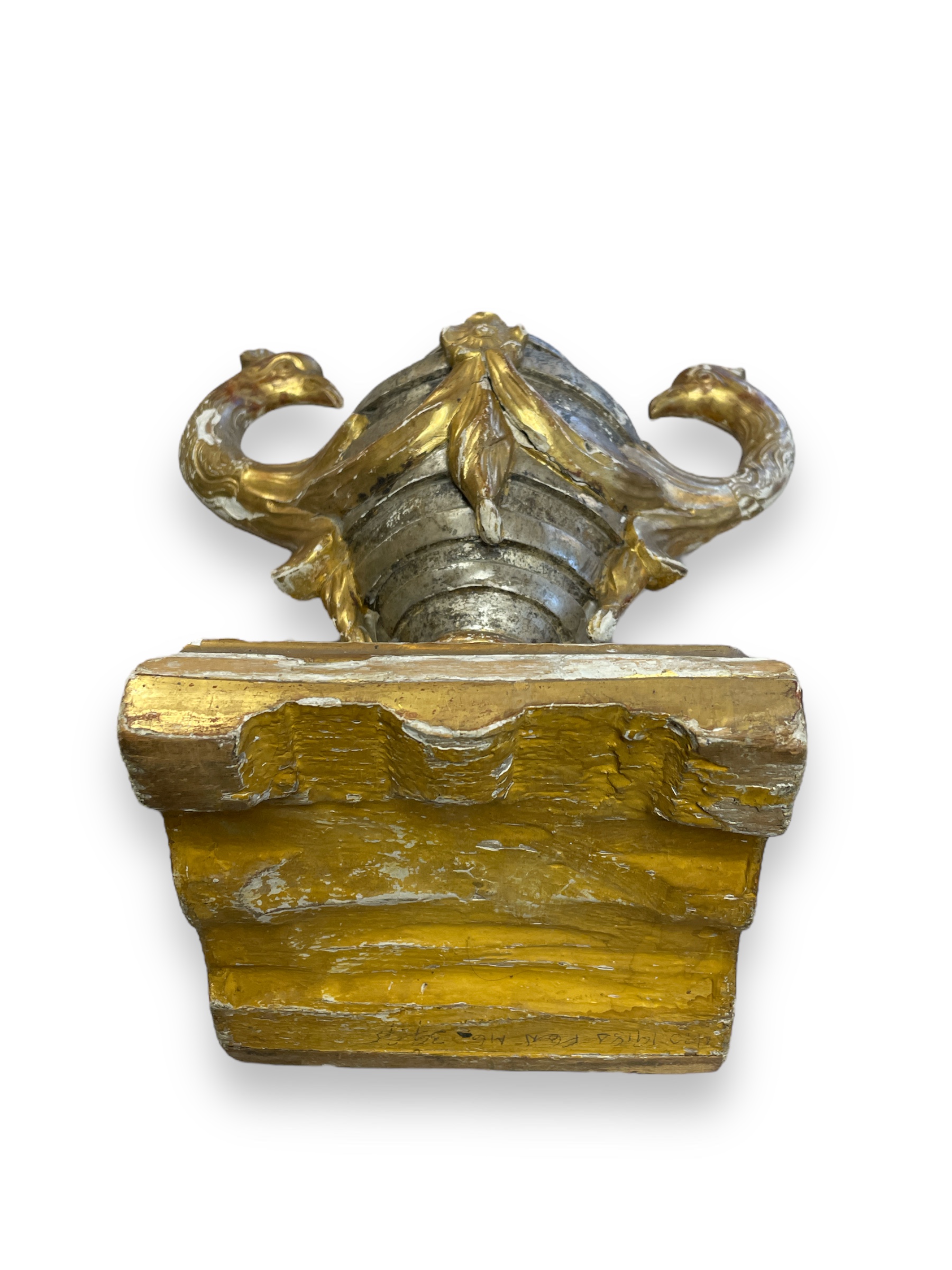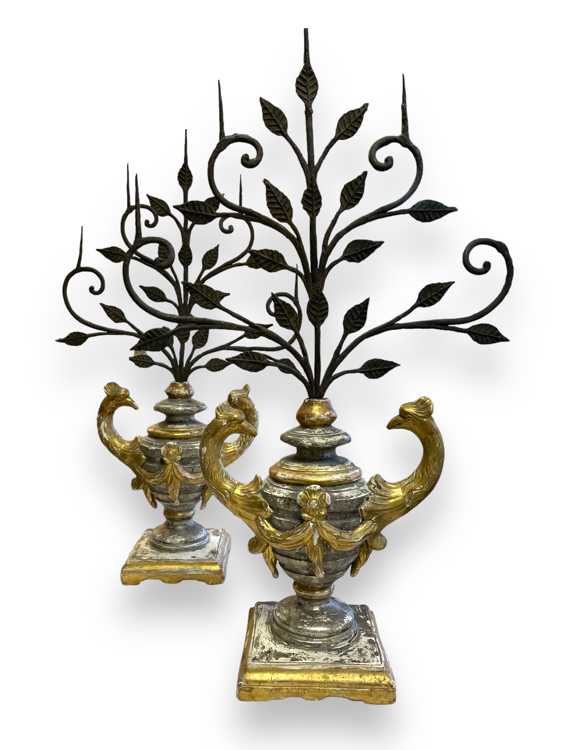 19th C Italian carved wooden silver gilt & pilychrome candle girandoles.