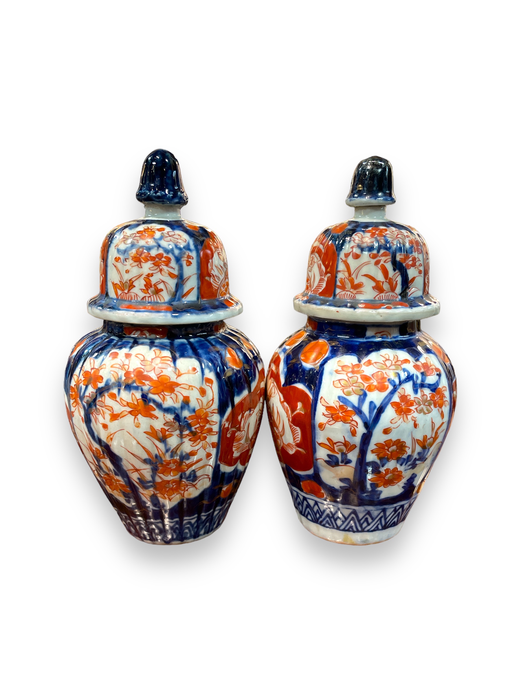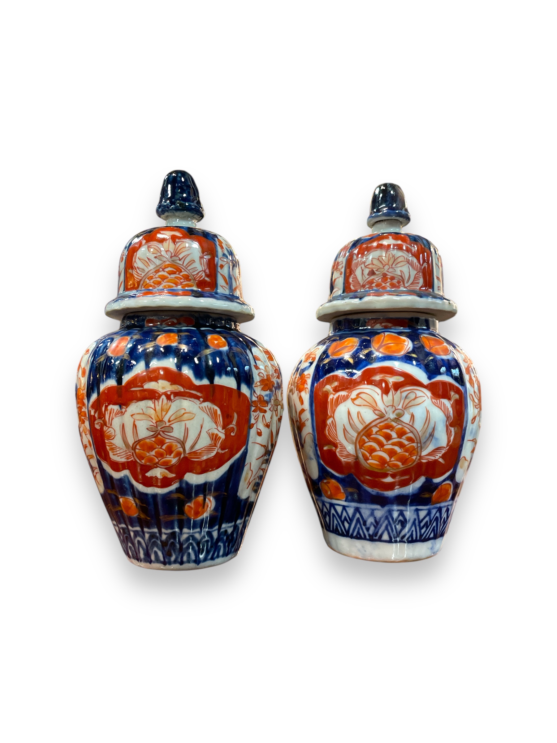 Pair of 19th C small Chinese lidded jars.