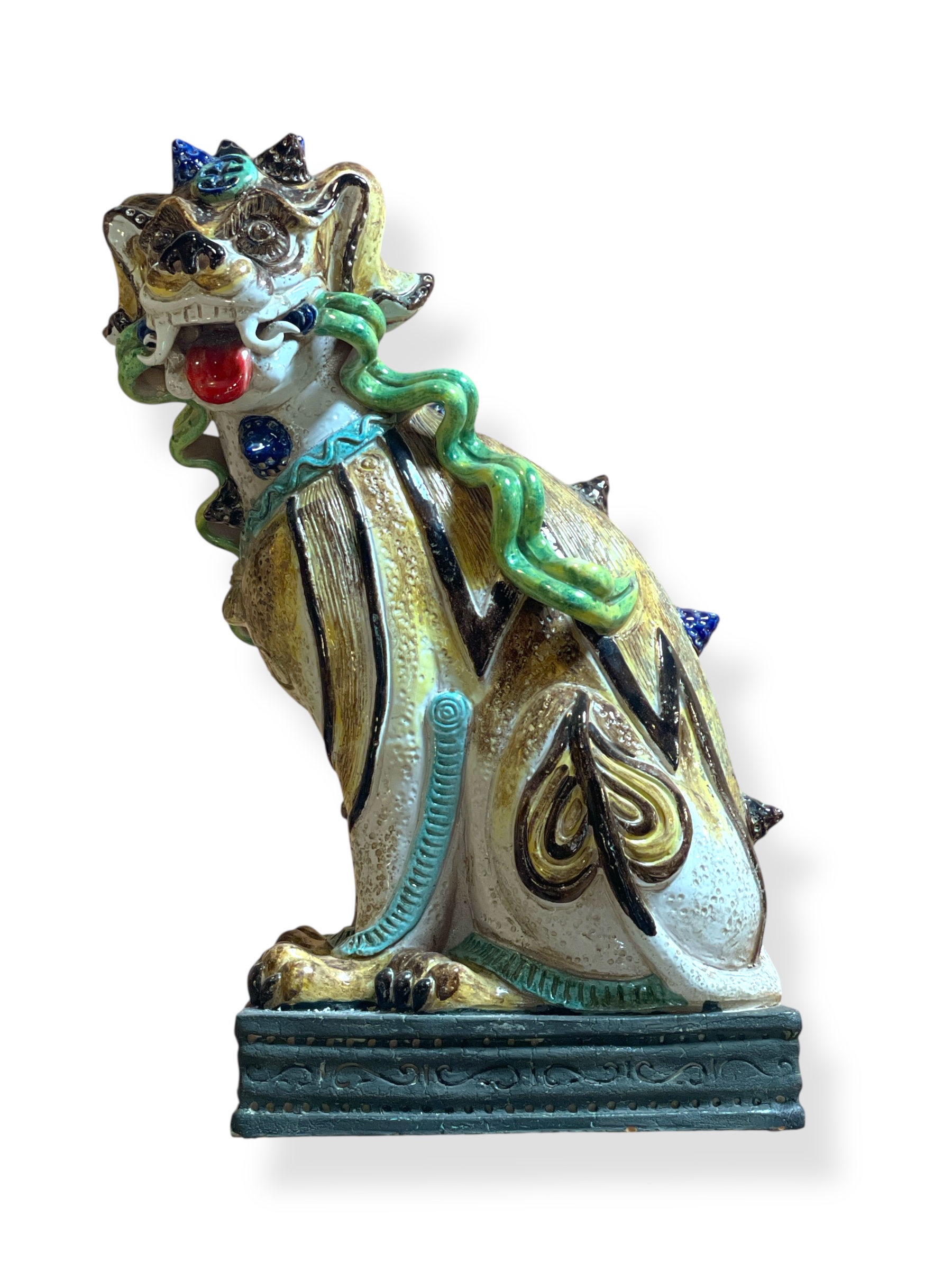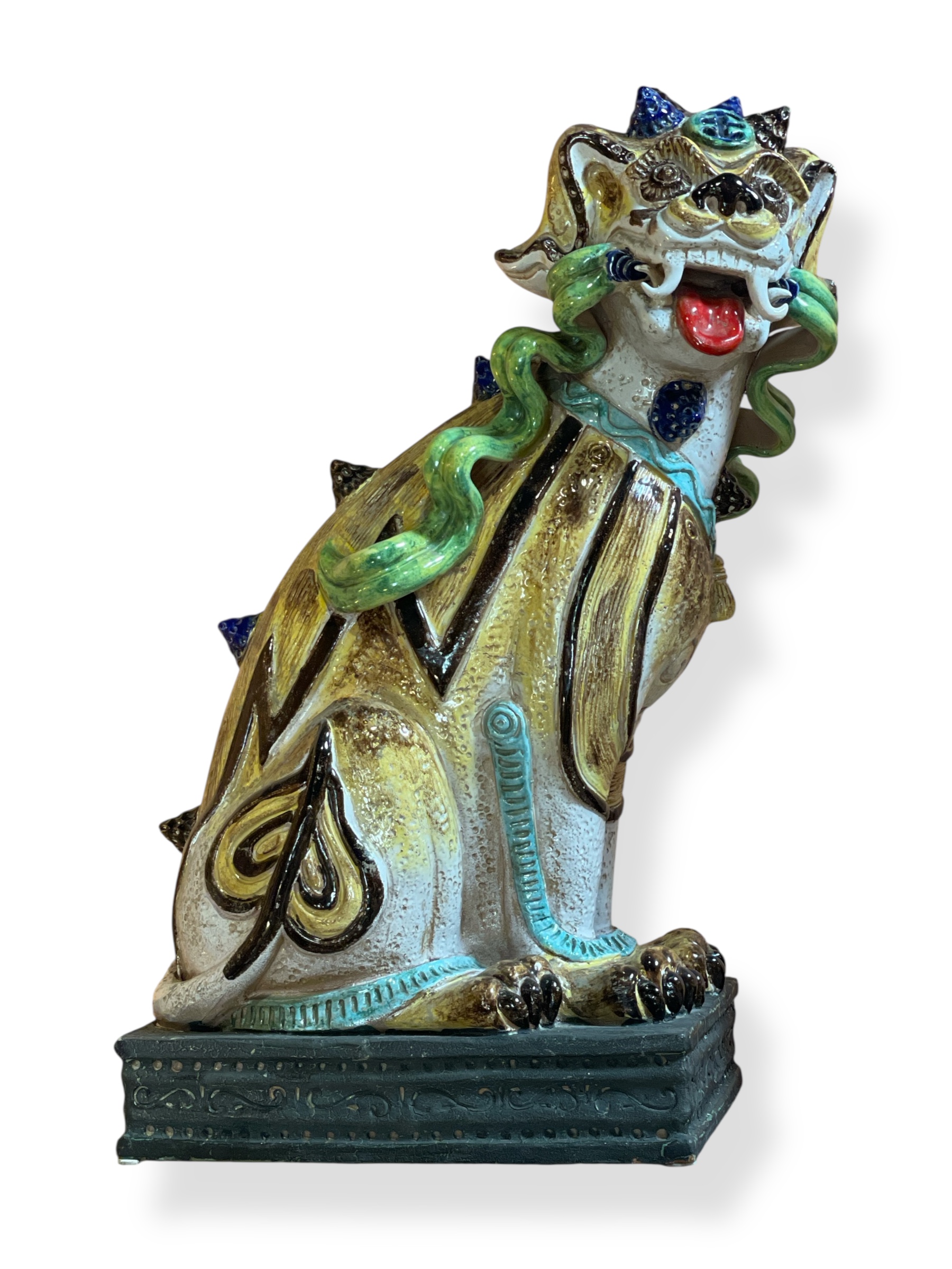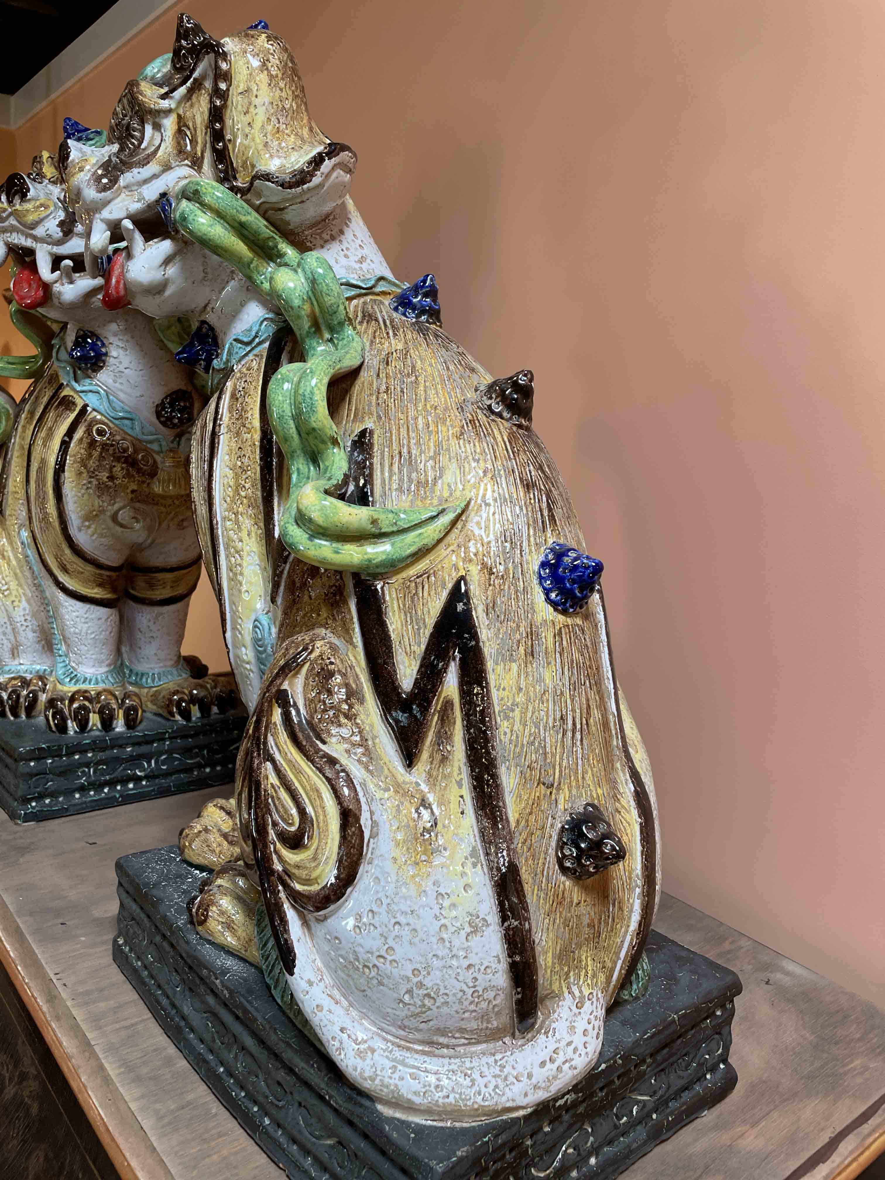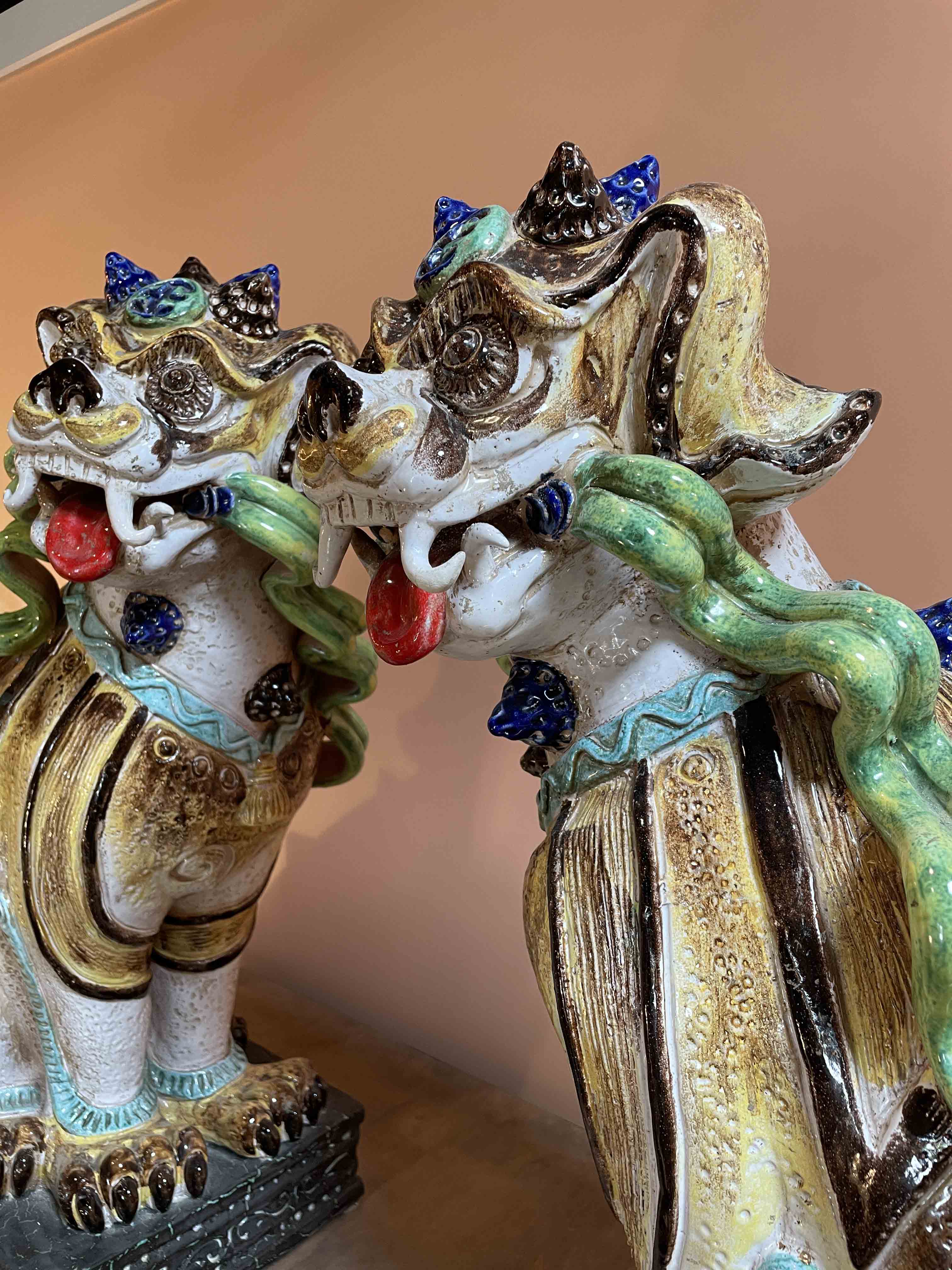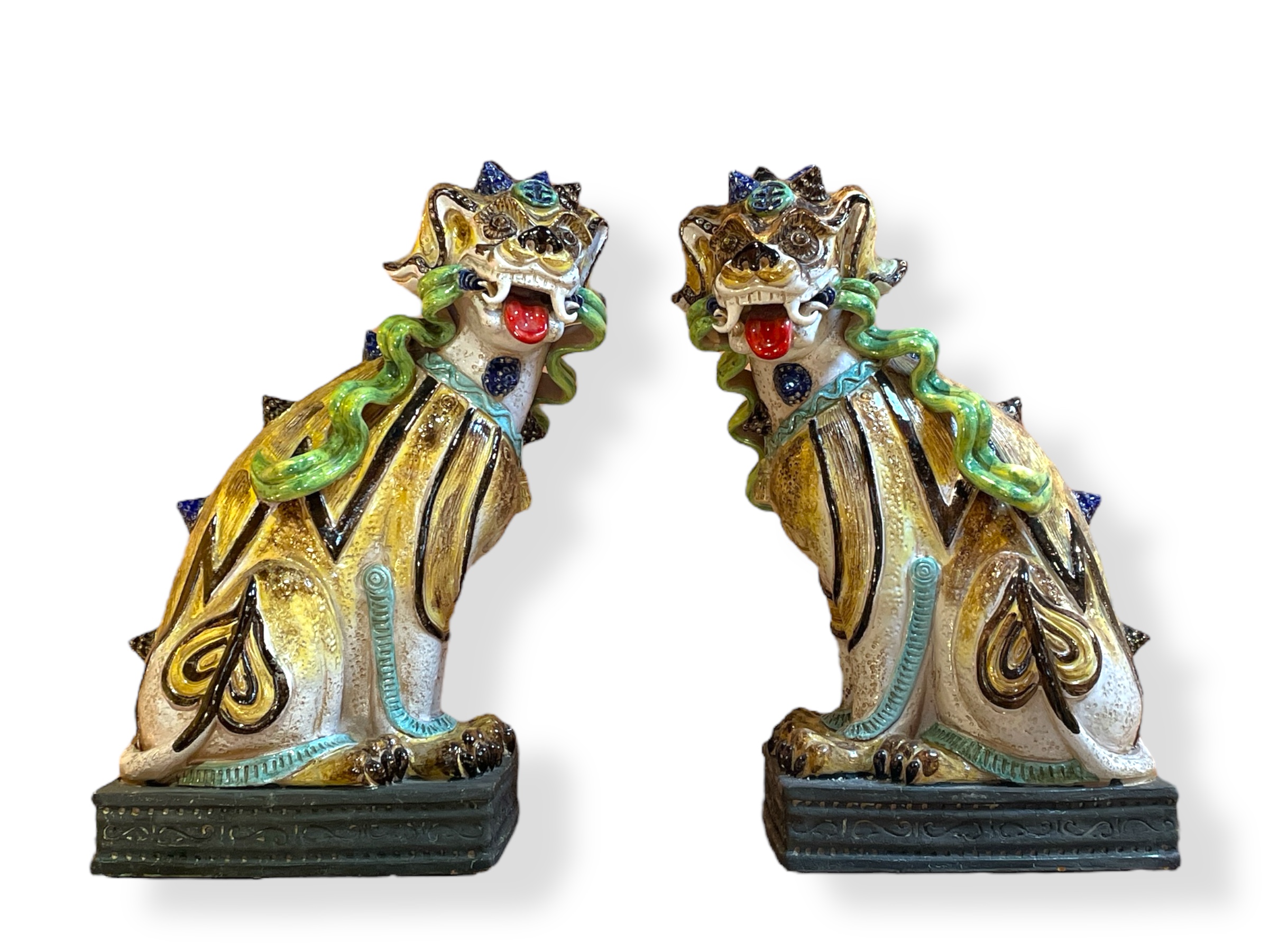 Pair of large mid-century Italian ceramic polychrome Chinese-style foo lions.