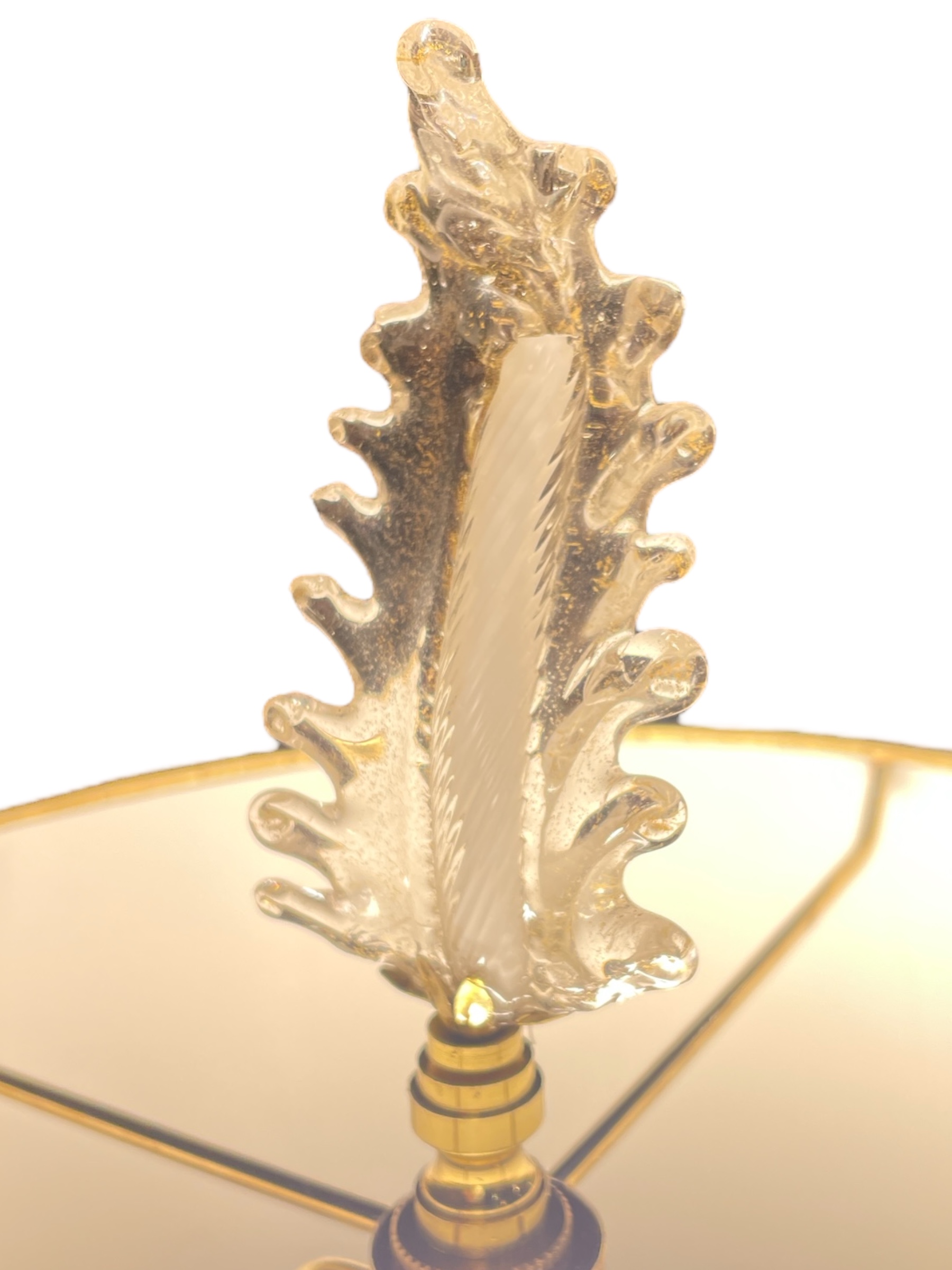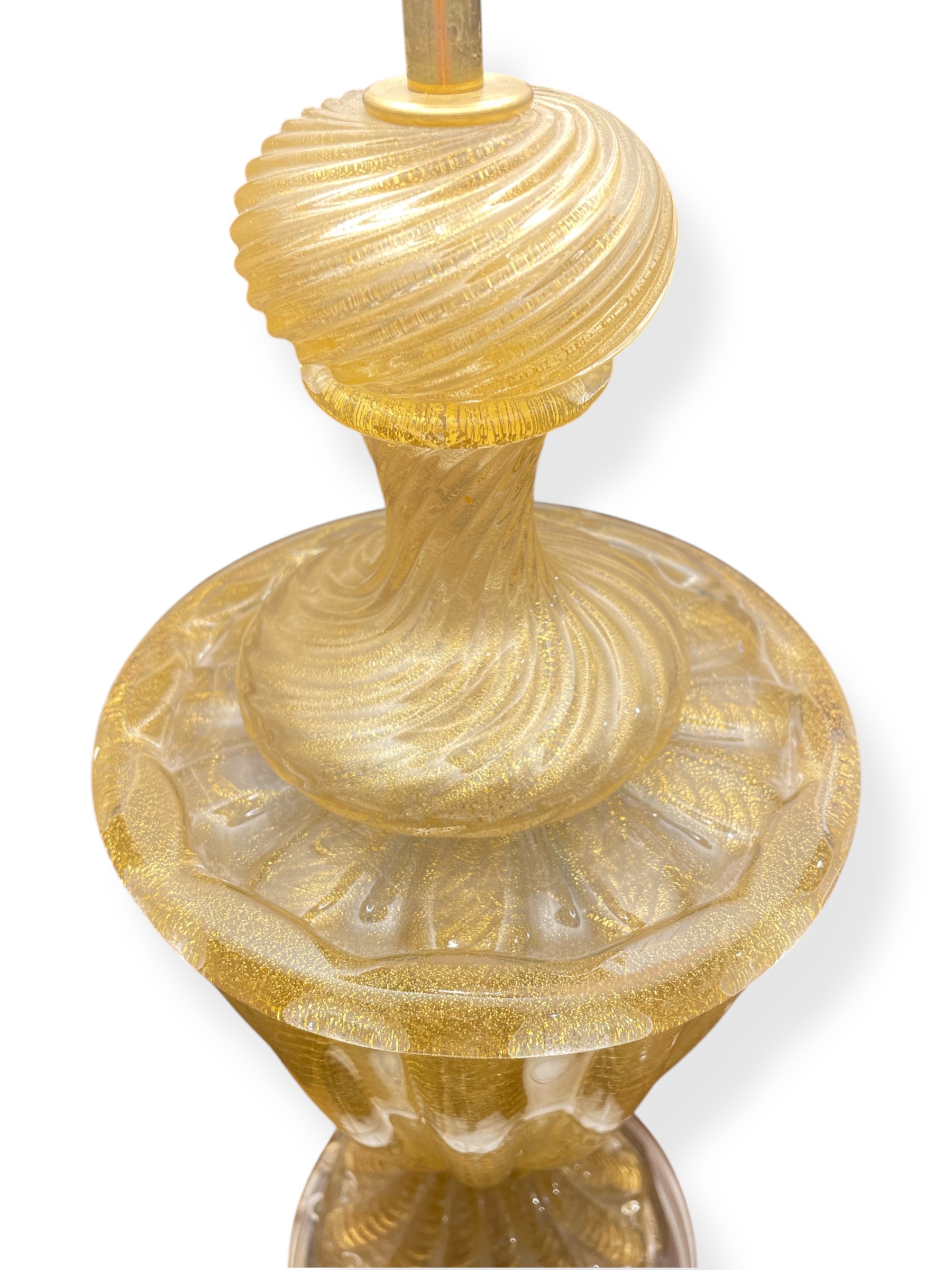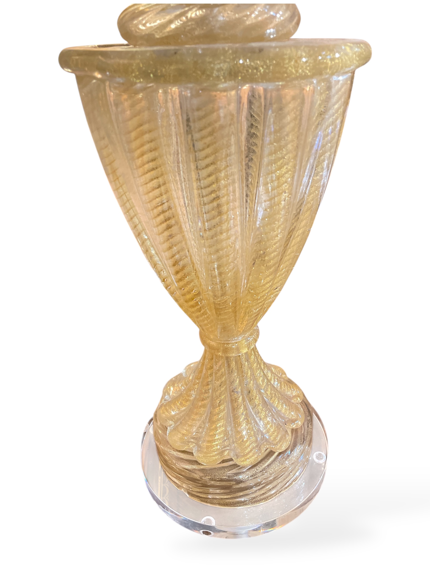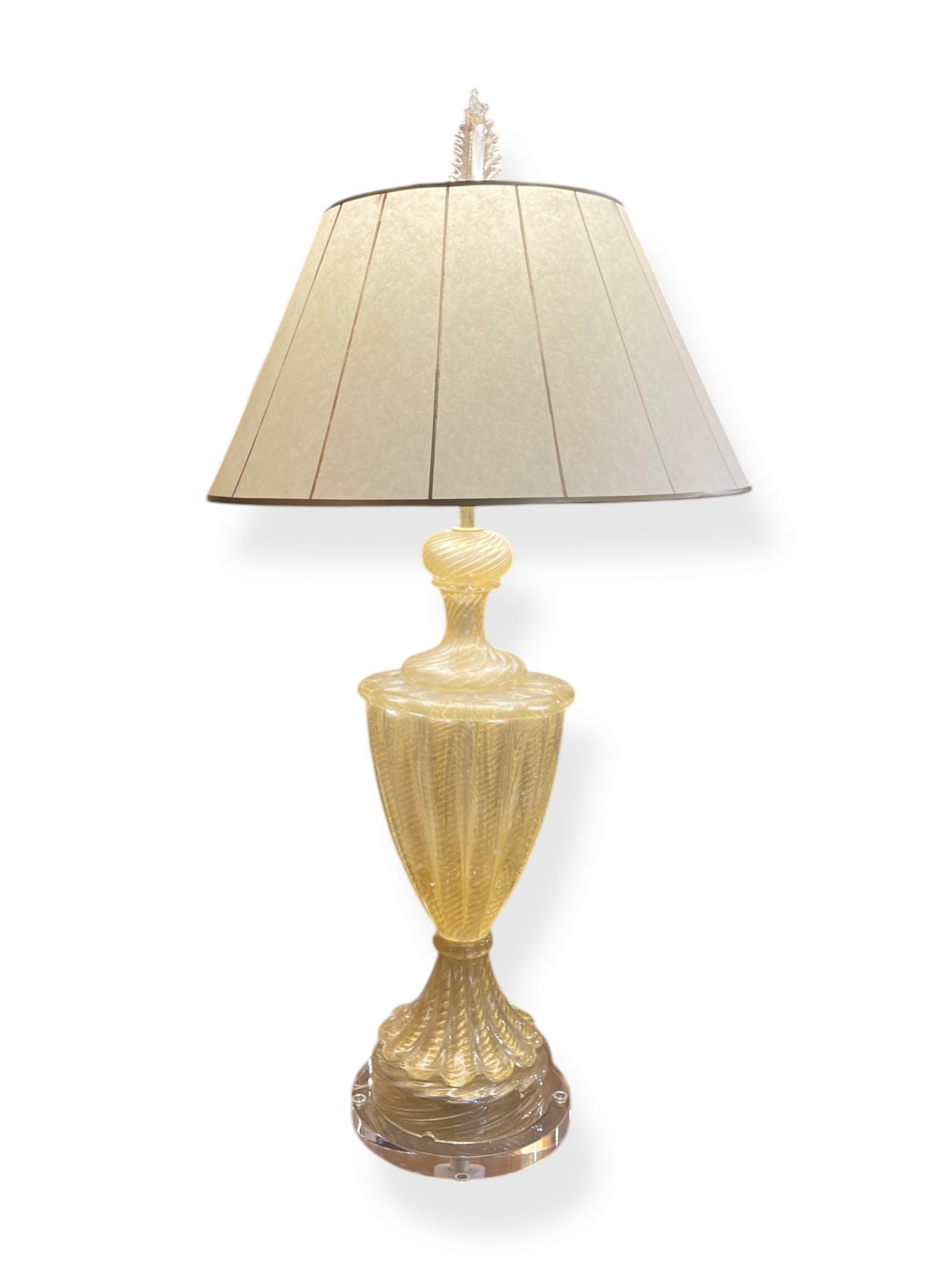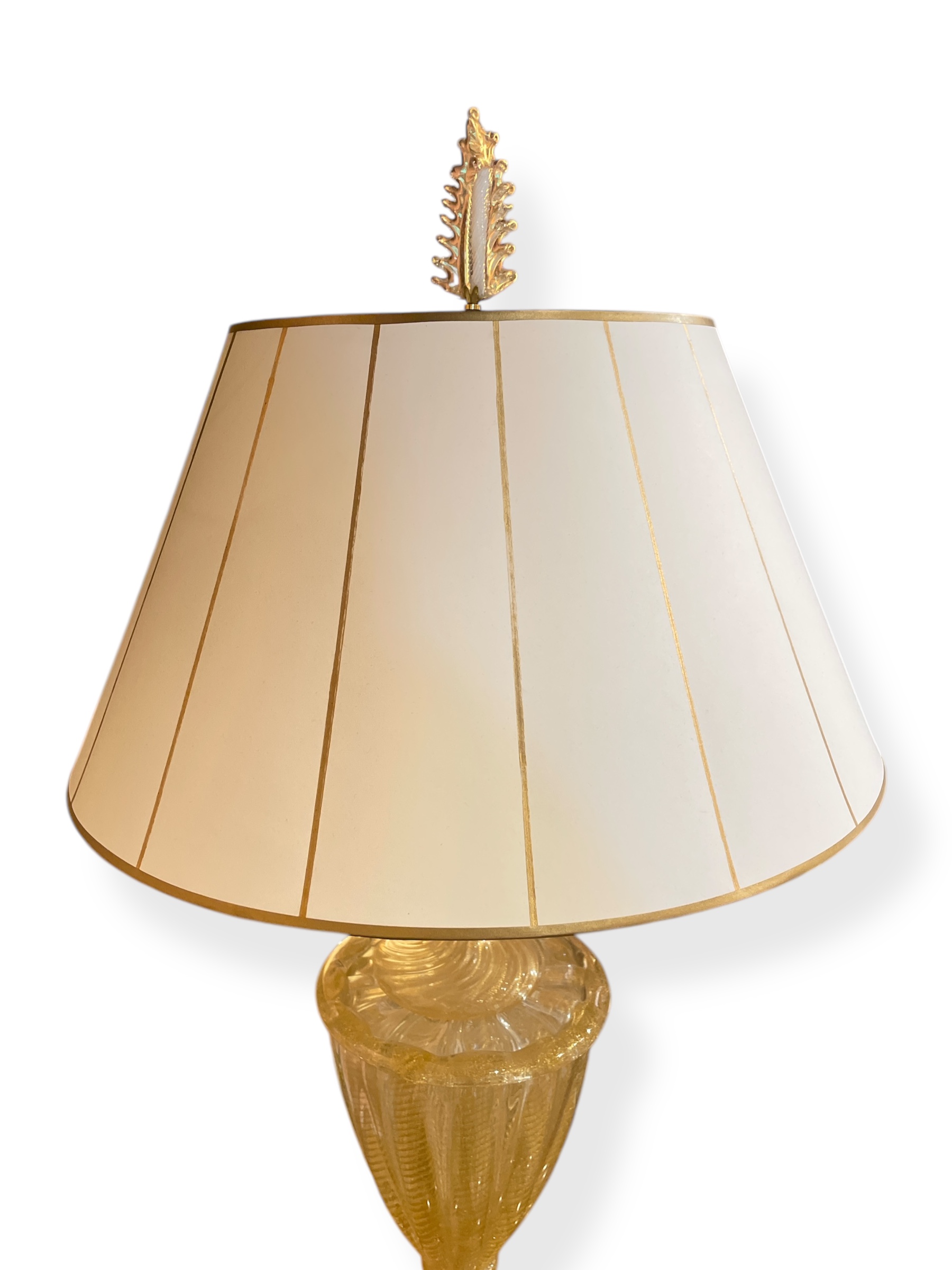 Murano glass clear w/ gold rope design, parchment shade & glass finial, lamp
