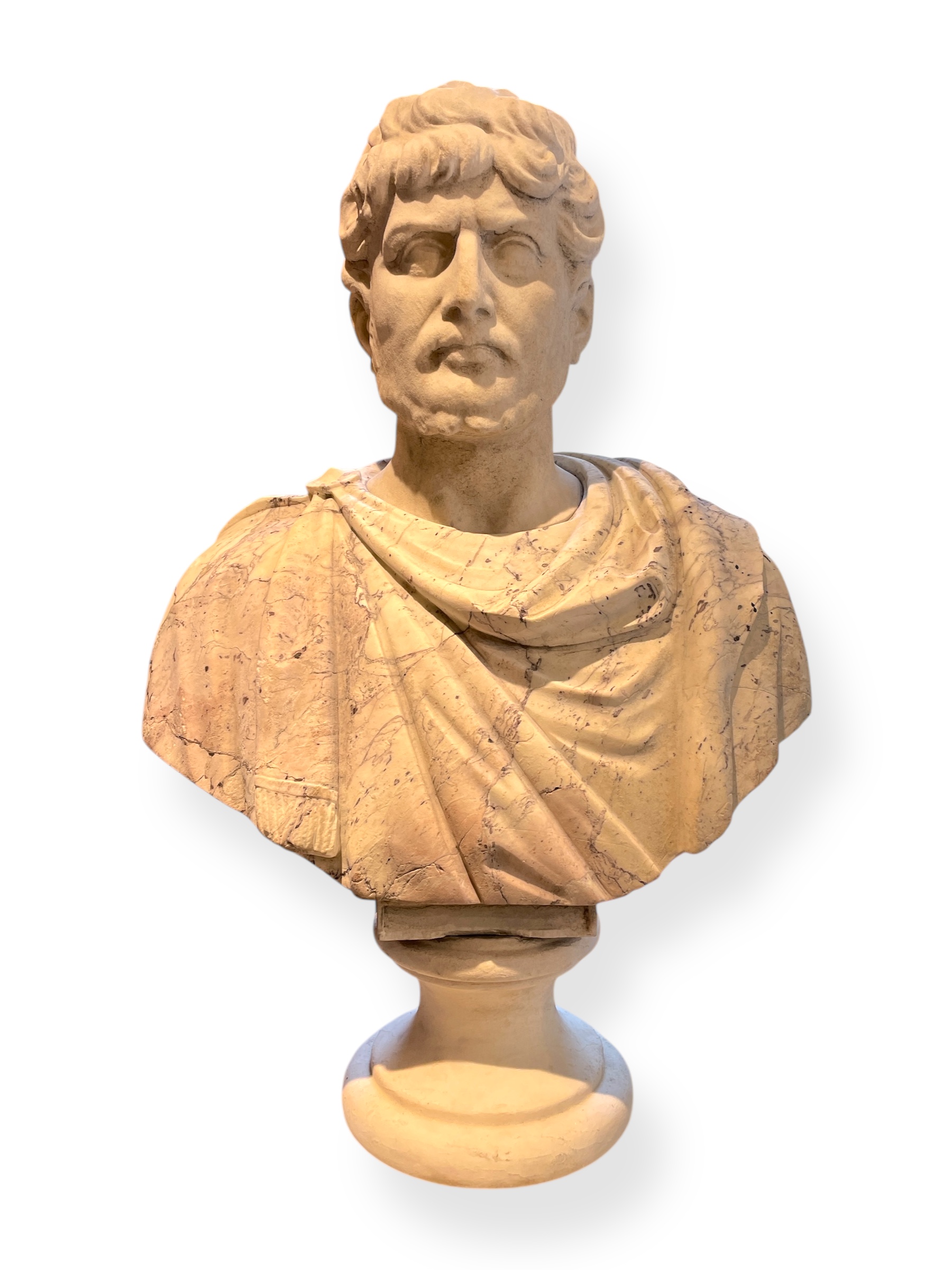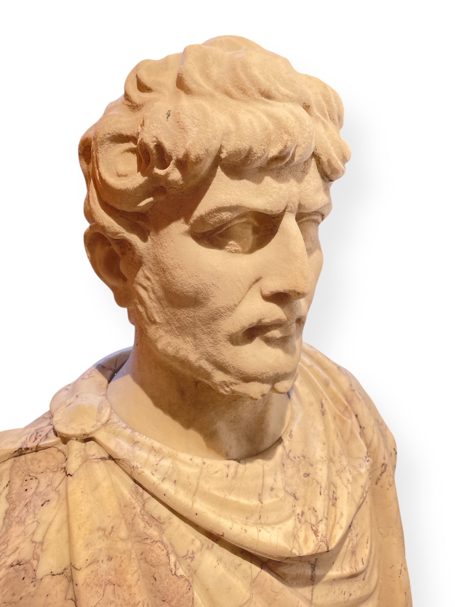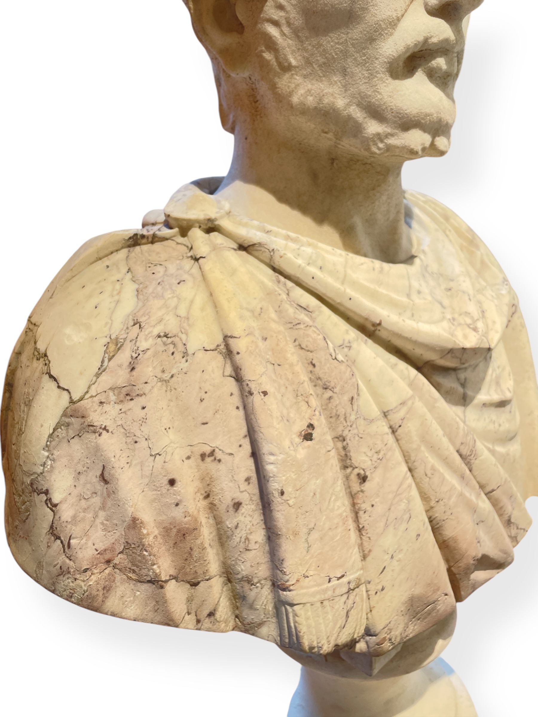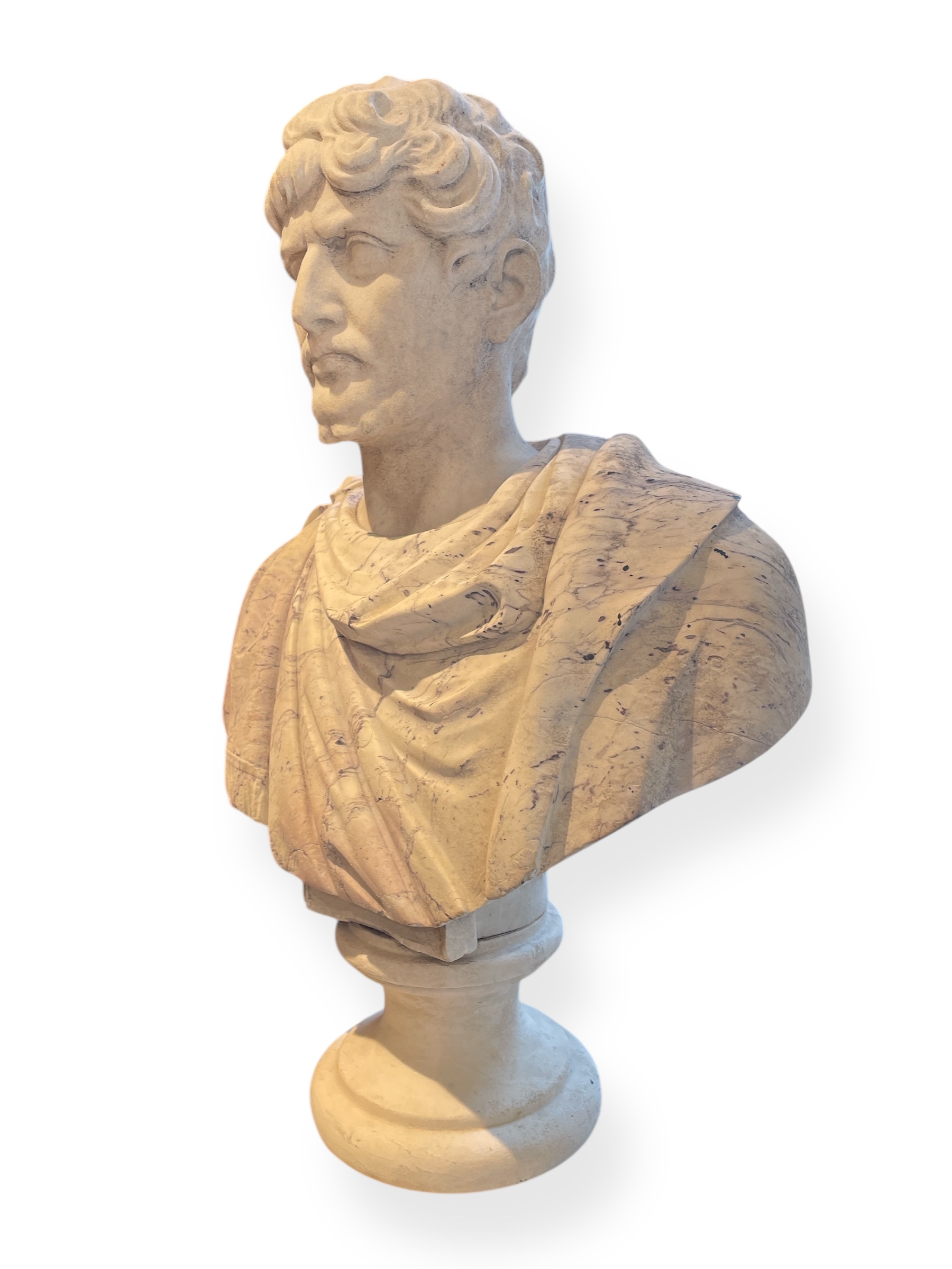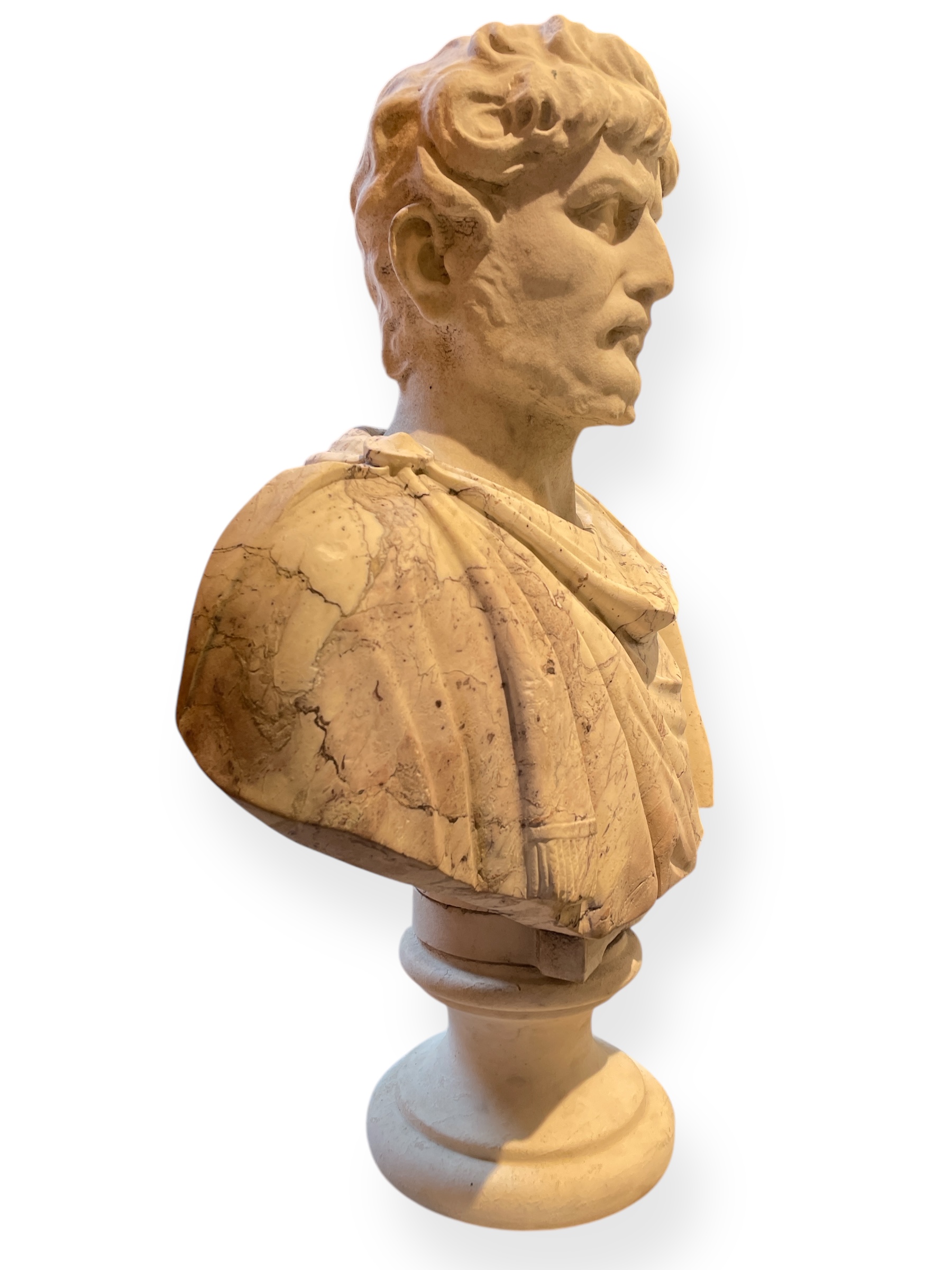 Early 20th C Italian marble bust of a Roman general from a Palm Beach estate.