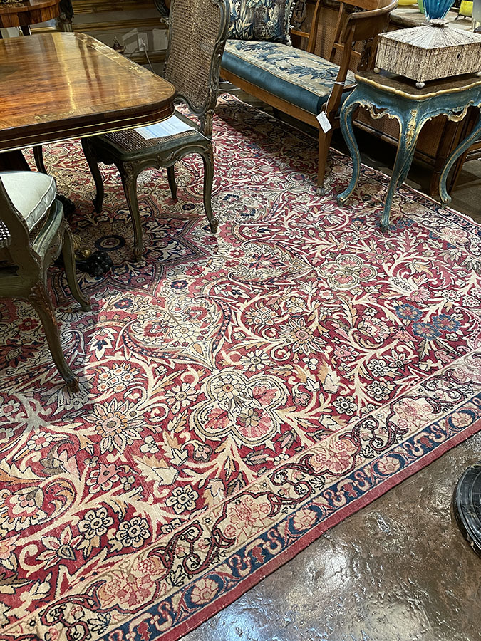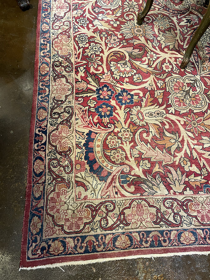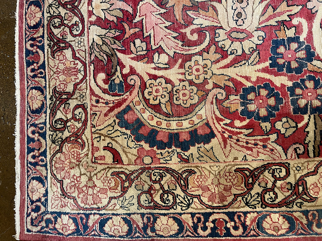 Lavar Kerman hand woven semi-antique Persian rug. (* In French Room)