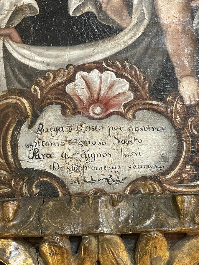 Oil on canvas Cuzco School painting- St. Anthony in Italian frame