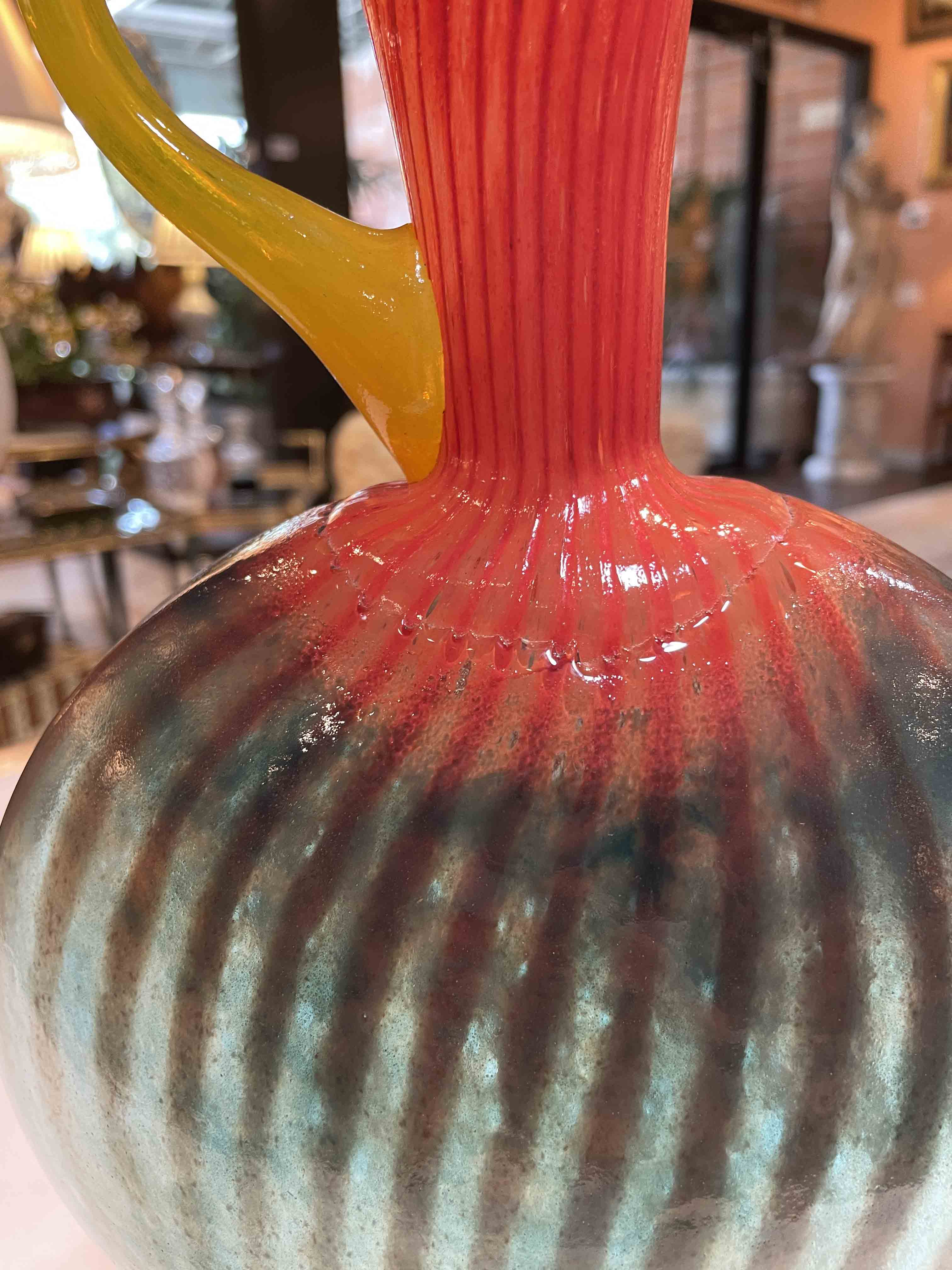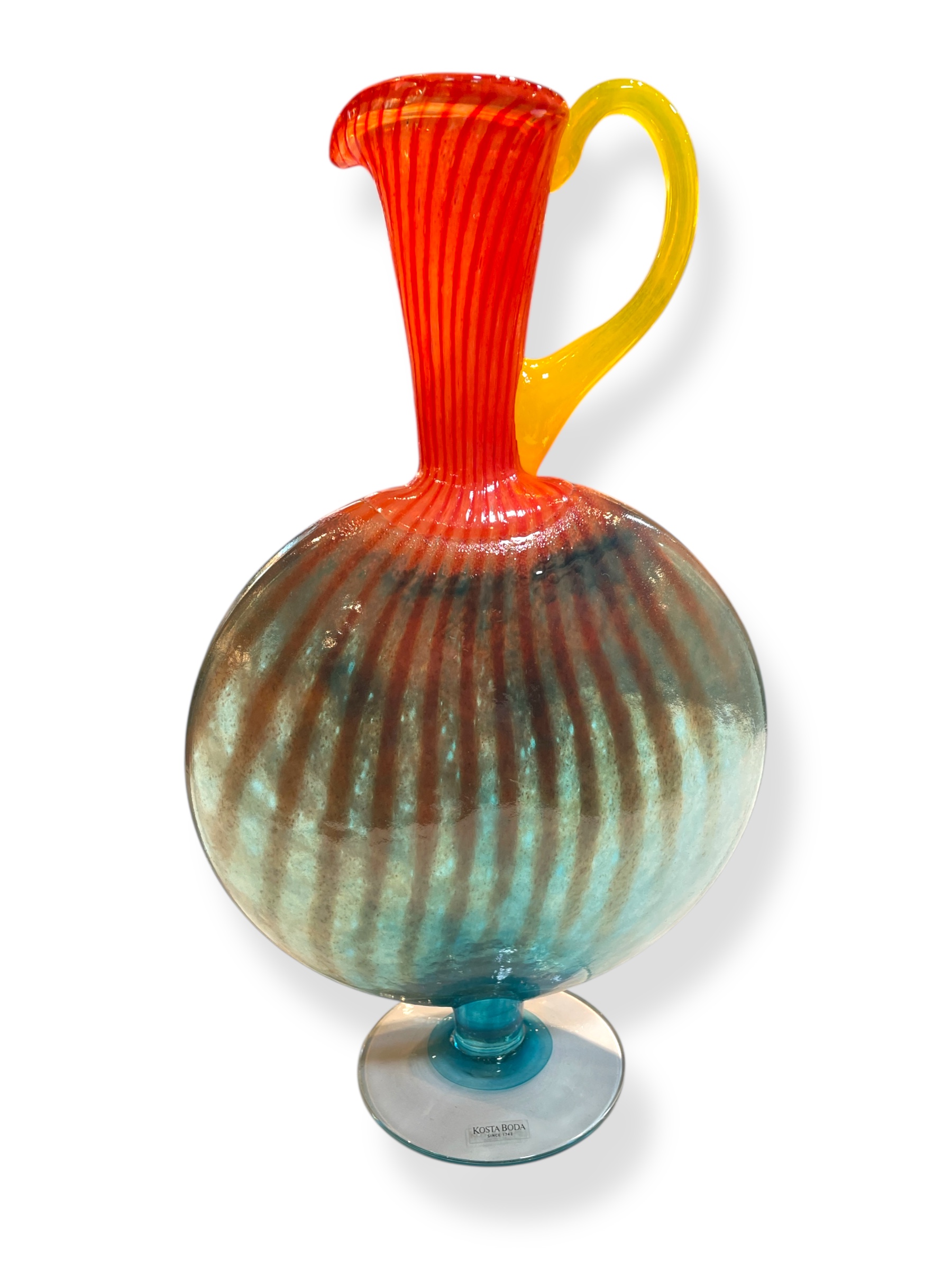 Kosta Boda Kjell Engman glass flask form " Bon Bon" series pitcher, Sweden, 1989- from the Postmodern Scandinavian art glass collection.