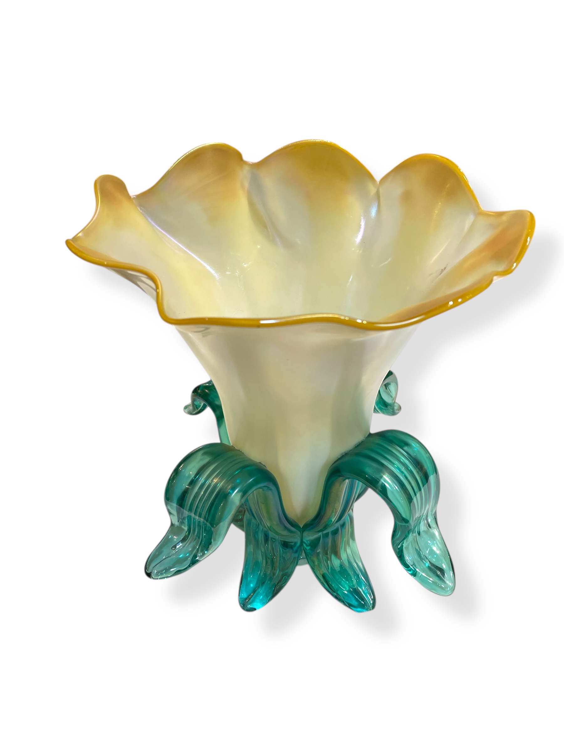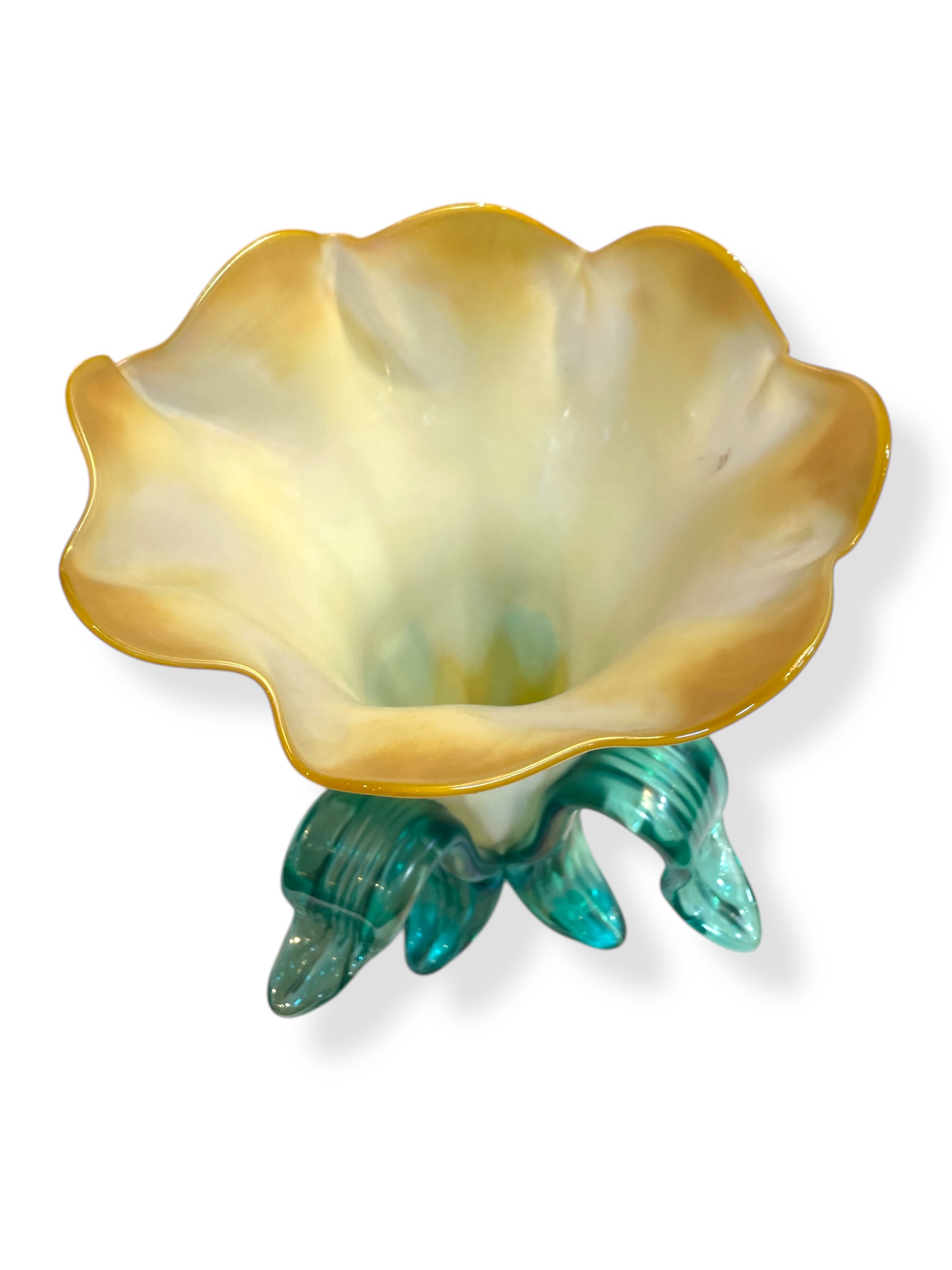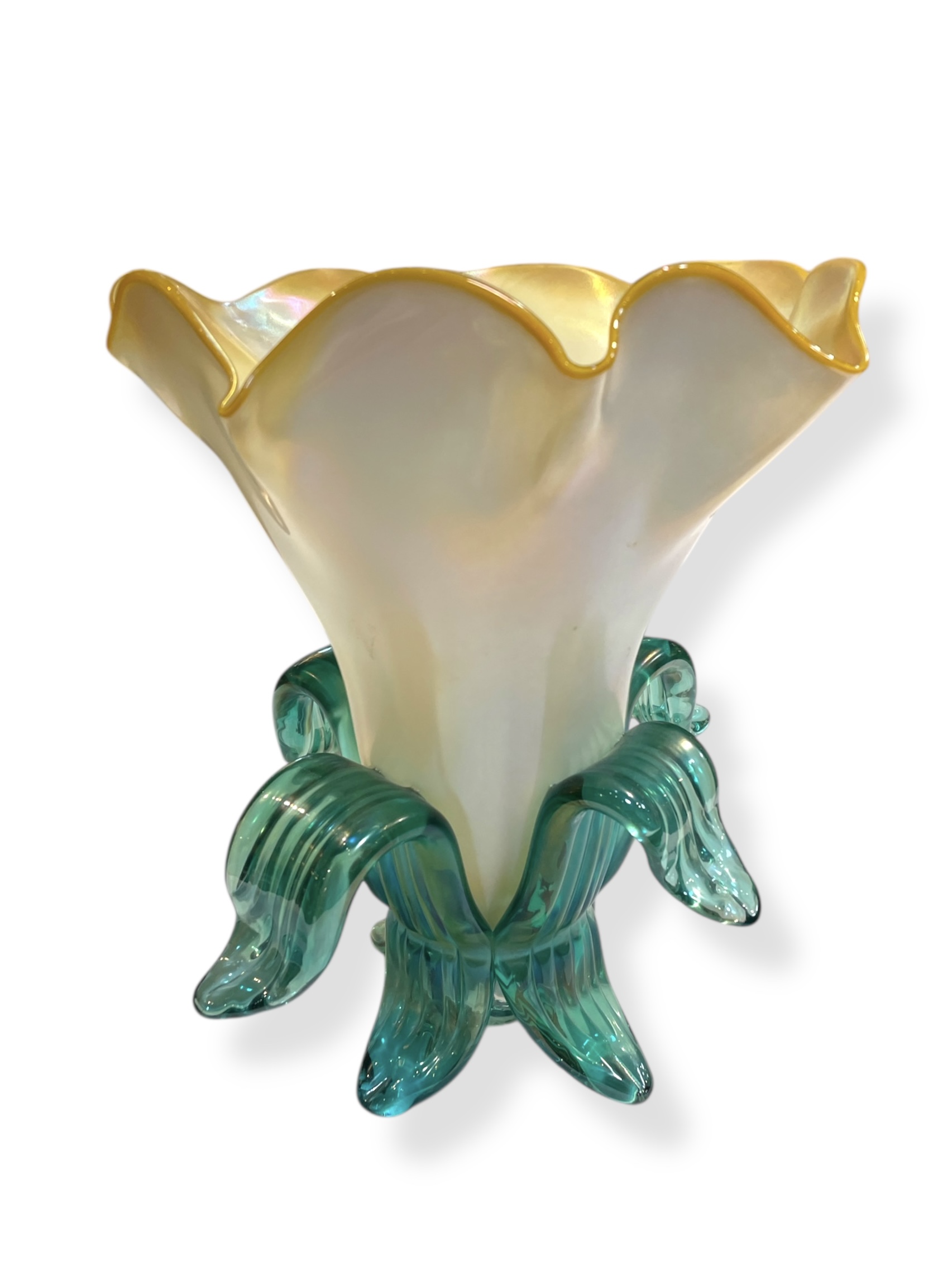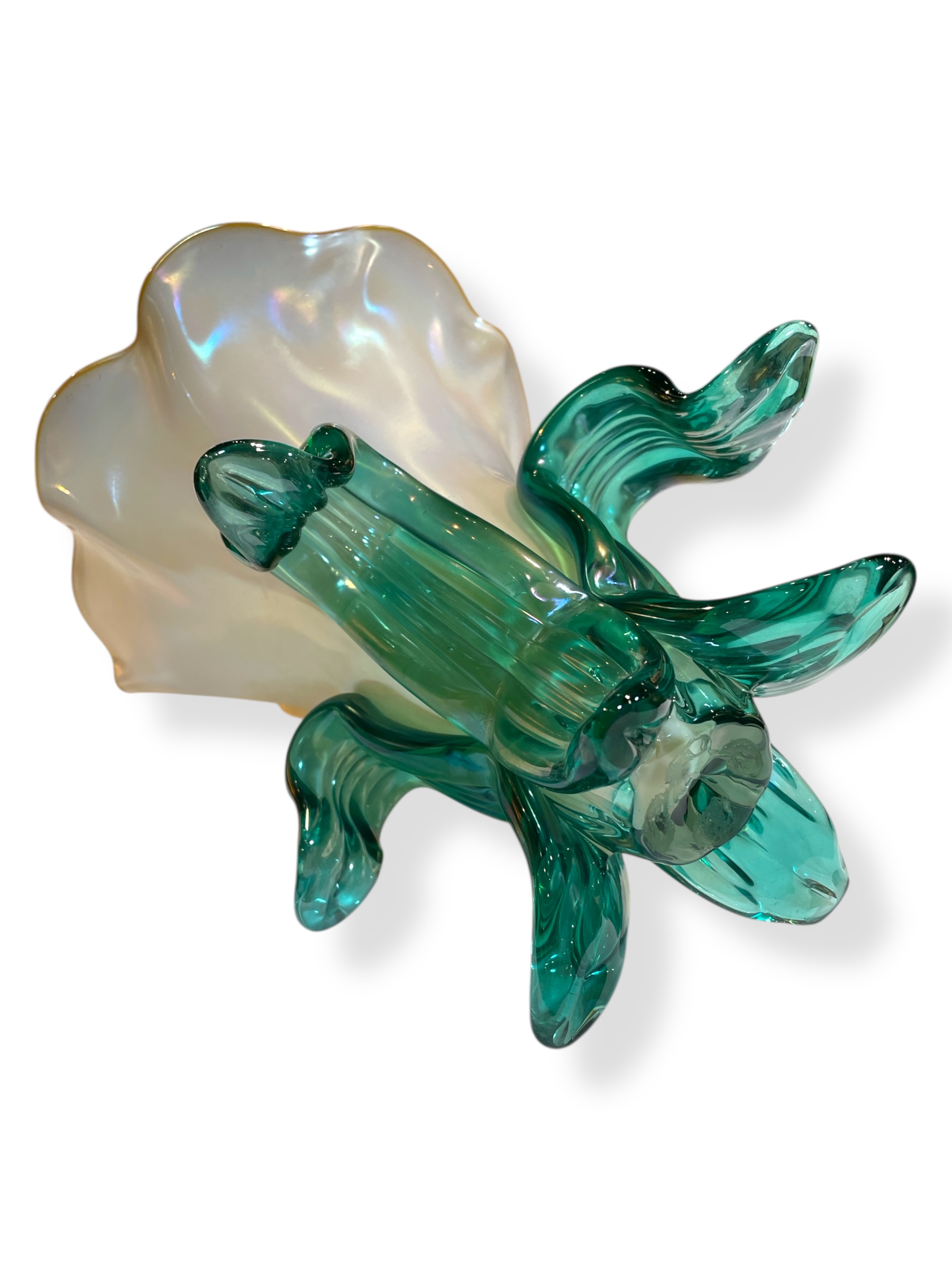 Studio art glass flower vase by American artist, John Cook. Signed and dated, underside.