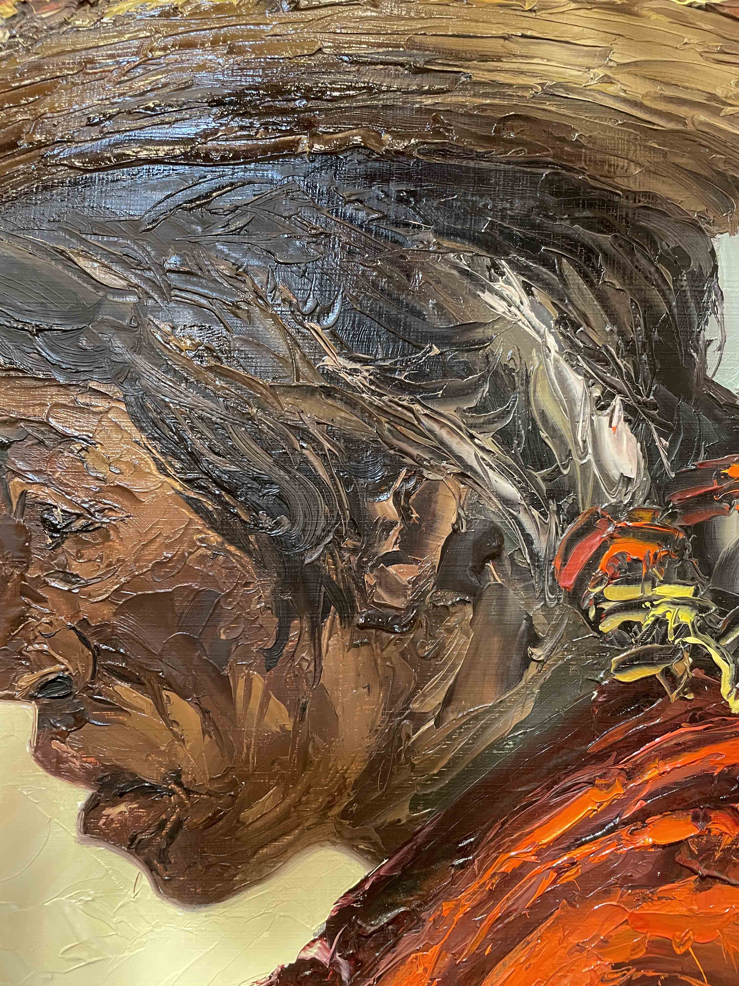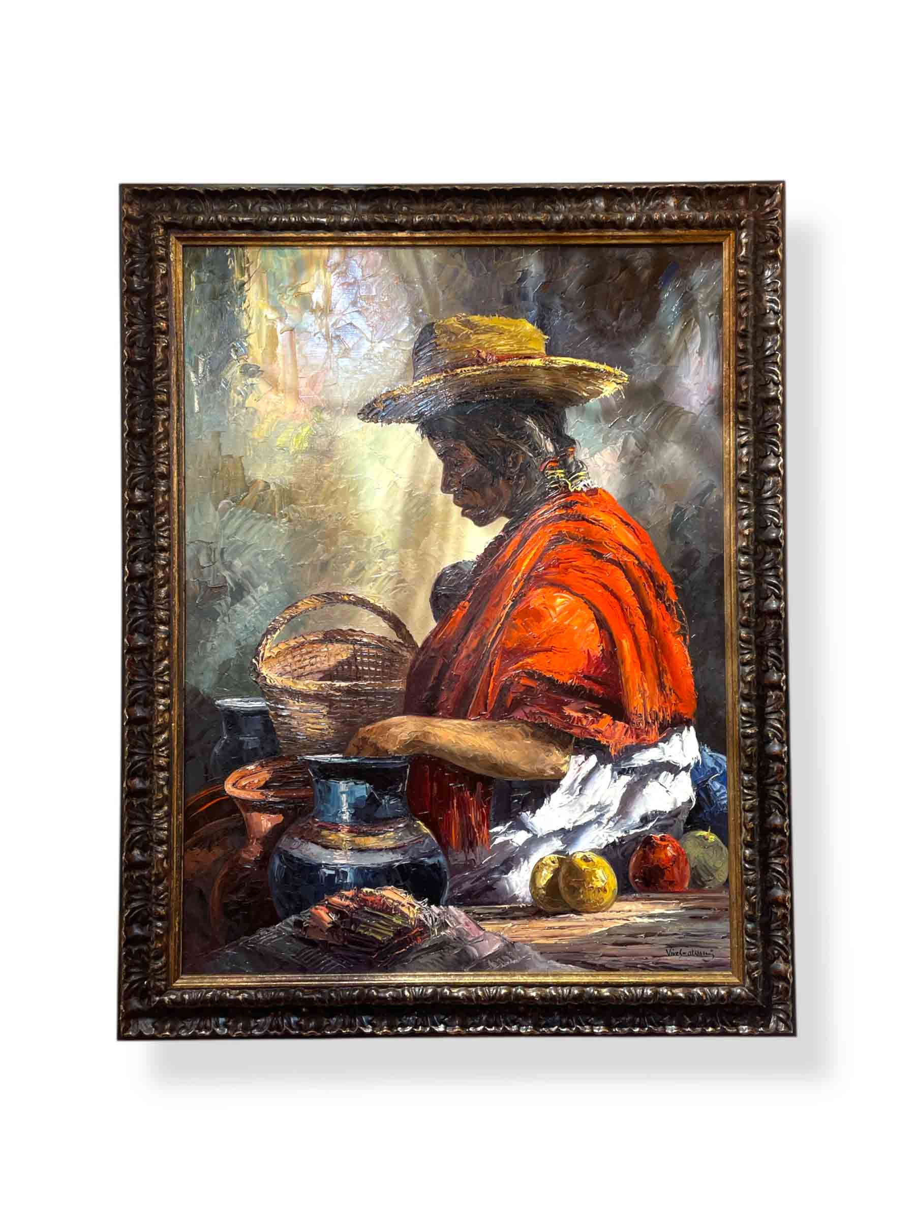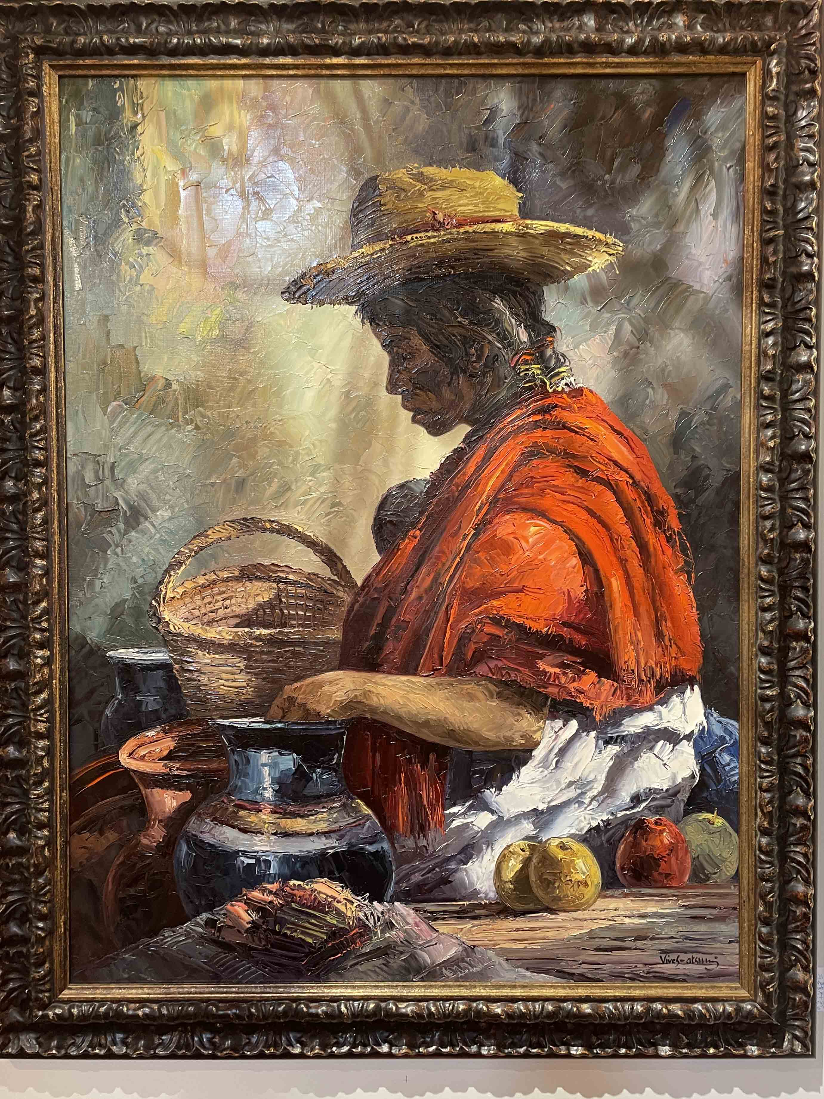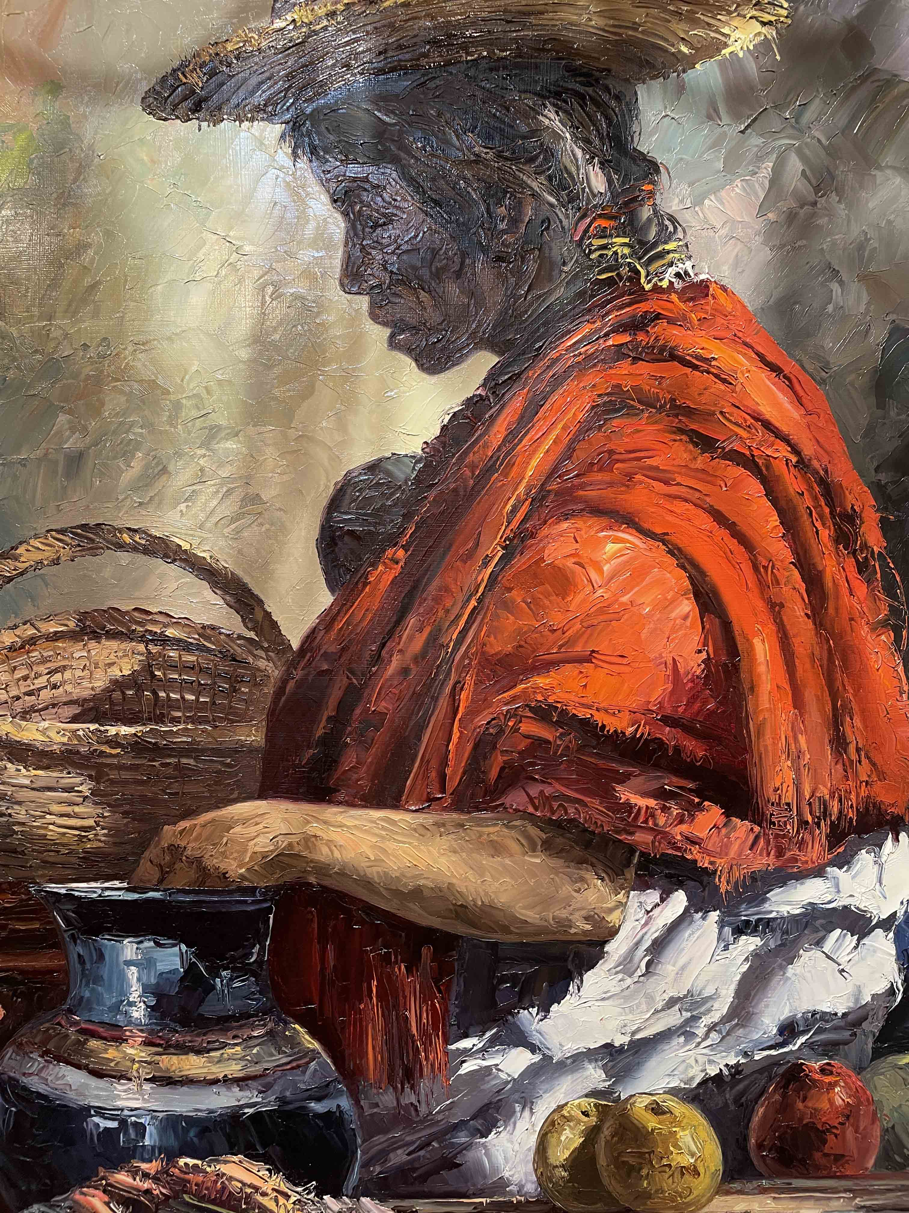 Oil on canvas painting of a Mexican woman entitled "Tristeza" by artist Jose Vives-Atsara.